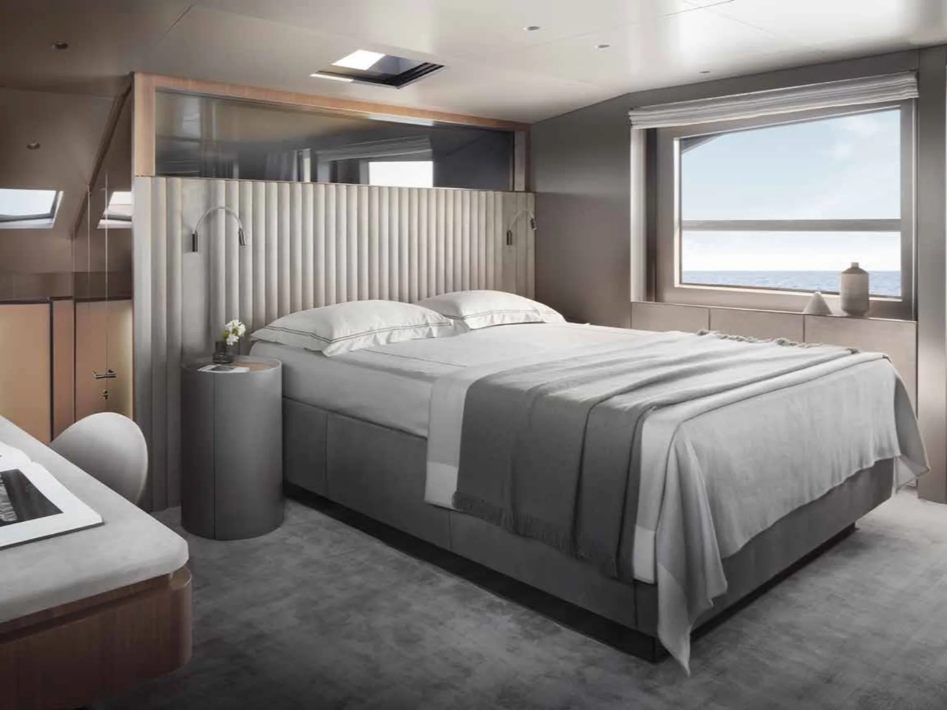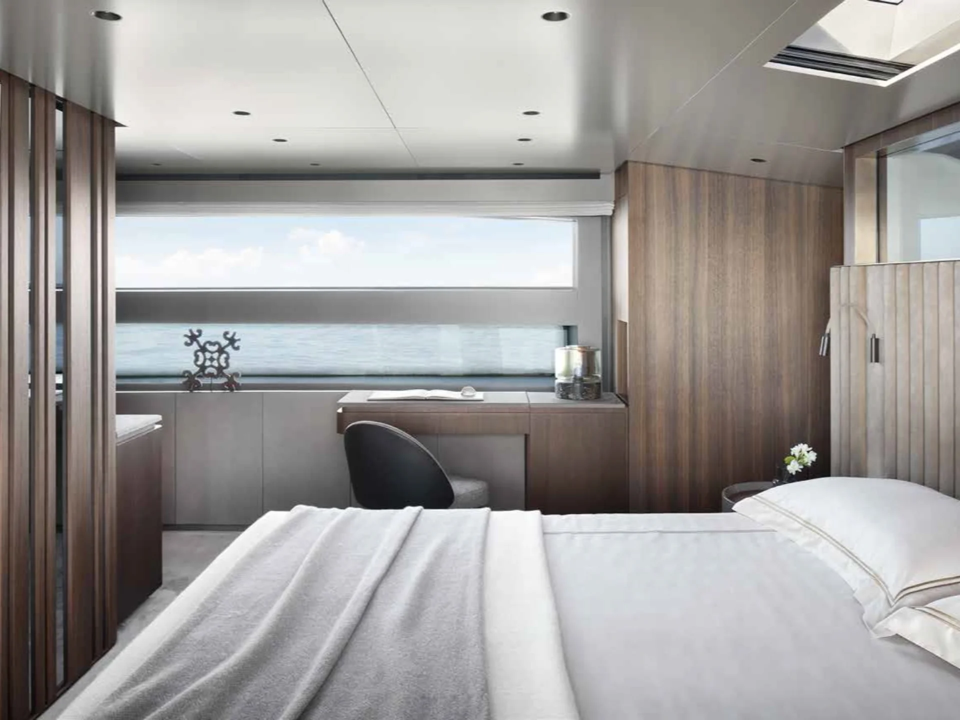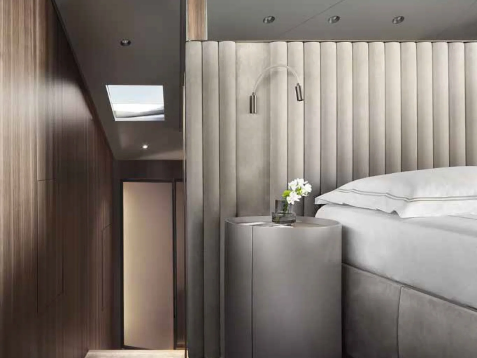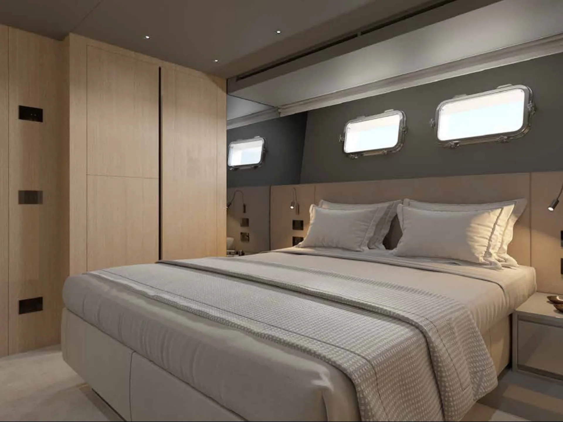 Accommodation is provided for up to 8 guests across 4 elegant en-suite cabins, including a full-beam Master Stateroom, a VIP cabin, and two twin guest cabins. As a new delivery, all interiors are finished to Sanlorenzo’s latest specifications and highest standards, offering exceptional comfort, privacy, and a calm retreat after days spent on the water.