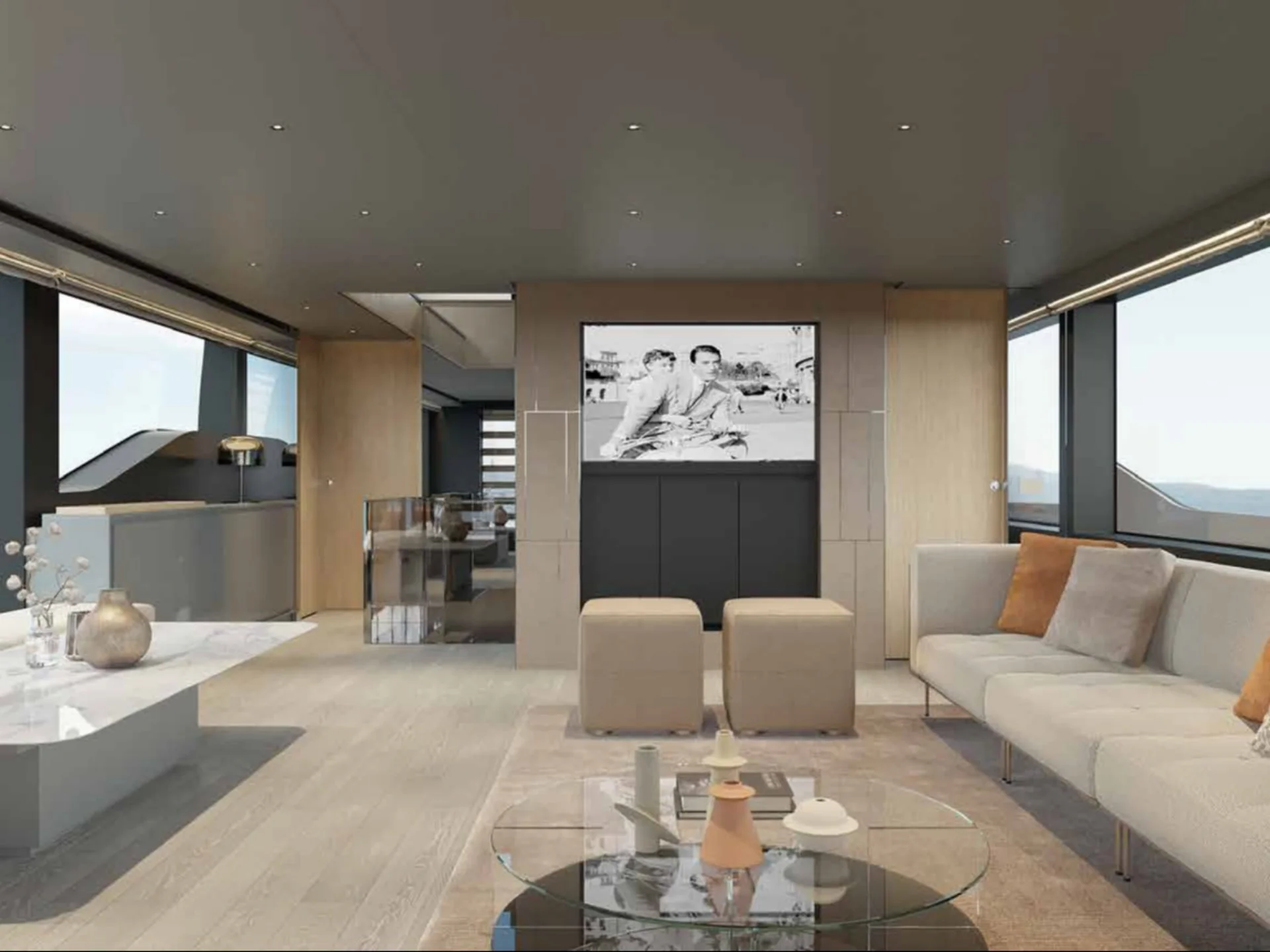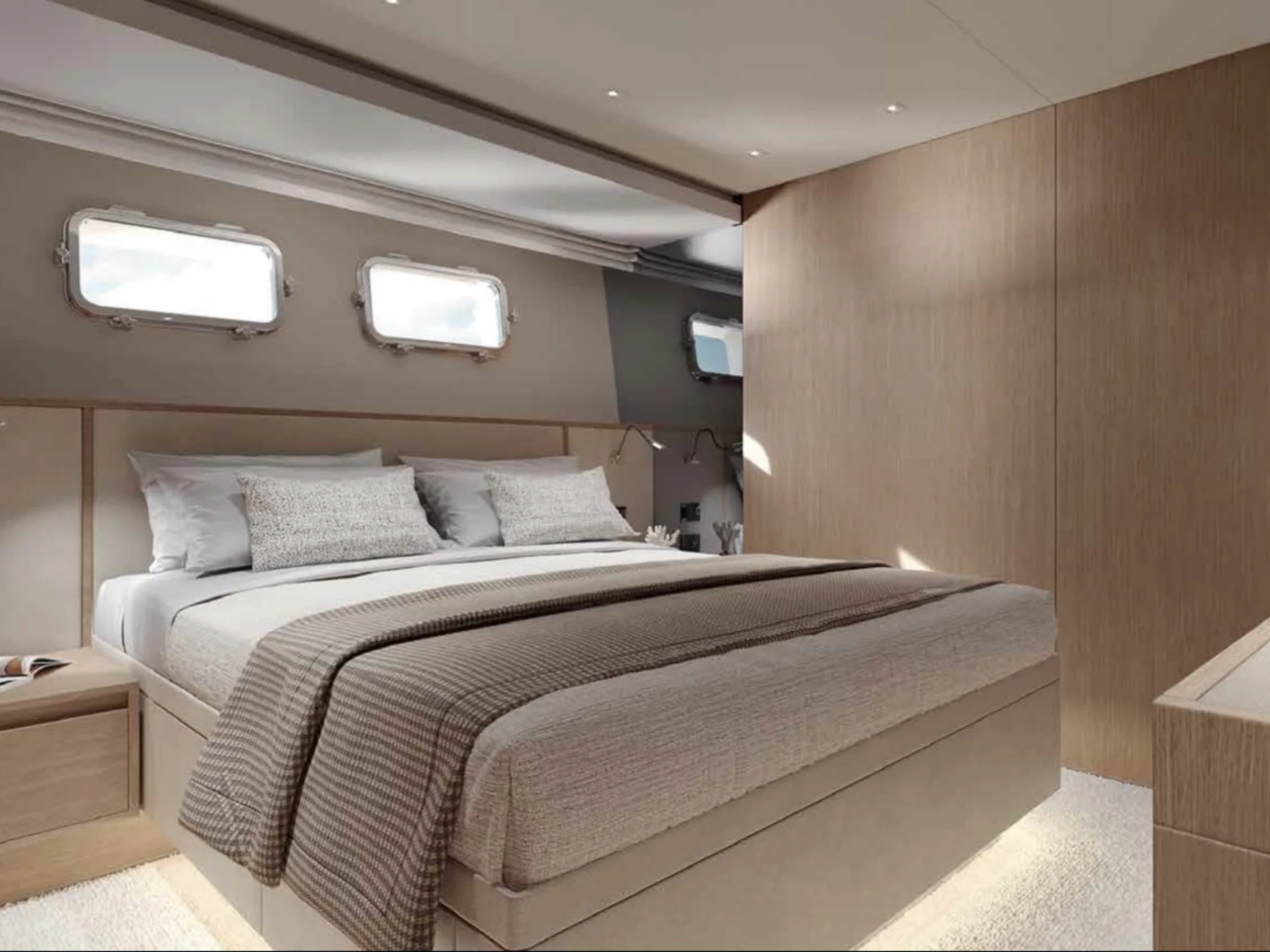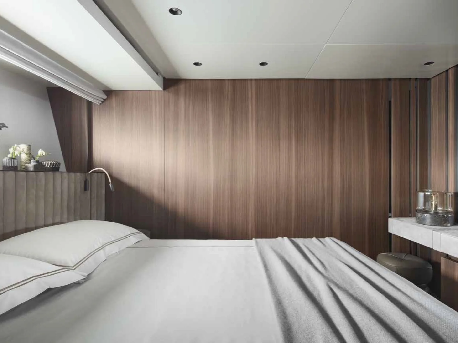 Accommodation is provided for up to 8 guests across 4 elegant en-suite cabins, including a full-beam Master Stateroom, a VIP cabin, and two twin guest cabins. As a new delivery, all interiors are finished to Sanlorenzo’s latest specifications and highest standards, offering exceptional comfort, privacy, and a calm retreat after days spent on the water.