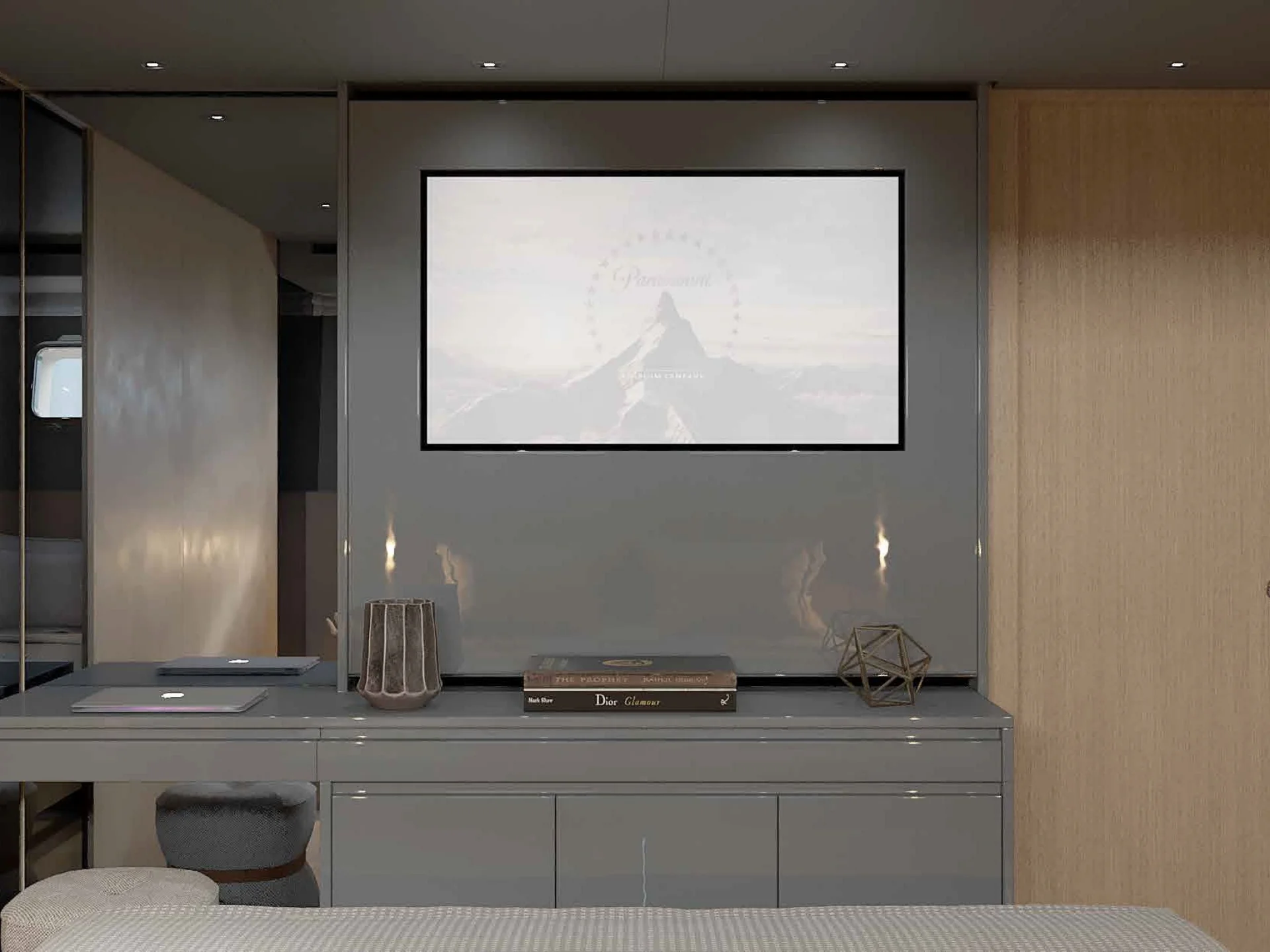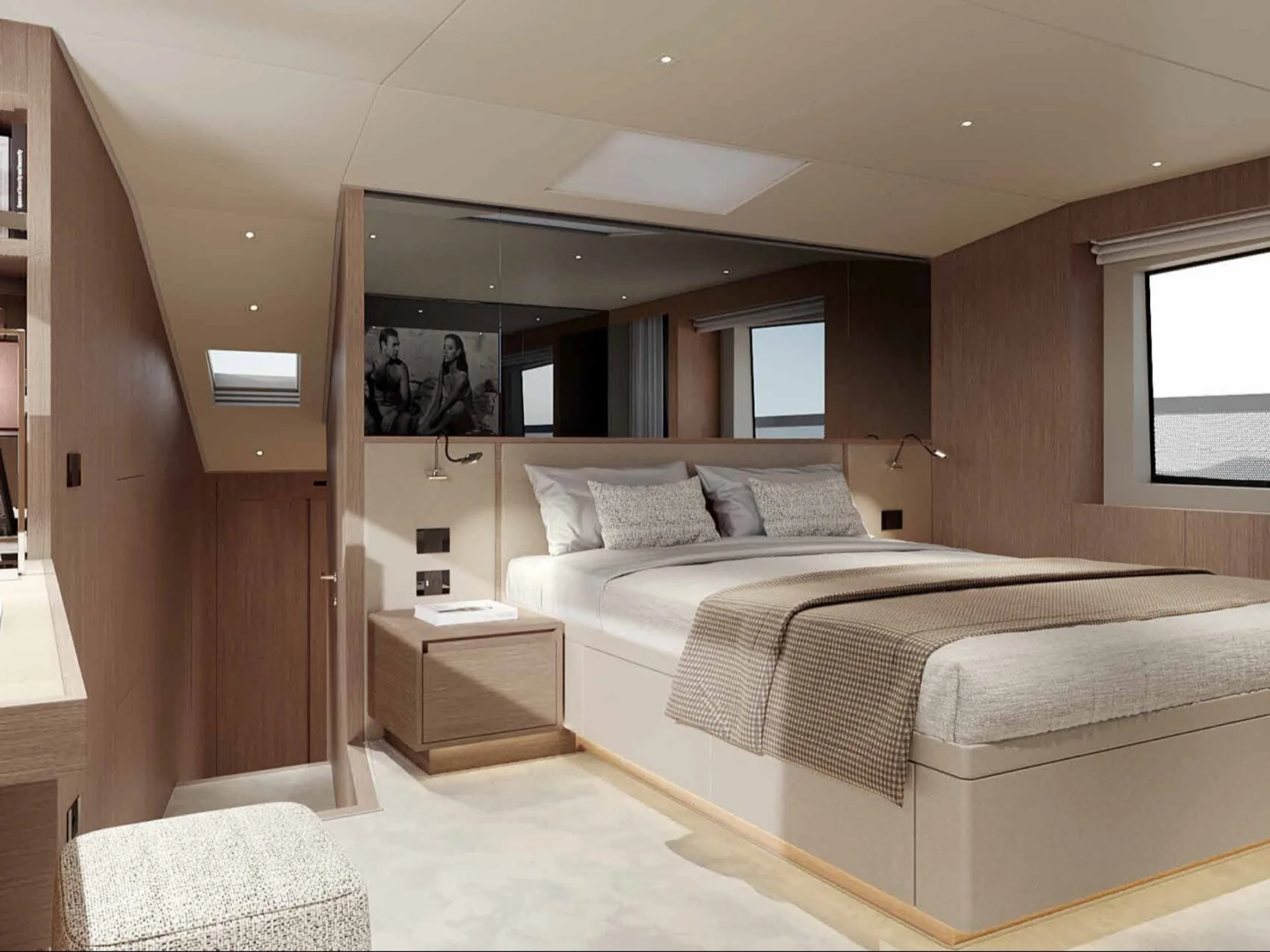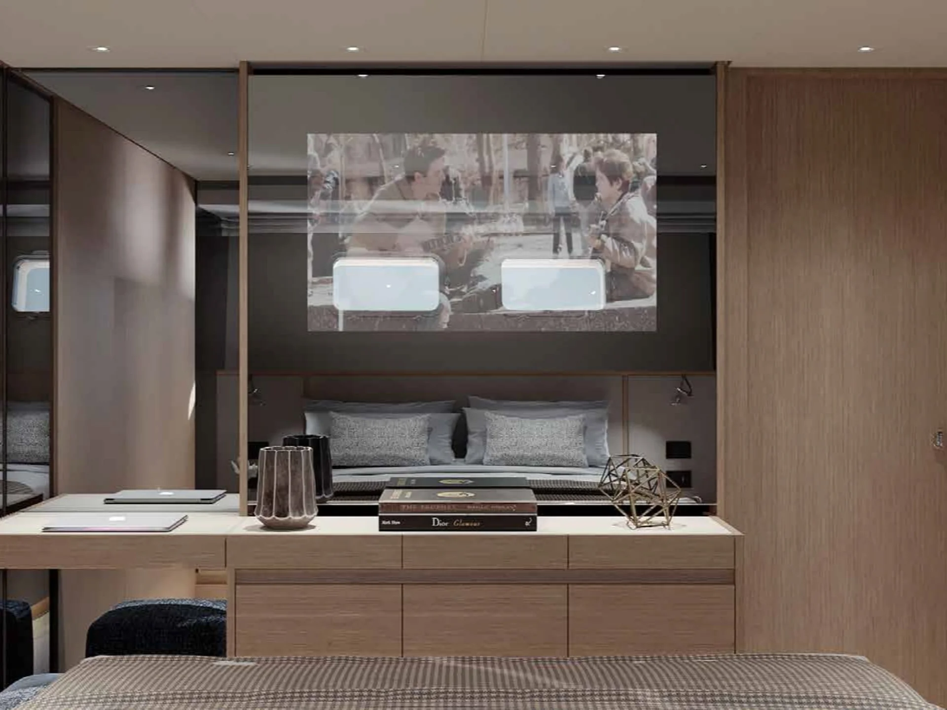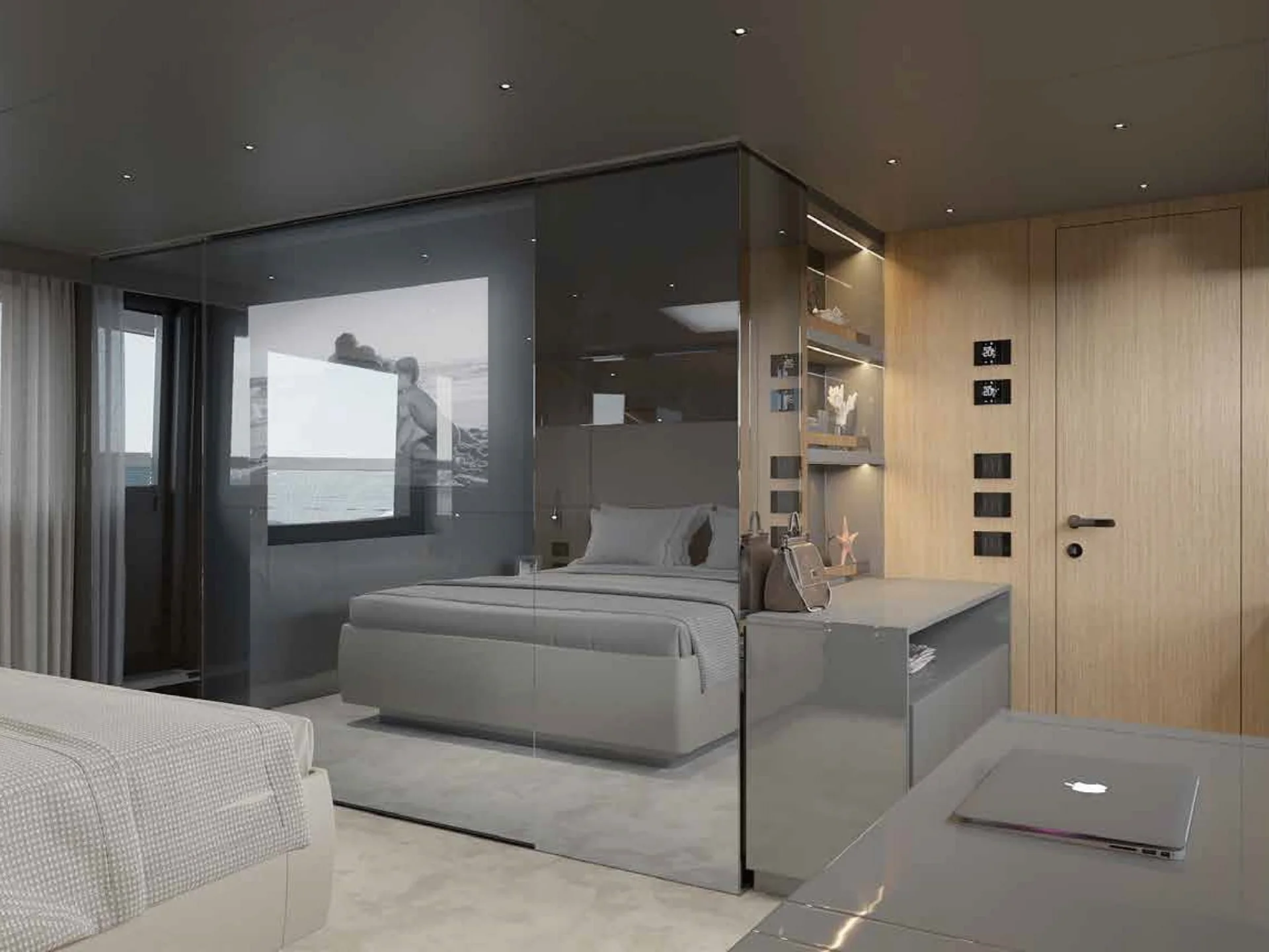 Accommodation is provided for up to 8 guests across 4 elegant en-suite cabins, including a full-beam Master Stateroom, a VIP cabin, and two twin guest cabins. As a new delivery, all interiors are finished to Sanlorenzo’s latest specifications and highest standards, offering exceptional comfort, privacy, and a calm retreat after days spent on the water.