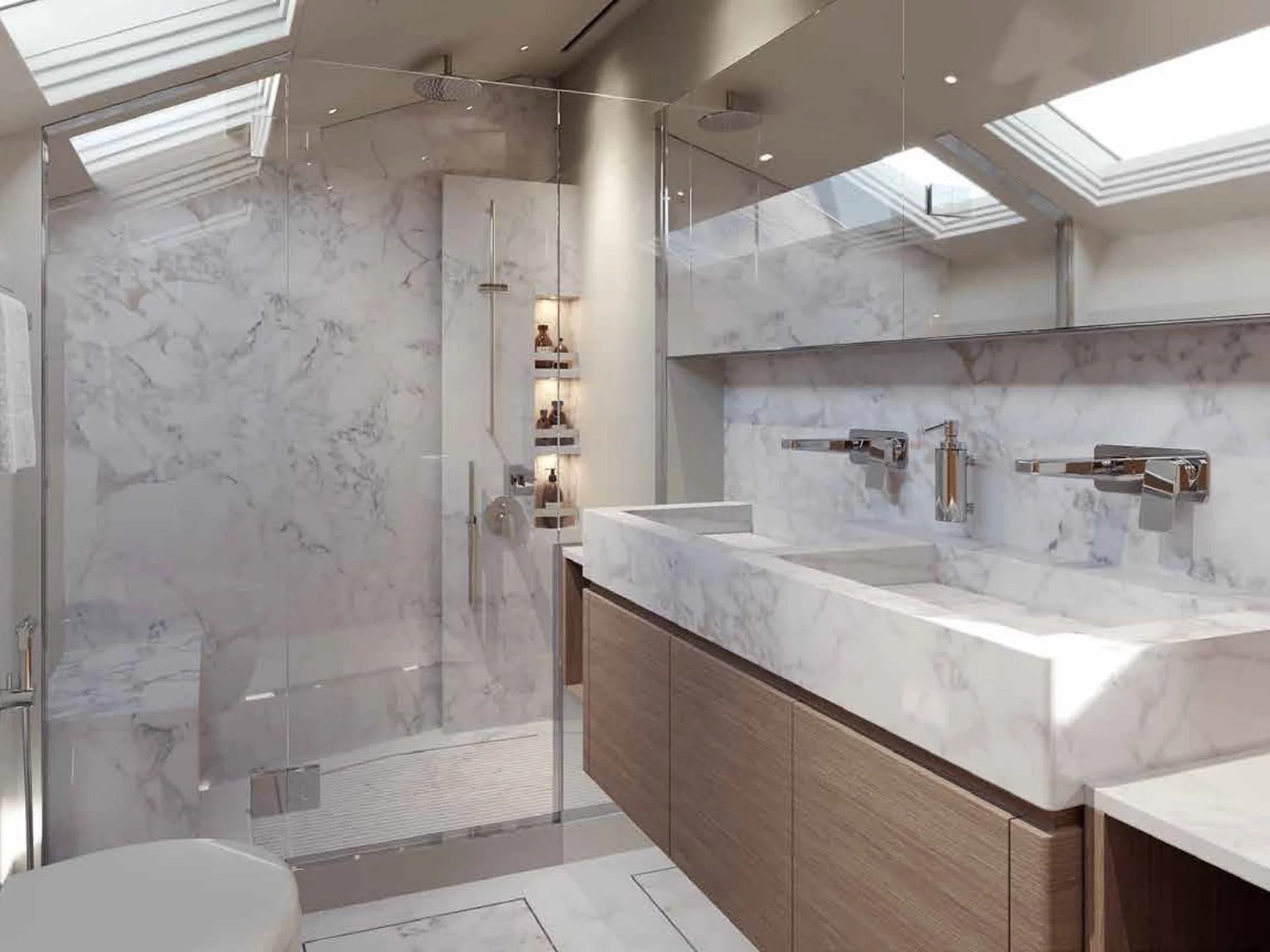 Outdoor living is a key highlight on board Michisan. Her spacious flybridge and deck areas are designed for relaxation and socialising, with ample lounging and sunbathing space, while the aft deck provides an inviting setting for alfresco dining. A large swim platform ensures easy access to the sea for swimming and water activities.