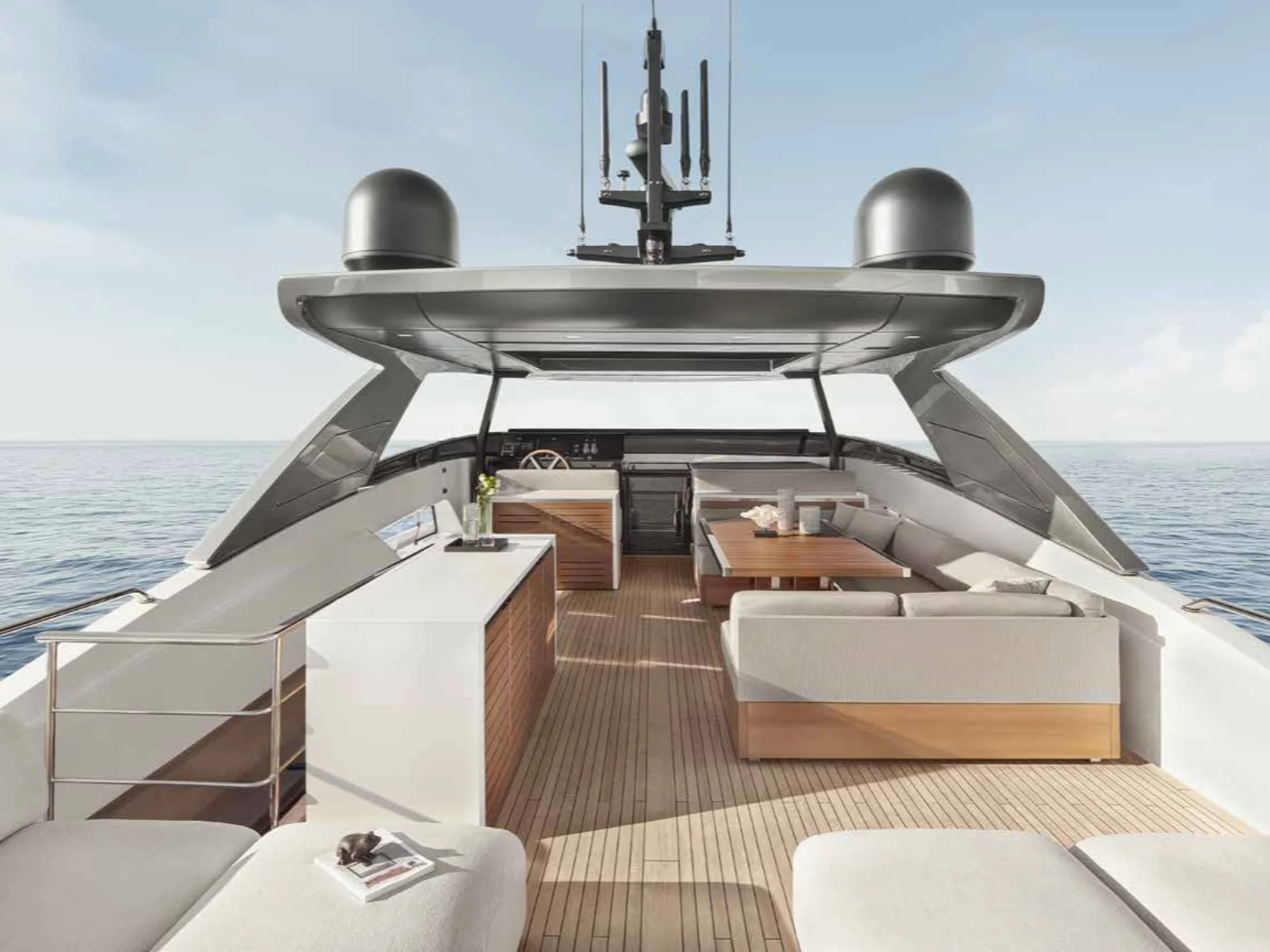 - Spacious flybridge with generous lounge and sunbathing areas, ideal for relaxing and entertaining with open sea views