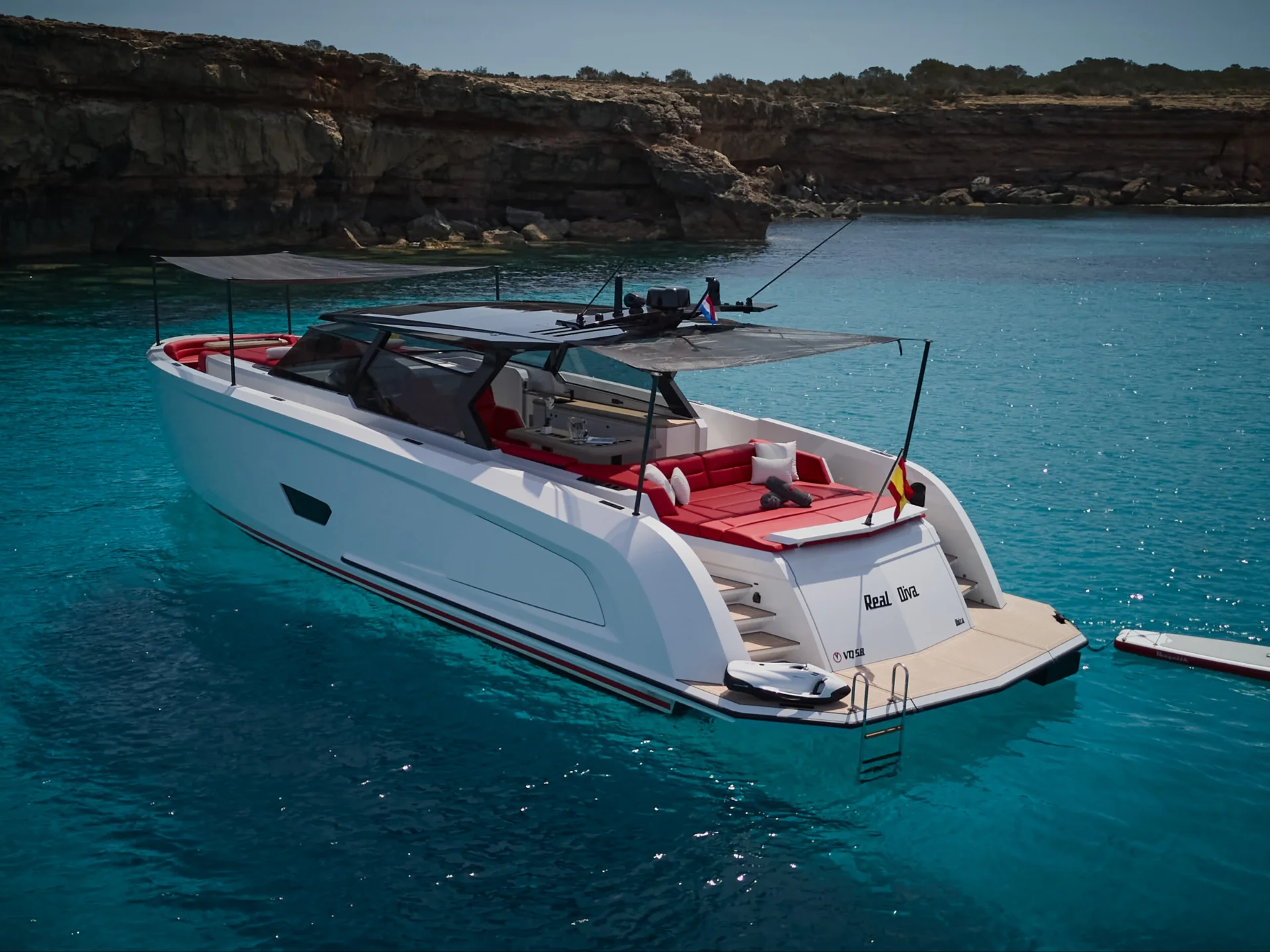 • REAL DIVA is a 59ft (17.93m) Vanquish VQ58 built in 2024, based in Marina Ibiza.