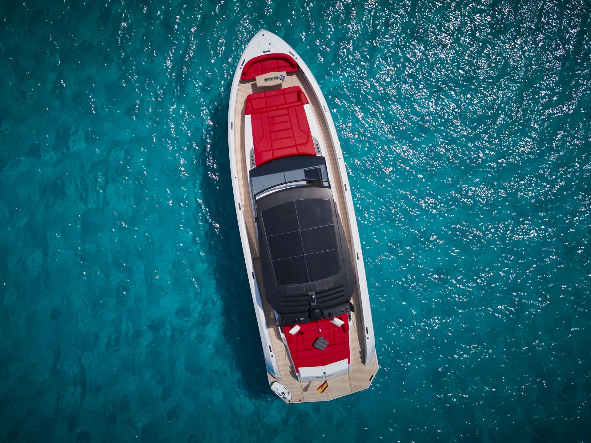 • Features large sunbathing areas fore and aft, plus an air-conditioned cabin.