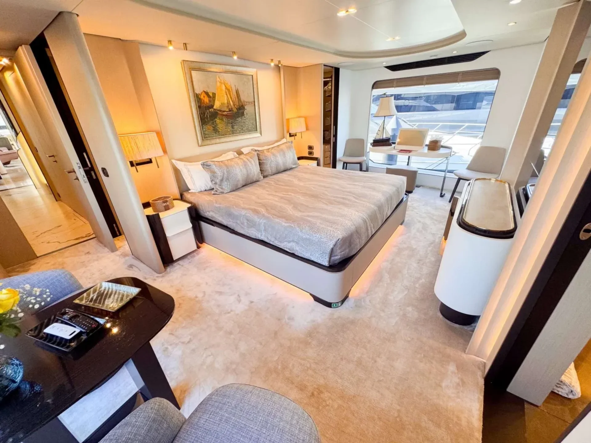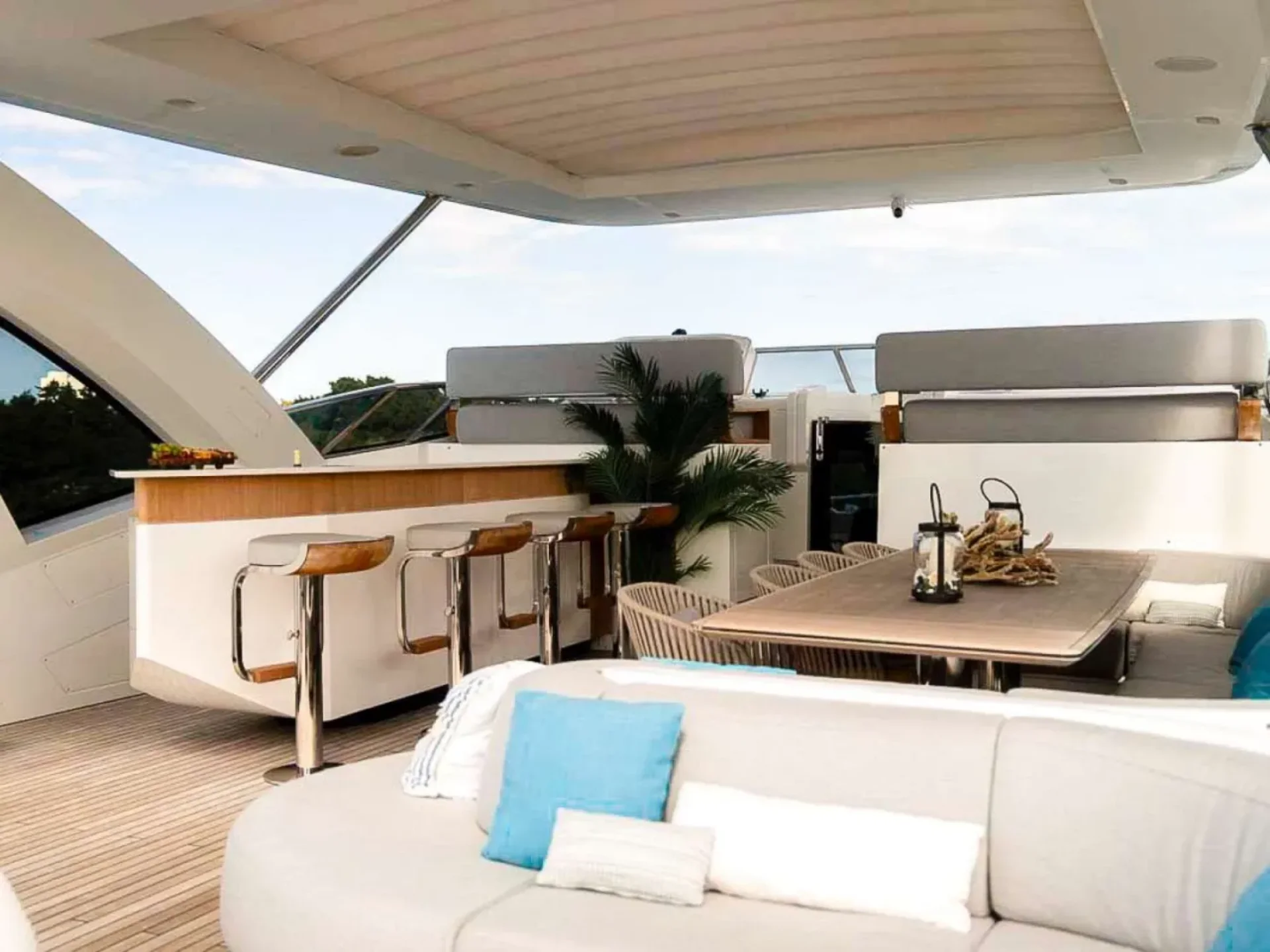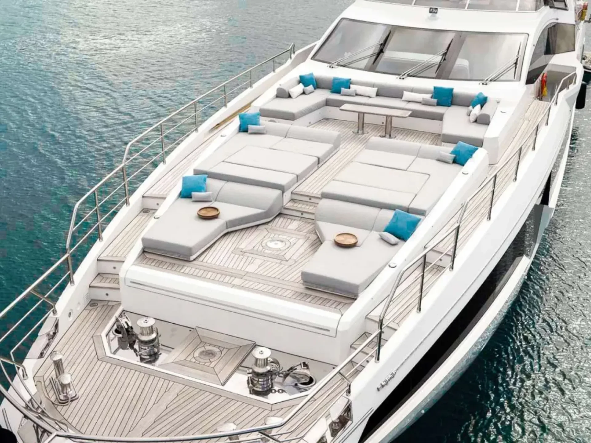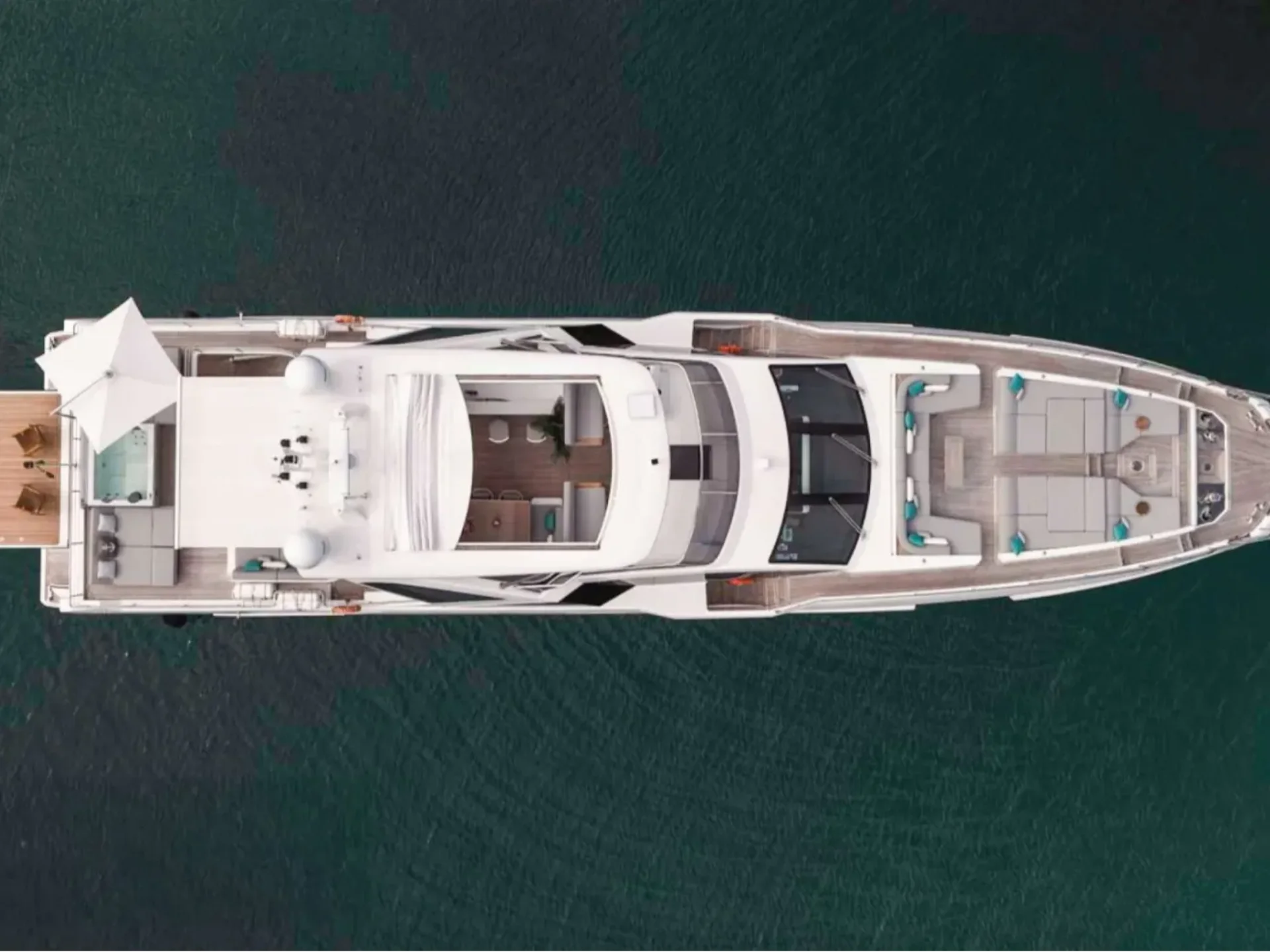 - On-deck jacuzzi paired with top-tier onboard entertainment, including SONOS audio, Starlink connectivity and Apple TV