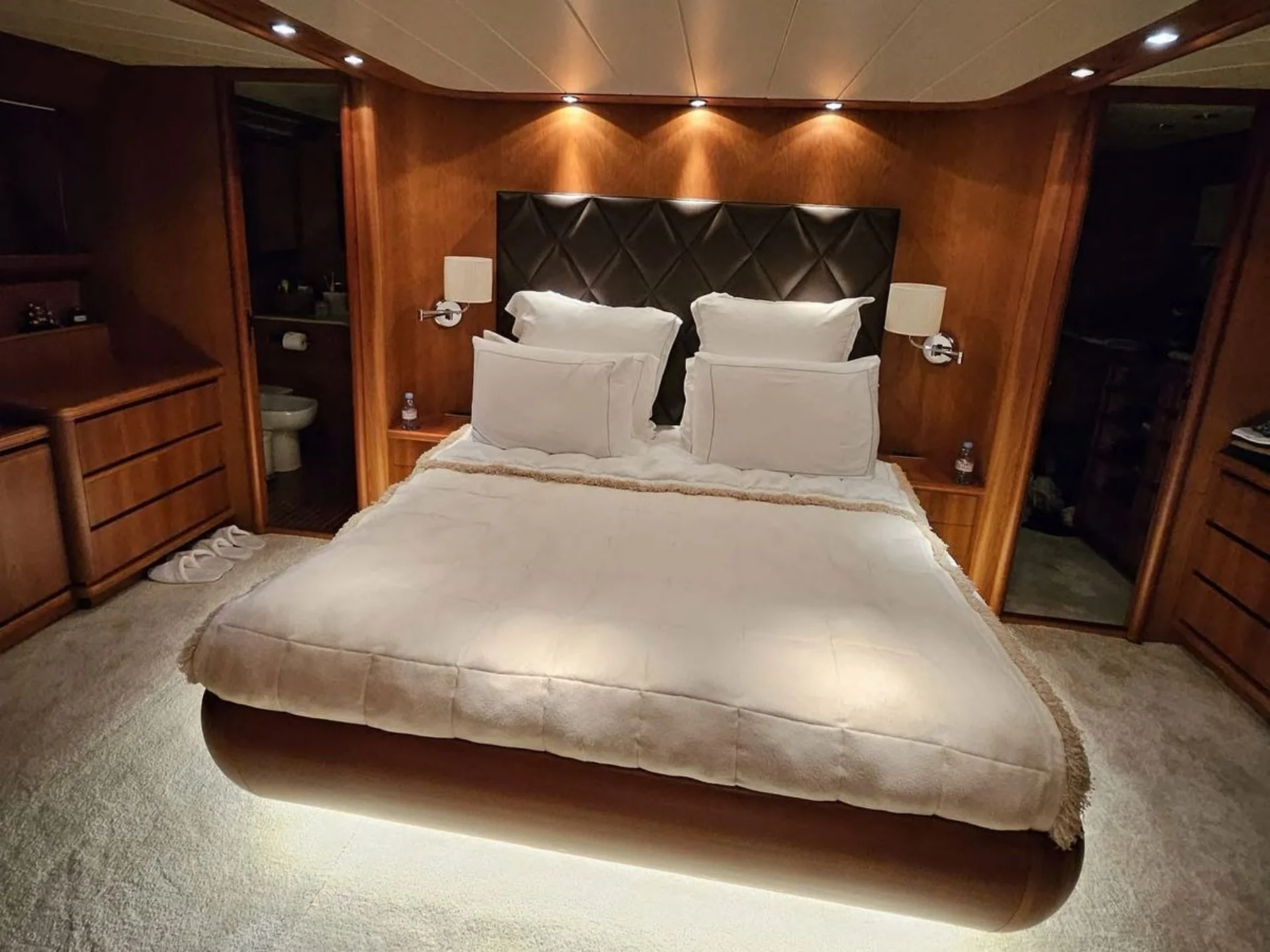 - The master cabin is notably spacious for a yacht of her size, offering a comfortable and private retreat.