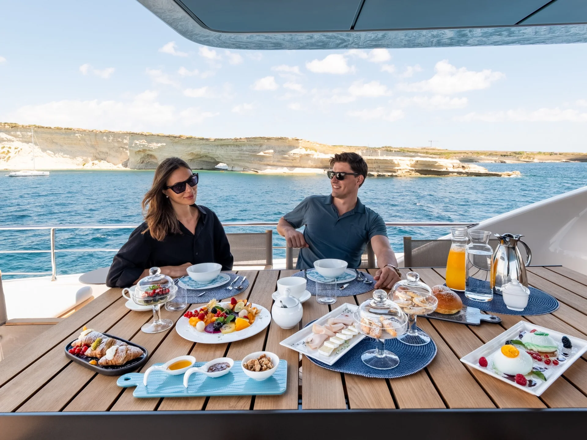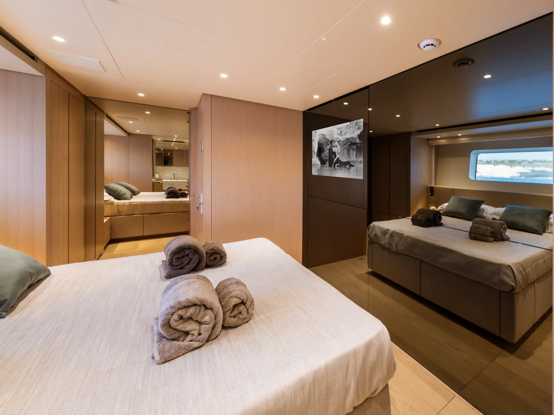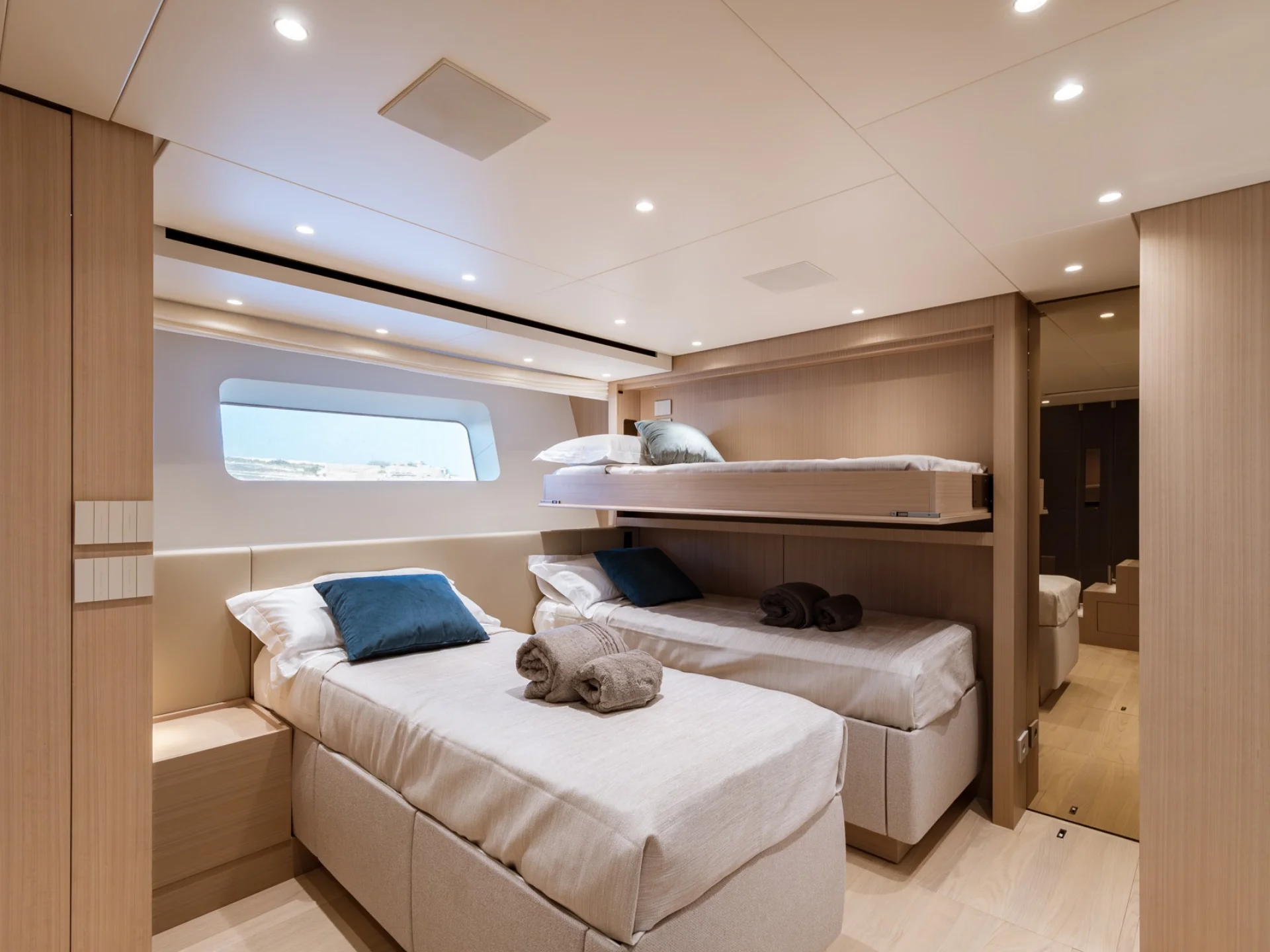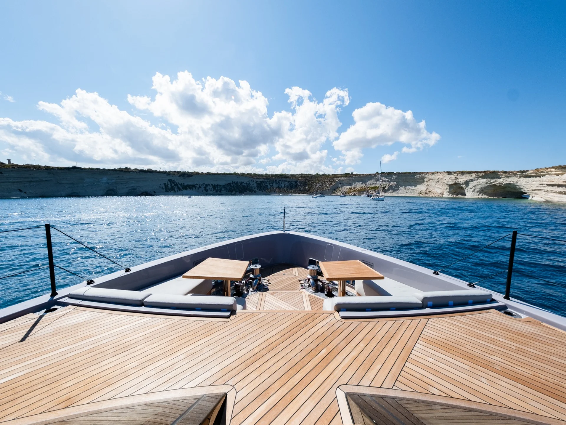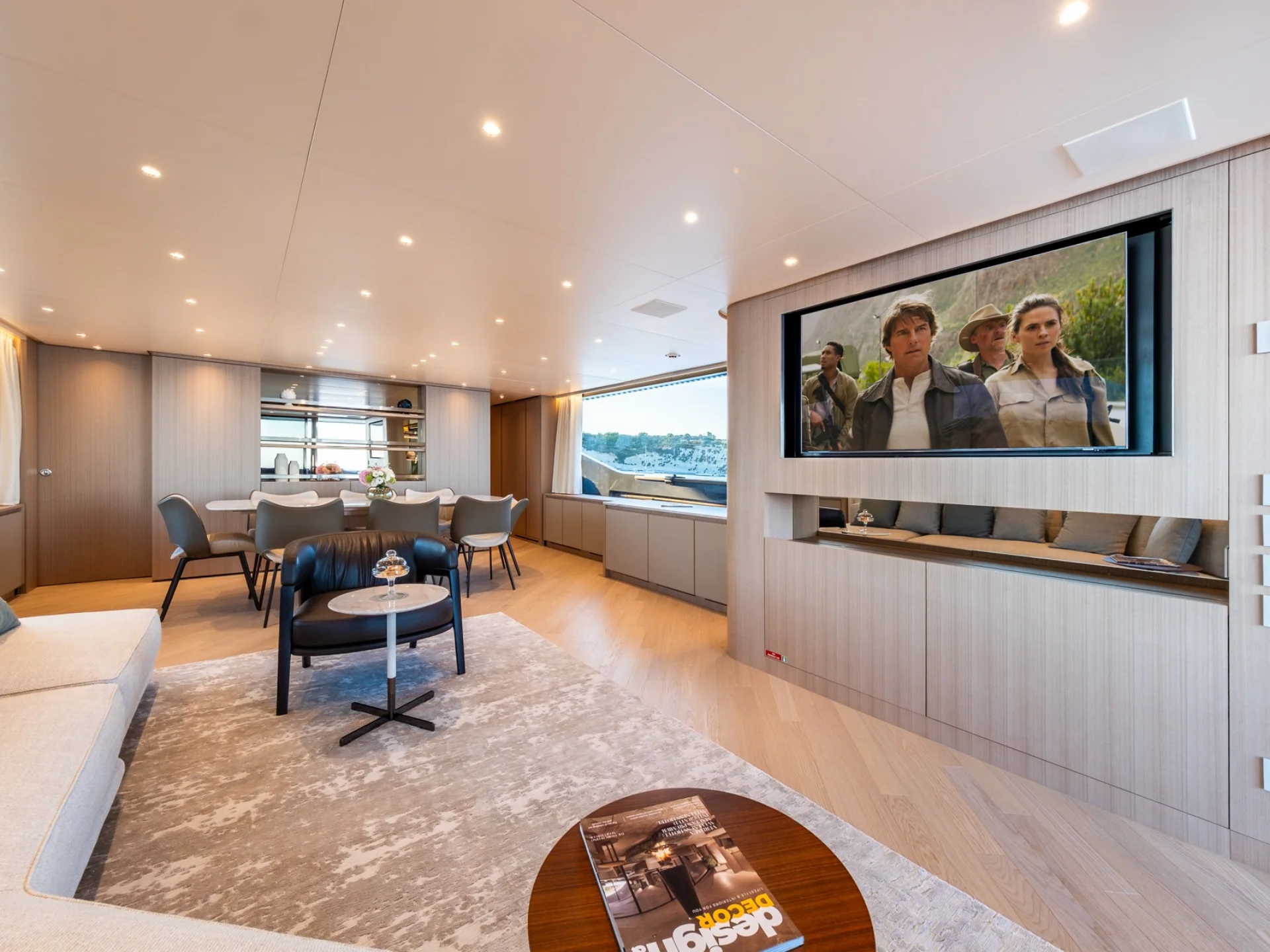 - Light-filled main salon with refined finishes and panoramic sea views