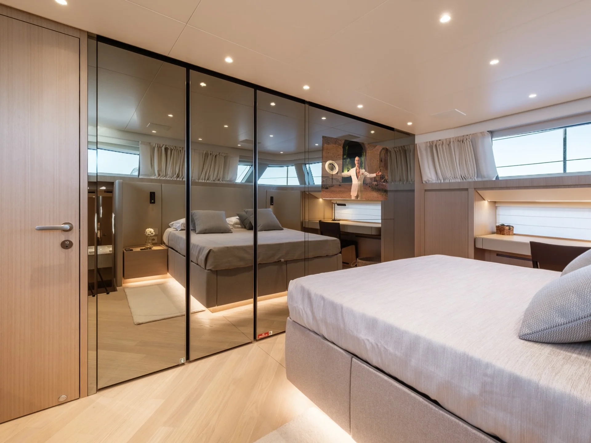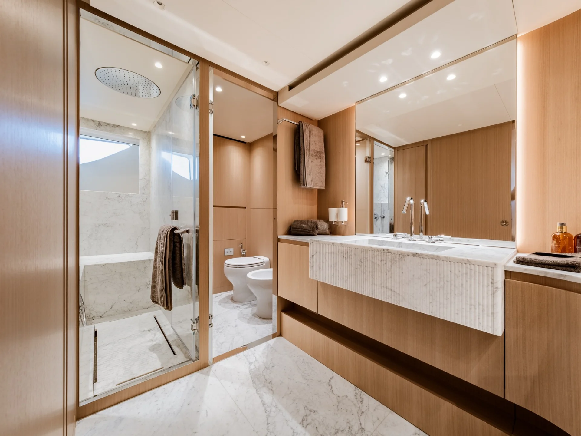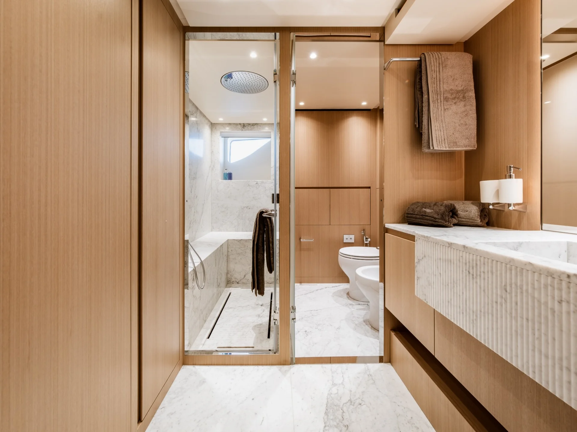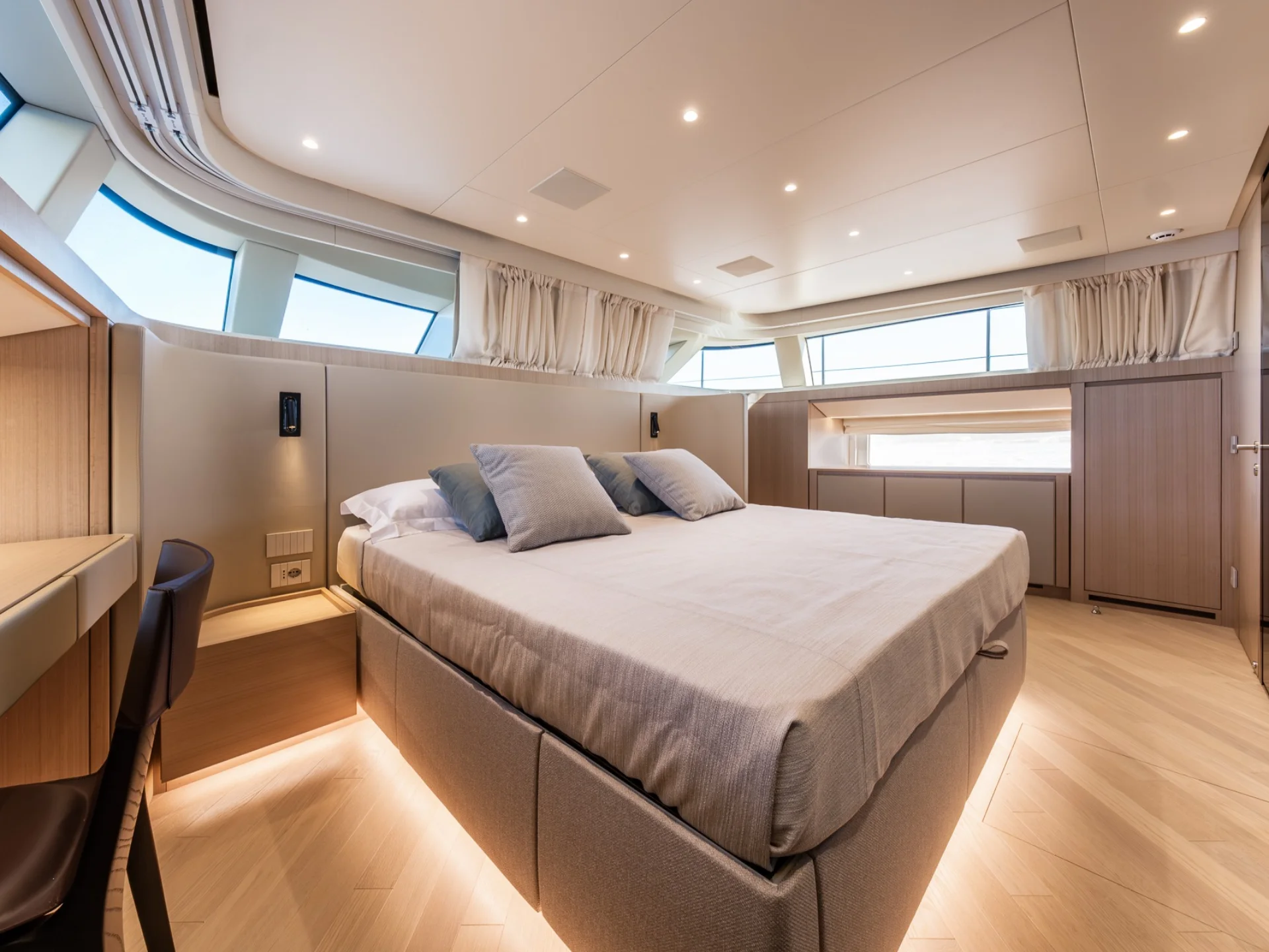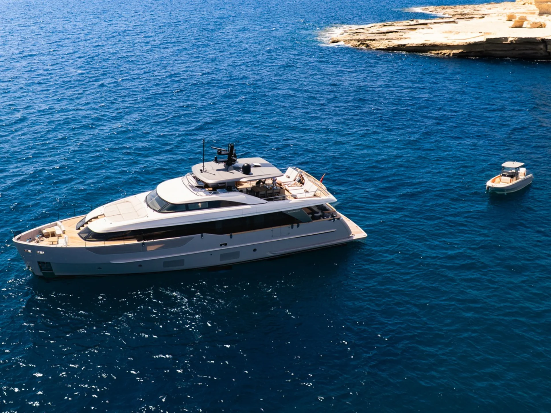 - Light-filled main salon with refined finishes and panoramic sea views