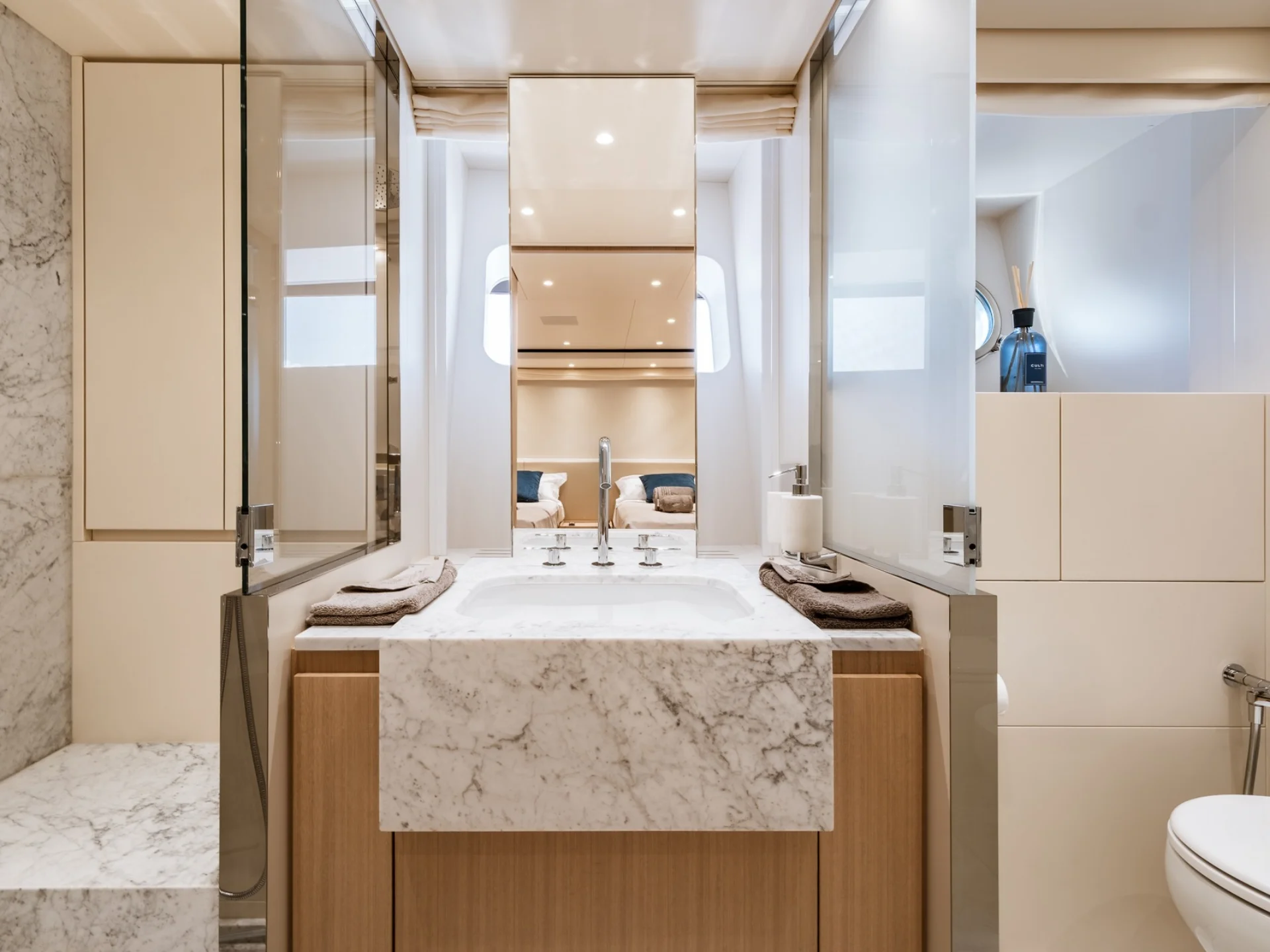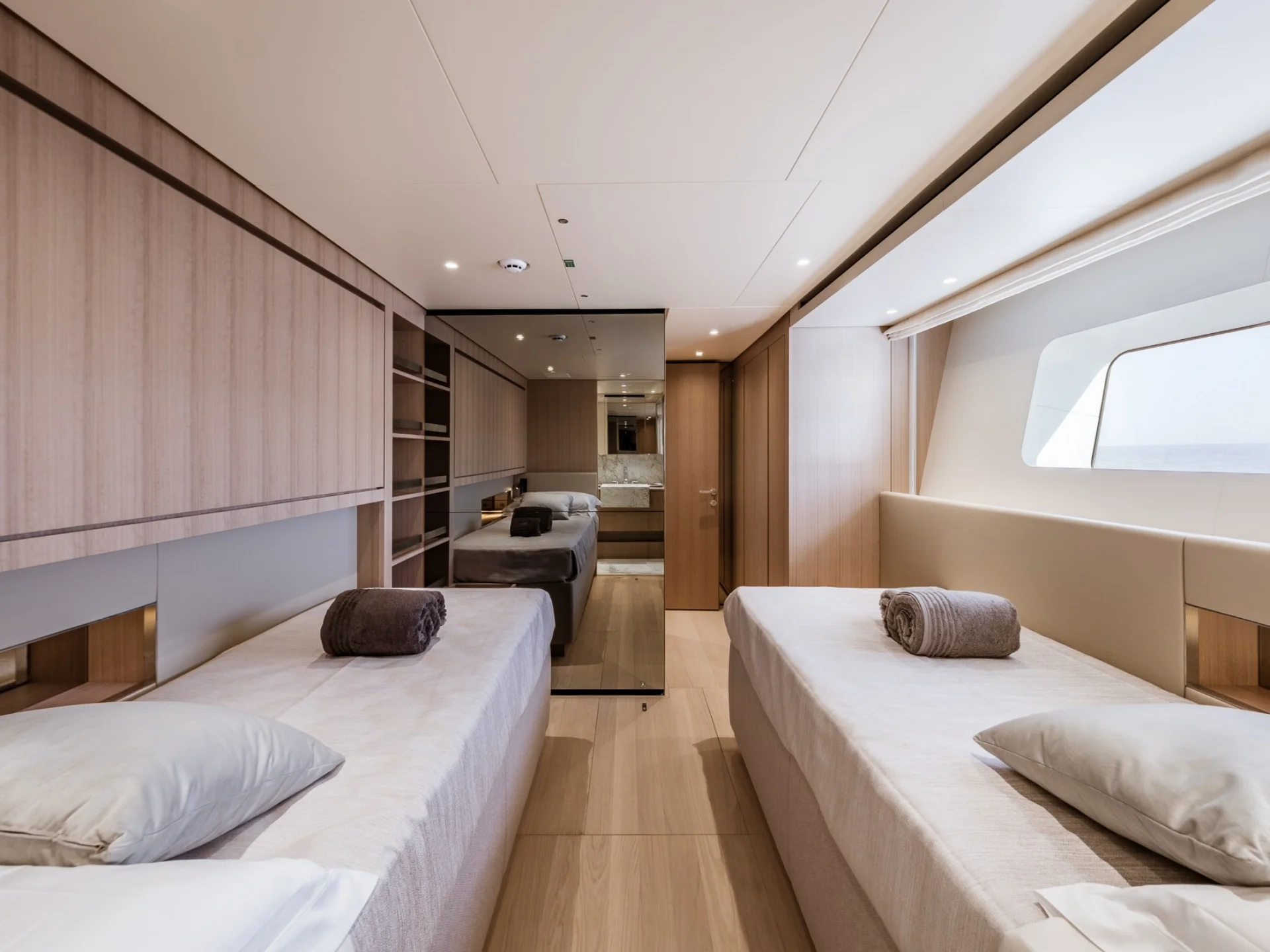 - 2 × Twin Cabin with convertible beds, Pullman berth, and en-suite bathroom