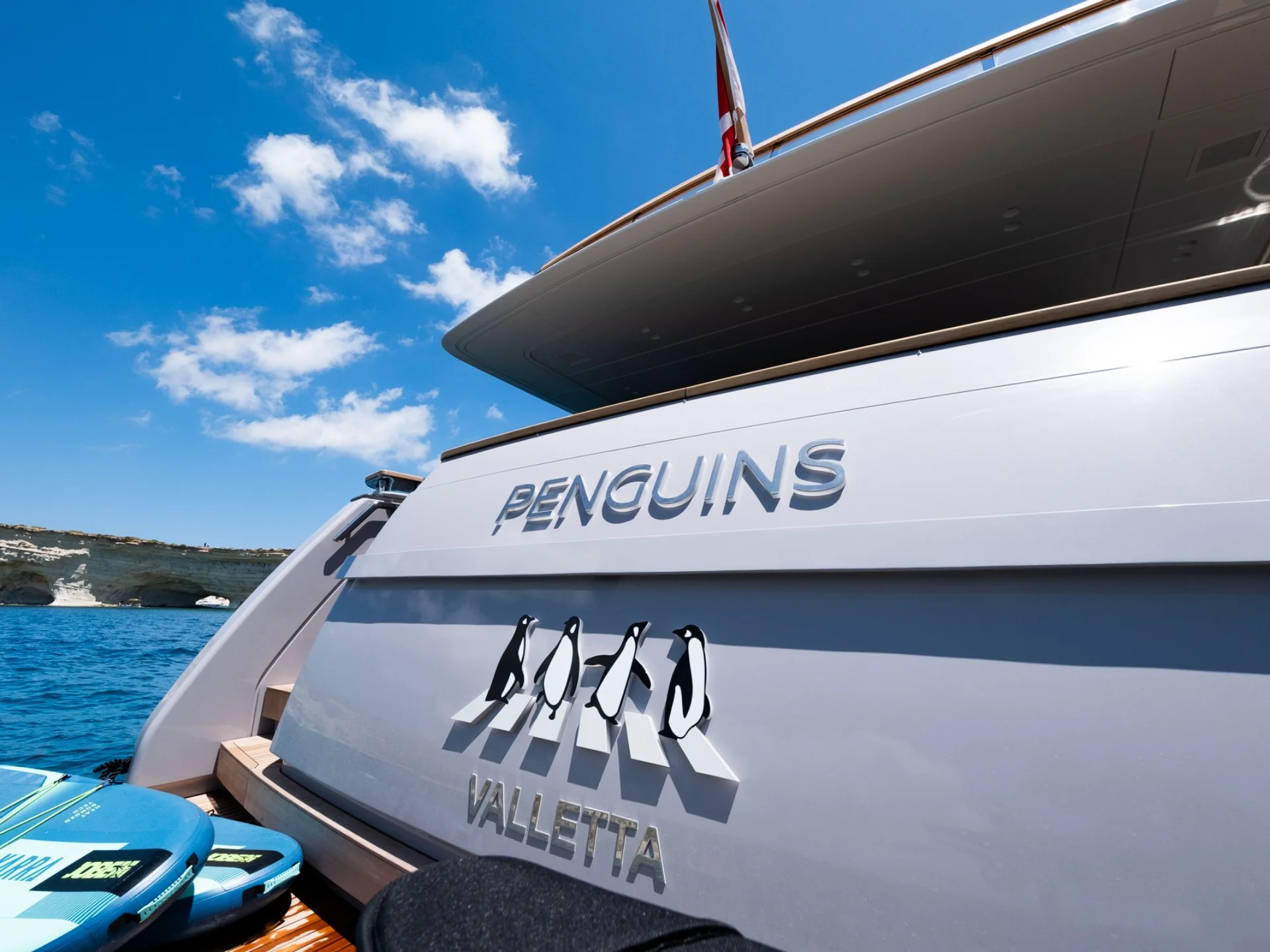 For those seeking a more dynamic experience, Sanlorenzo SD90 Penguins is equipped with a selection of water toys and leisure equipment, complemented by a powerful chase tender, making each day at sea both engaging and memorable.