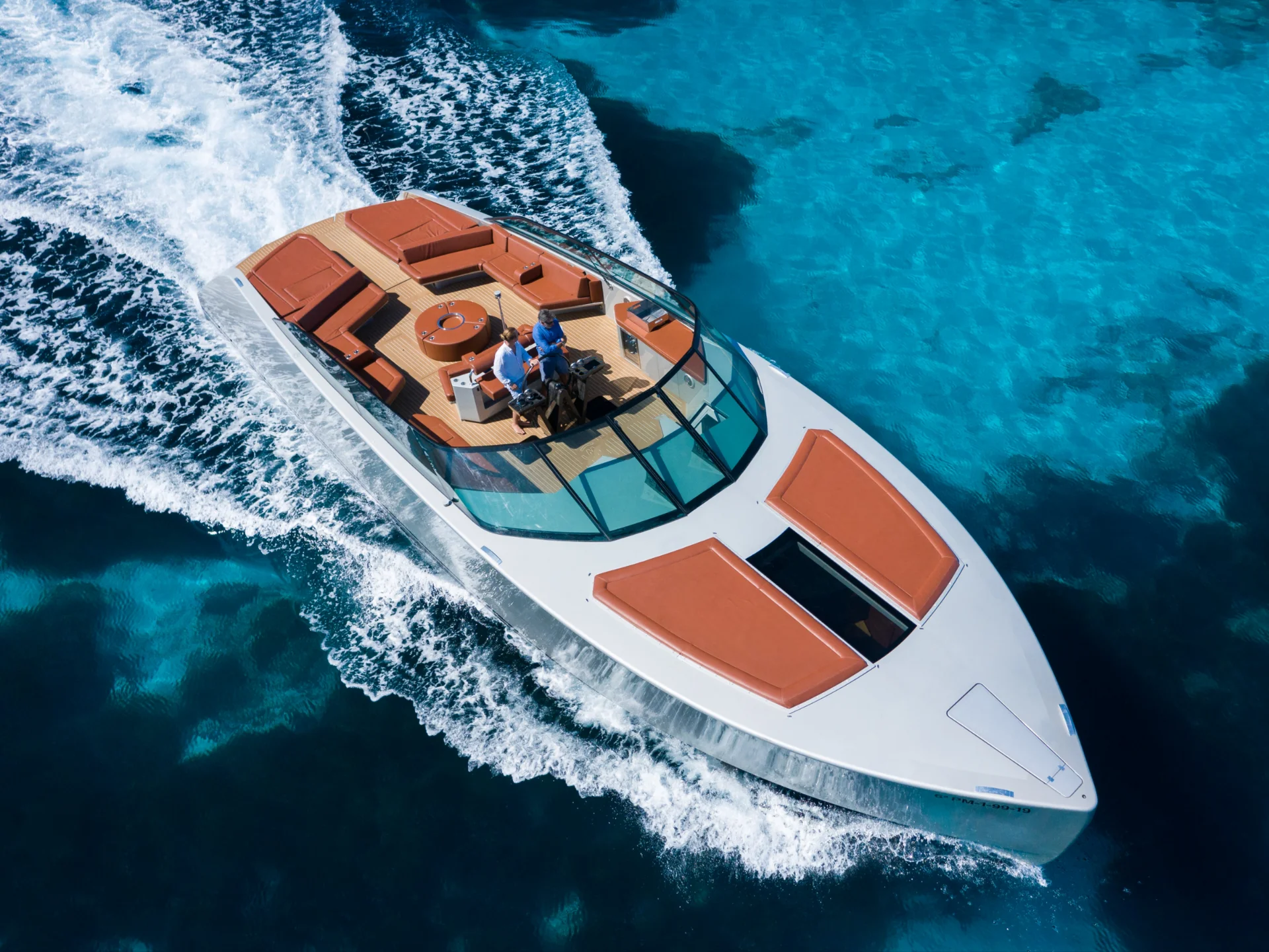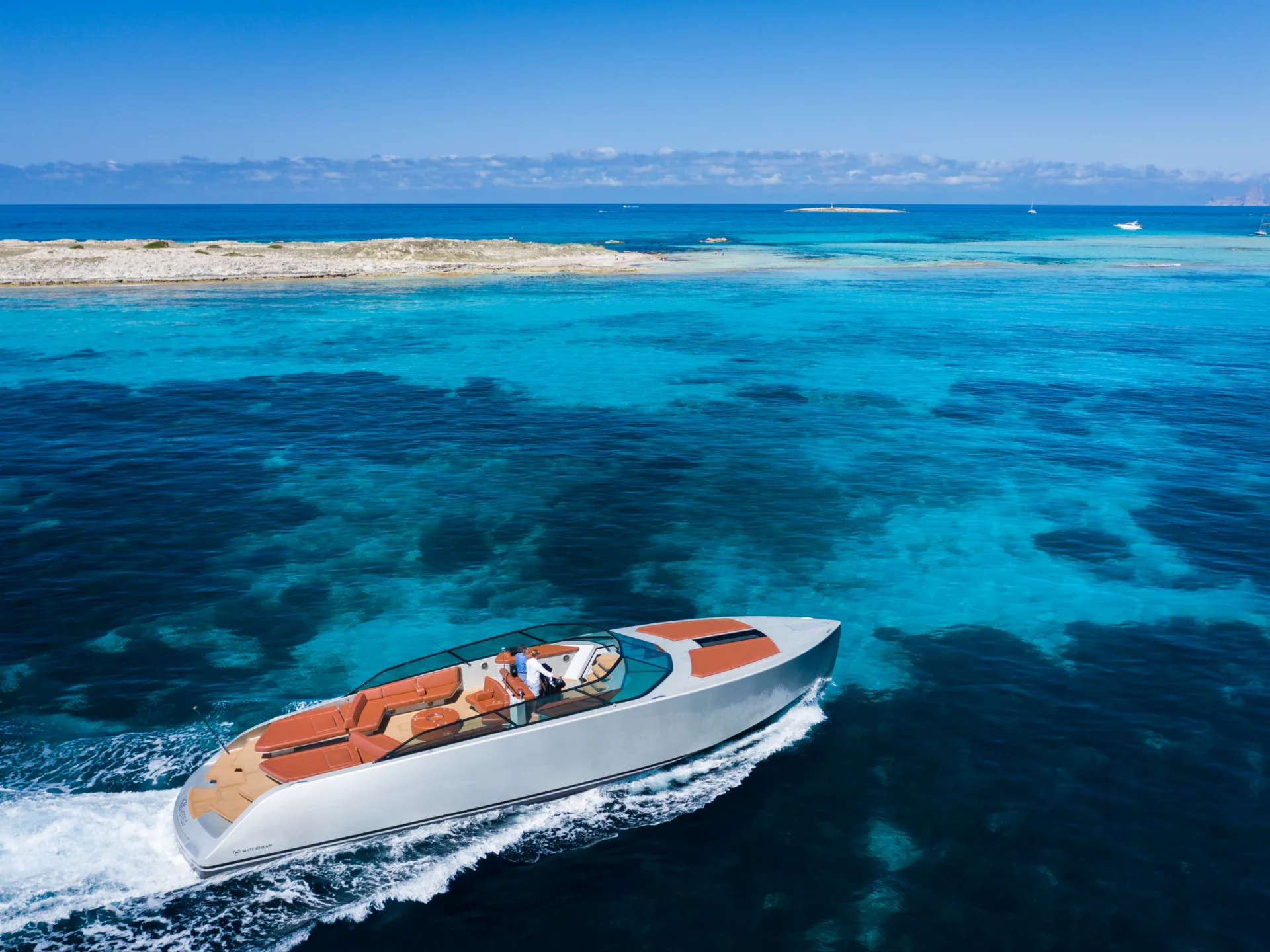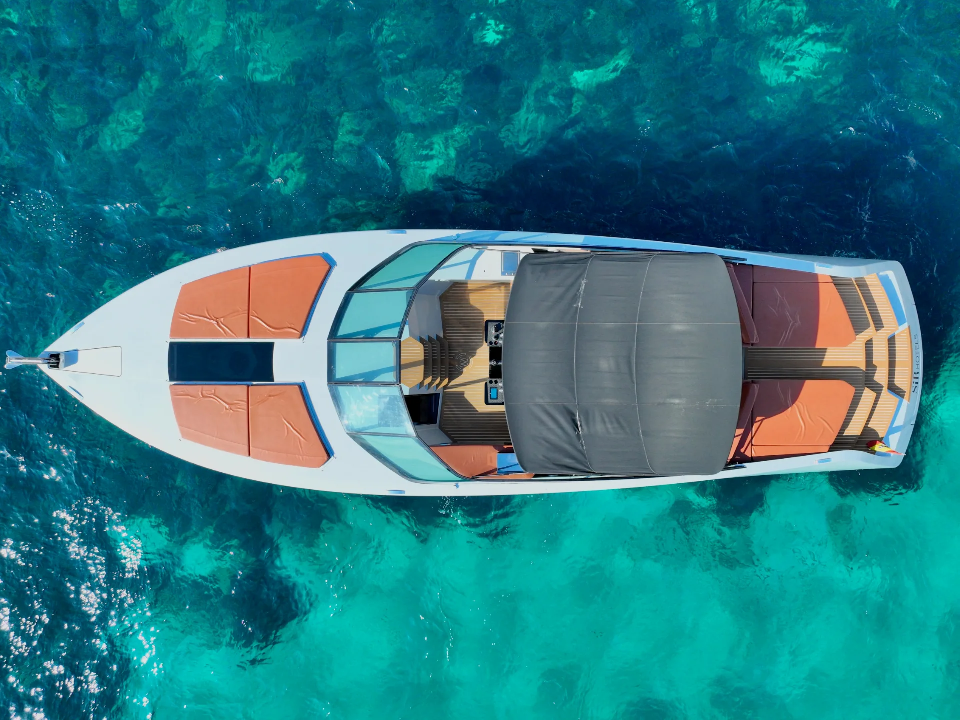 She features an incredible sound system and a huge, open deck with plenty of room for dancing, relaxing, and chatting with friends. This yacht is the perfect choice for large groups who want to arrive at their destination in style and enjoy their day to the fullest. On board, guests enjoy a premium drinks package, linen and towels, and full insurance coverage.
