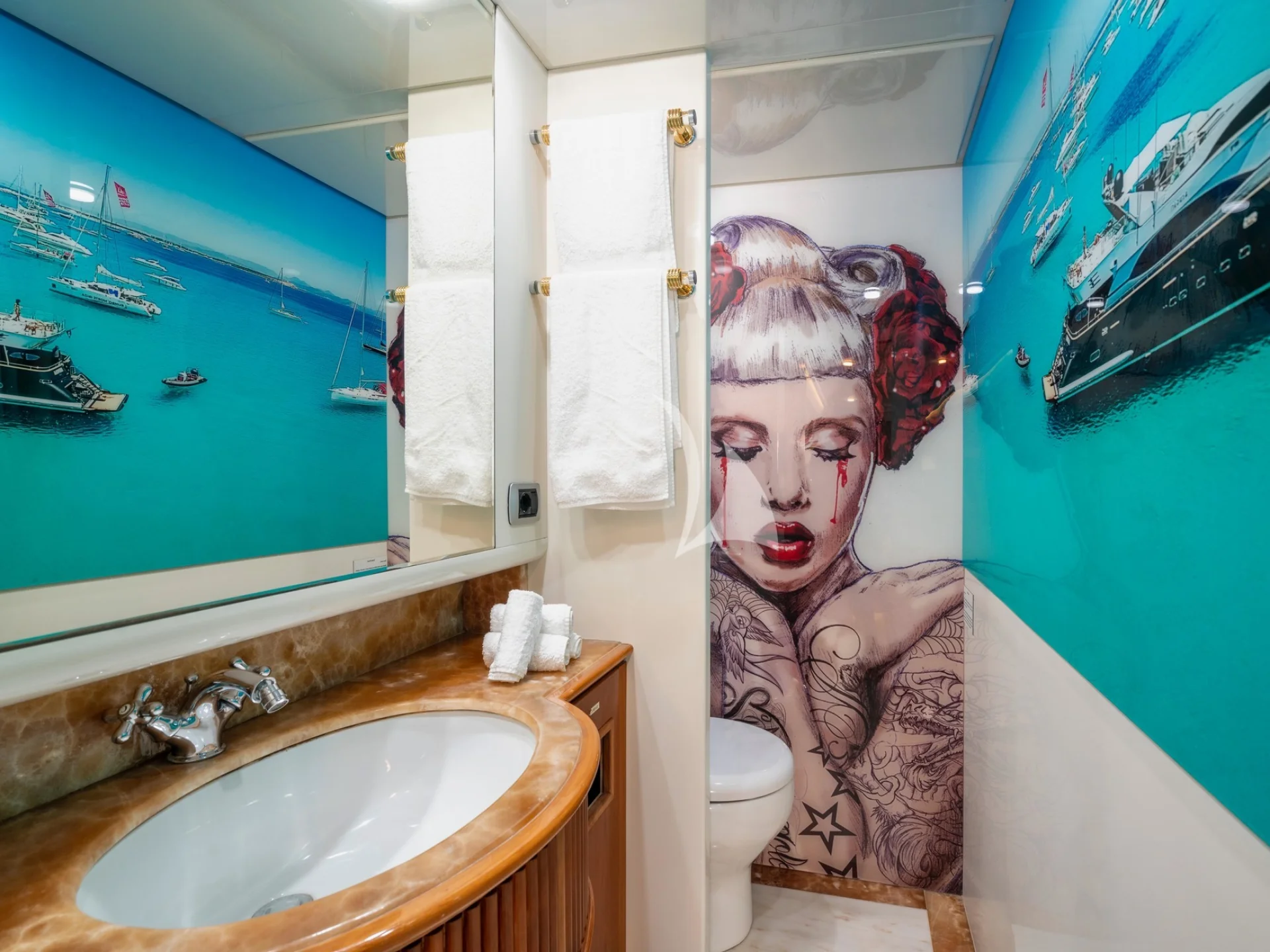 She features a contemporary and clean interior with 4 en-suite, a cinema / lounge room and a large salon.