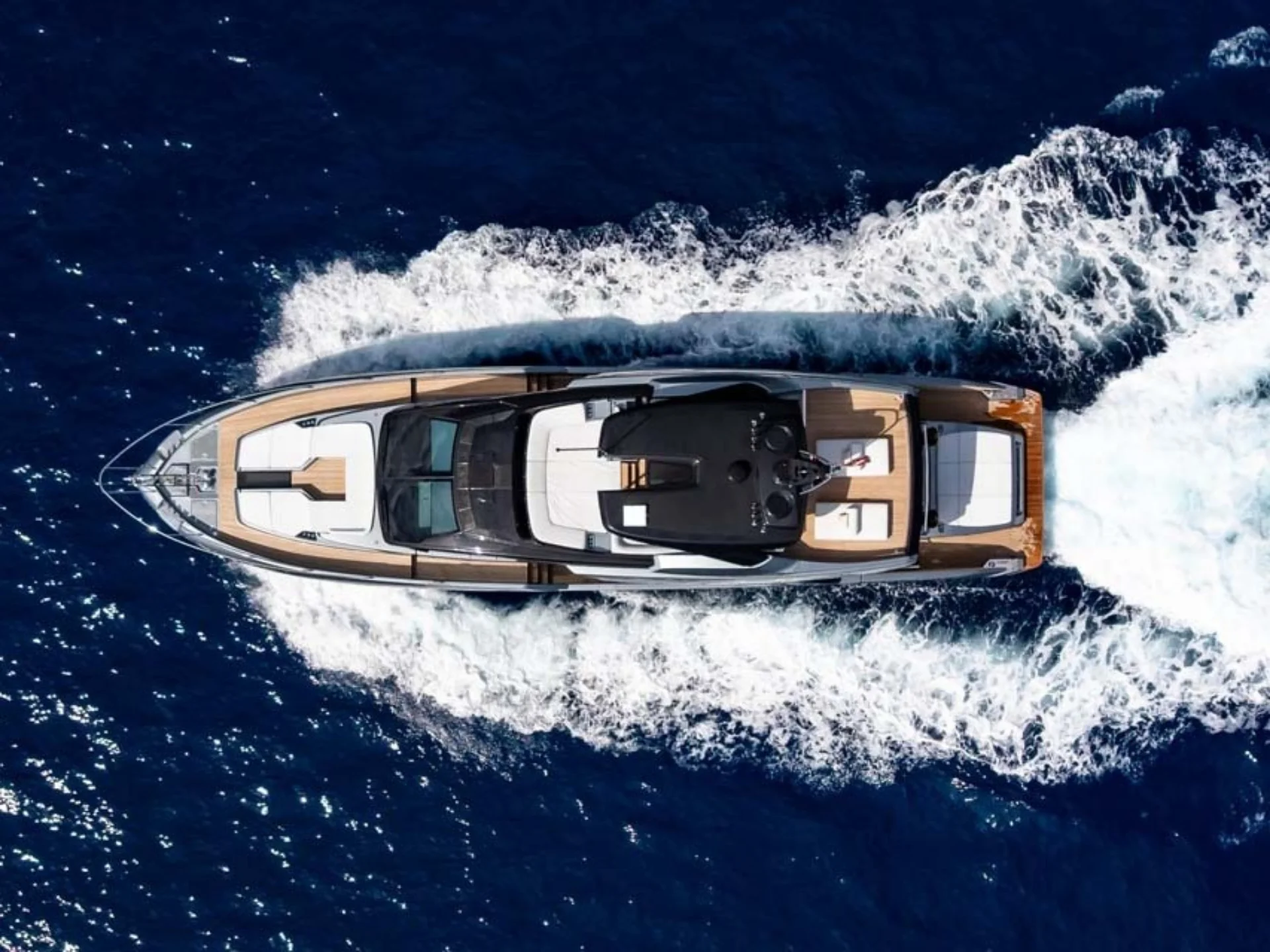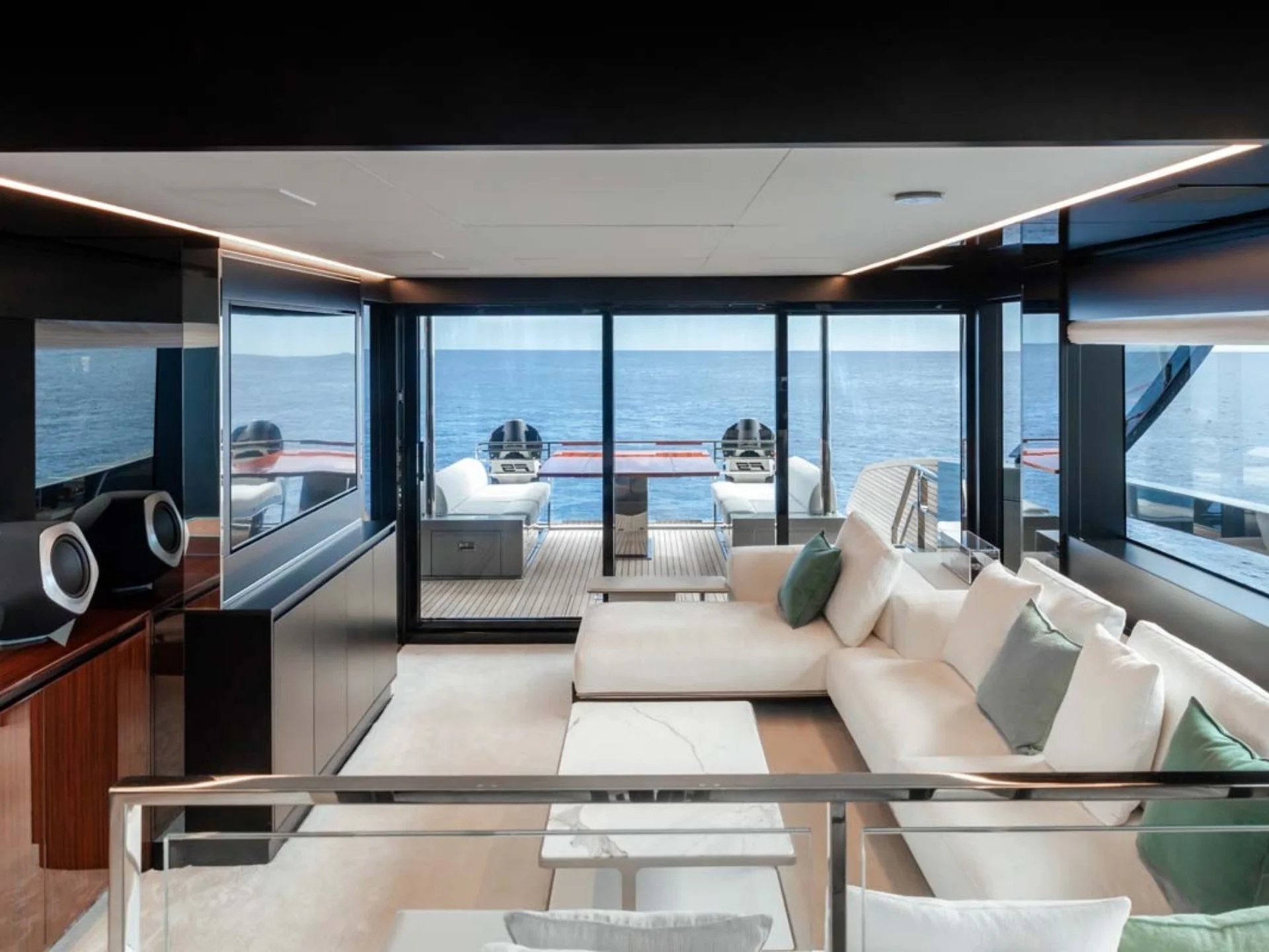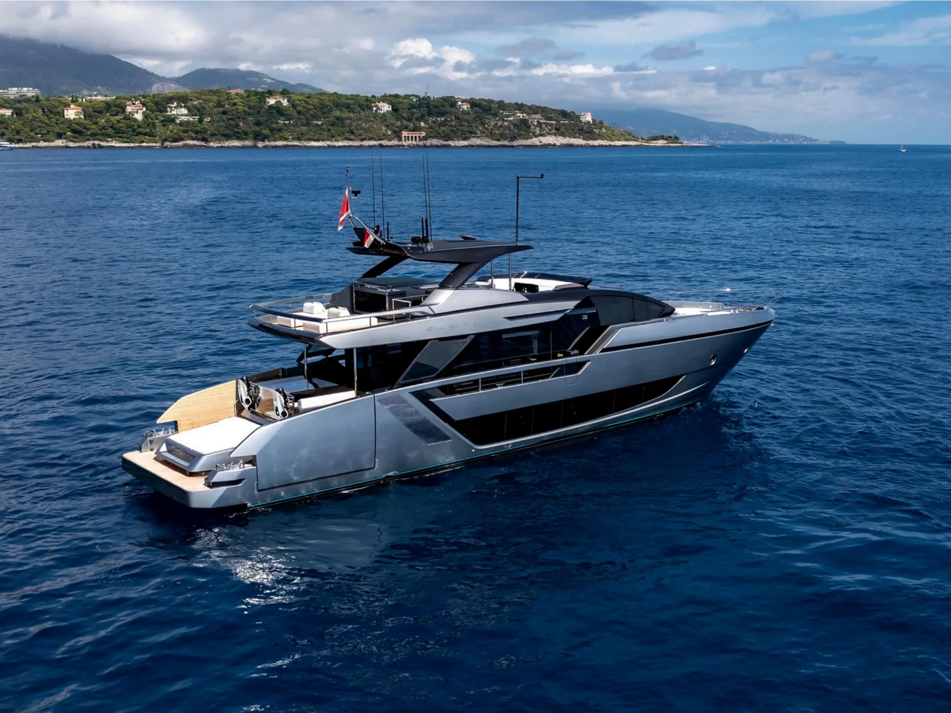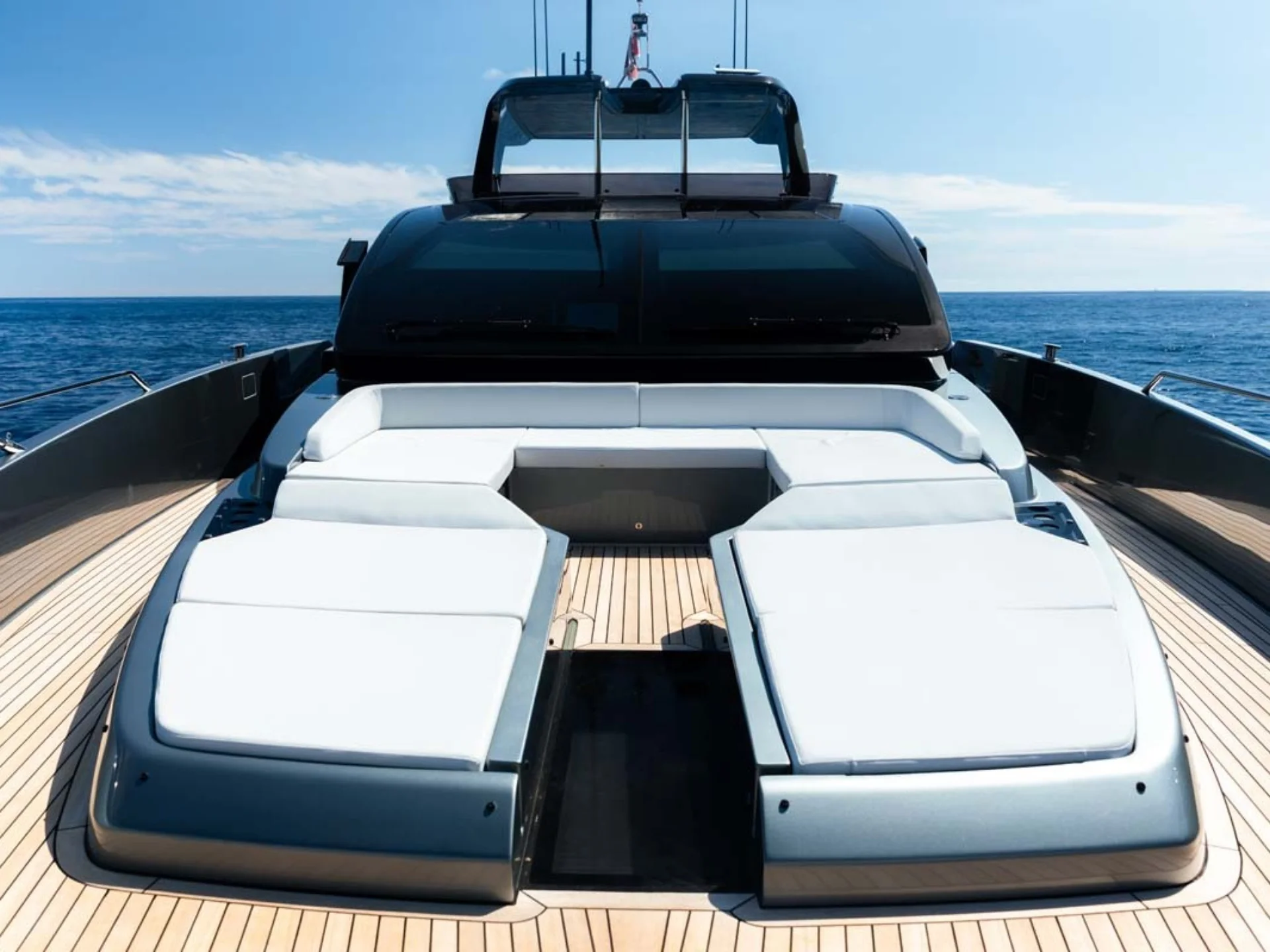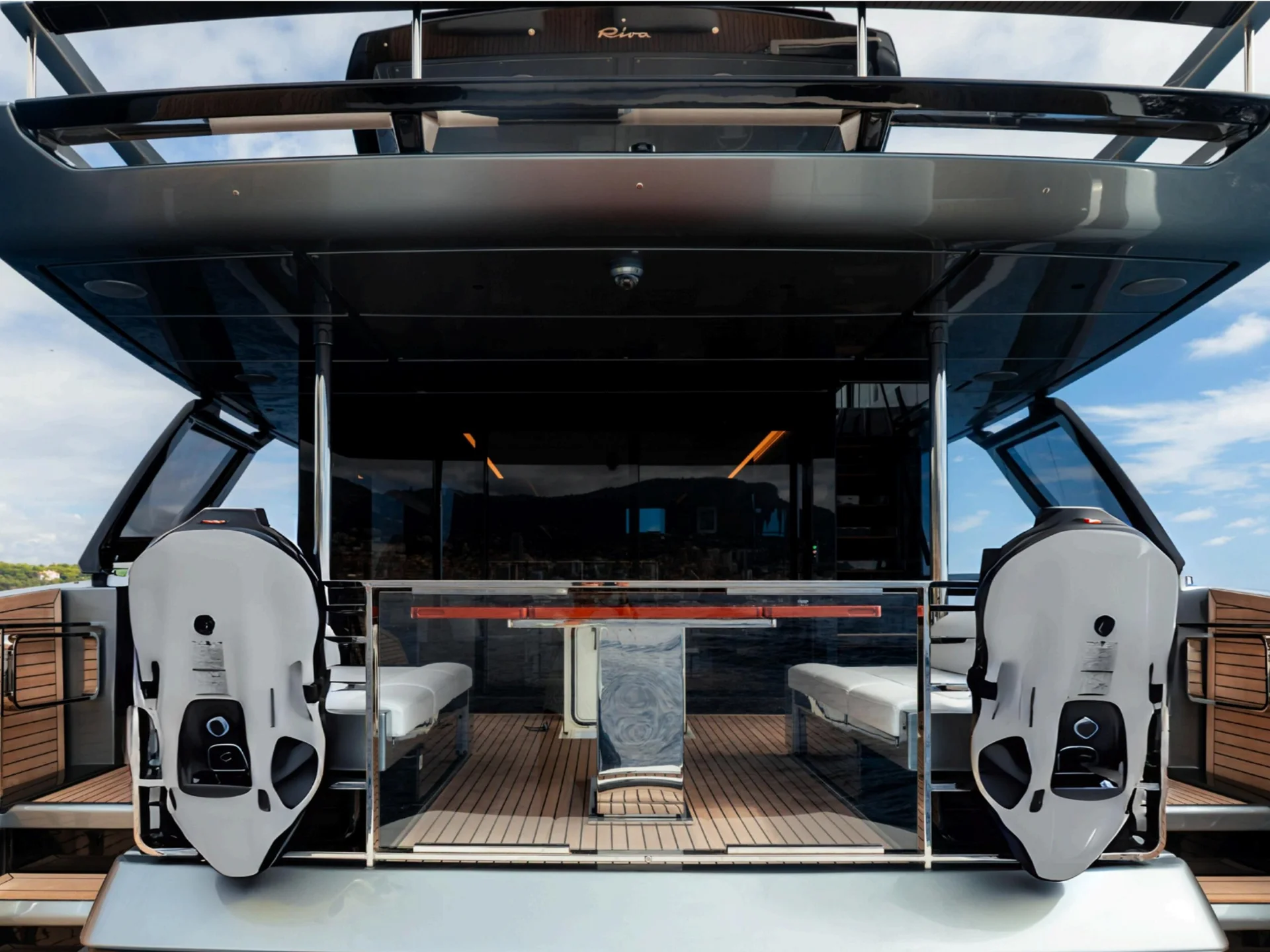Step aboard L’AS BLEU, the brand-new Riva 82’ Diva (2025), an exceptional embodiment of Italian style and modern yacht design. Her standout beach club with two folding terraces creates a true sea-level lounge, while the expansive 40m² flybridge offers dedicated areas for dining, sunbathing, and entertaining.