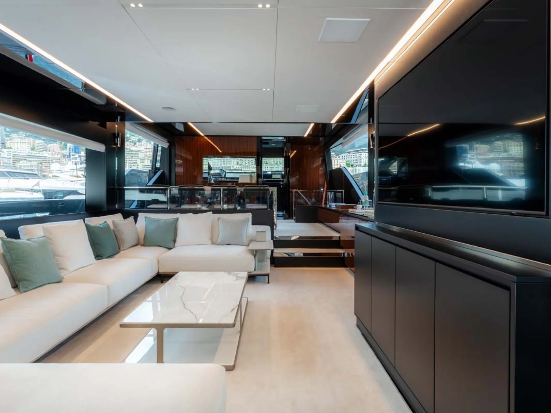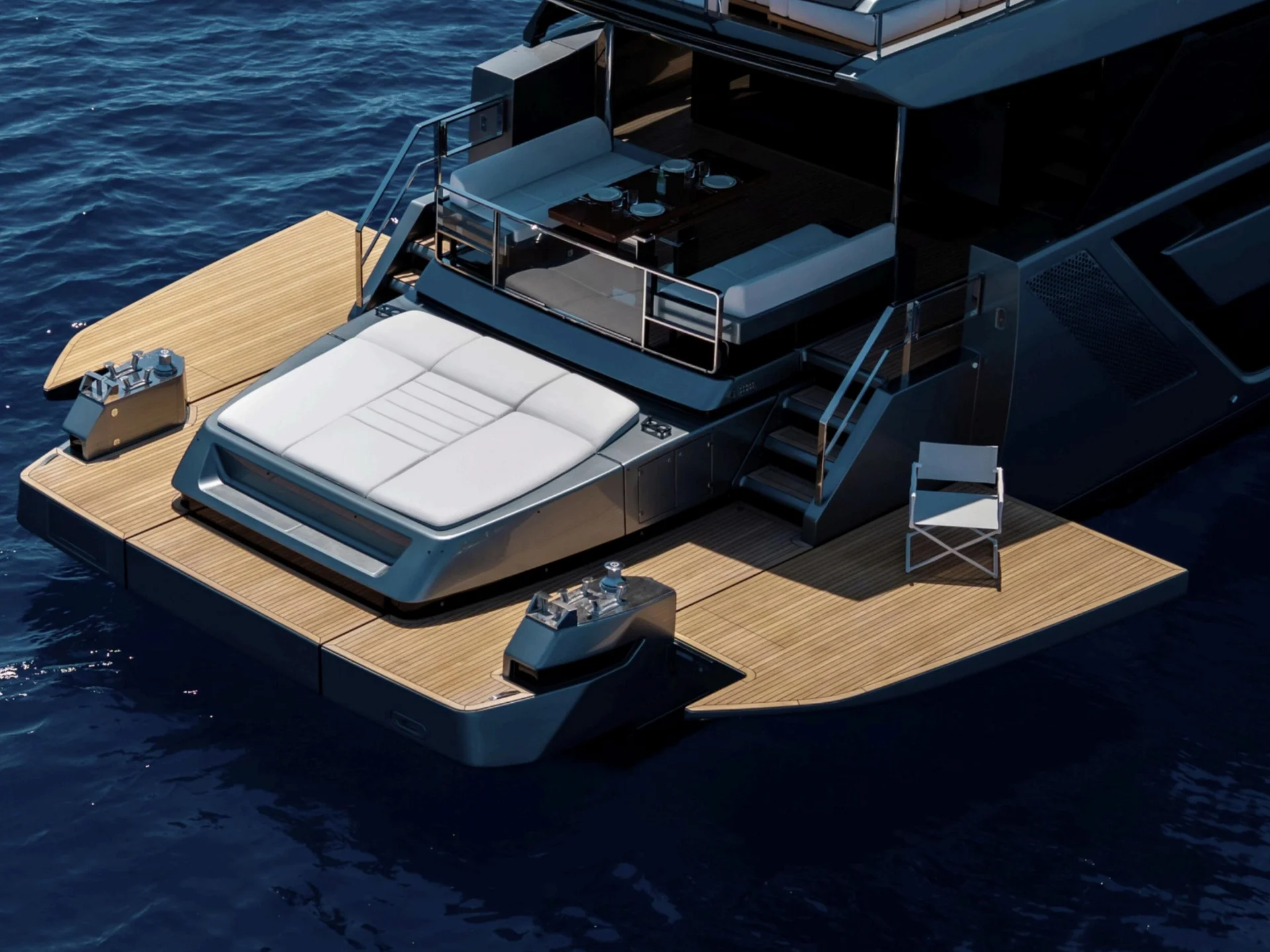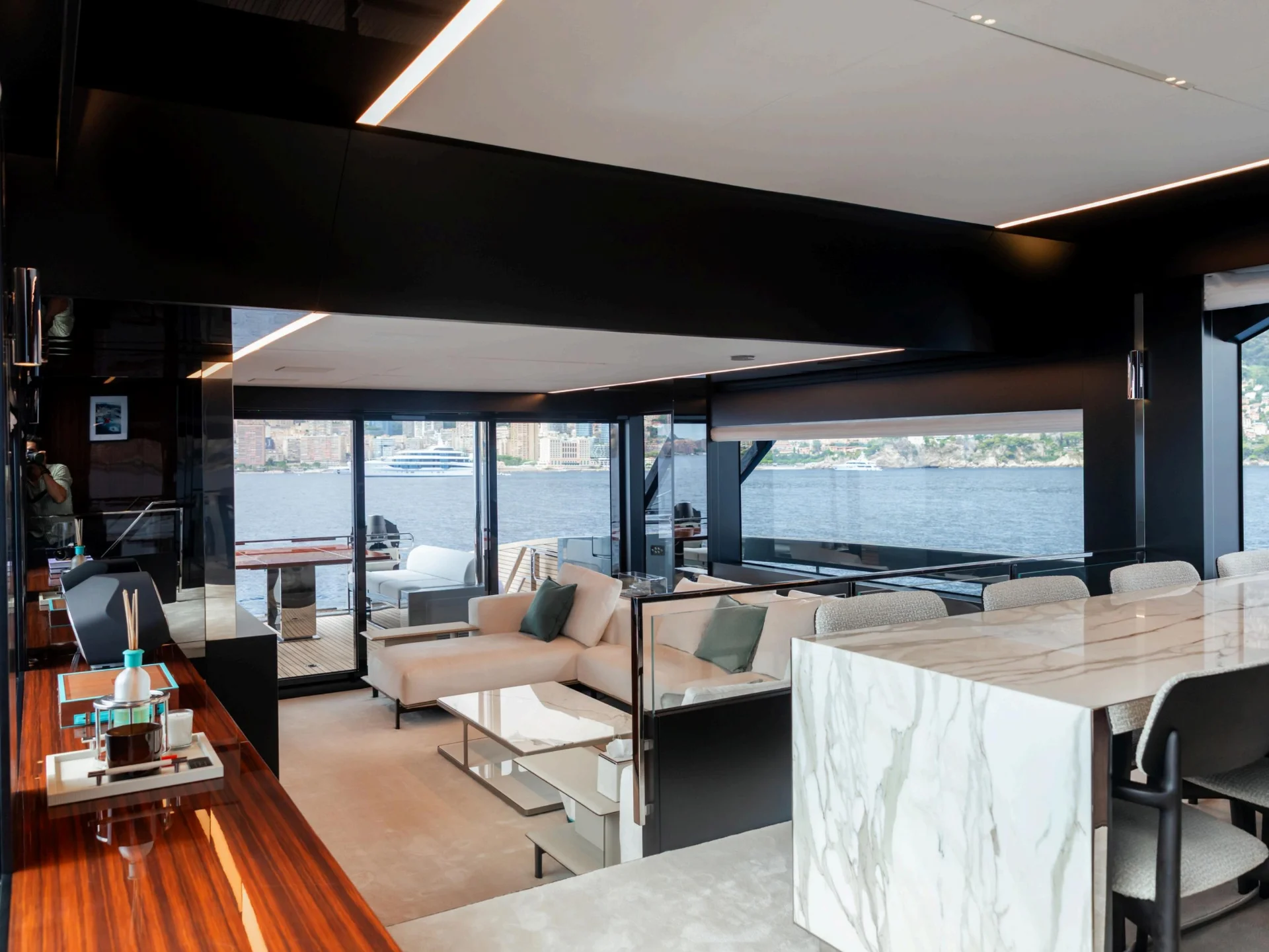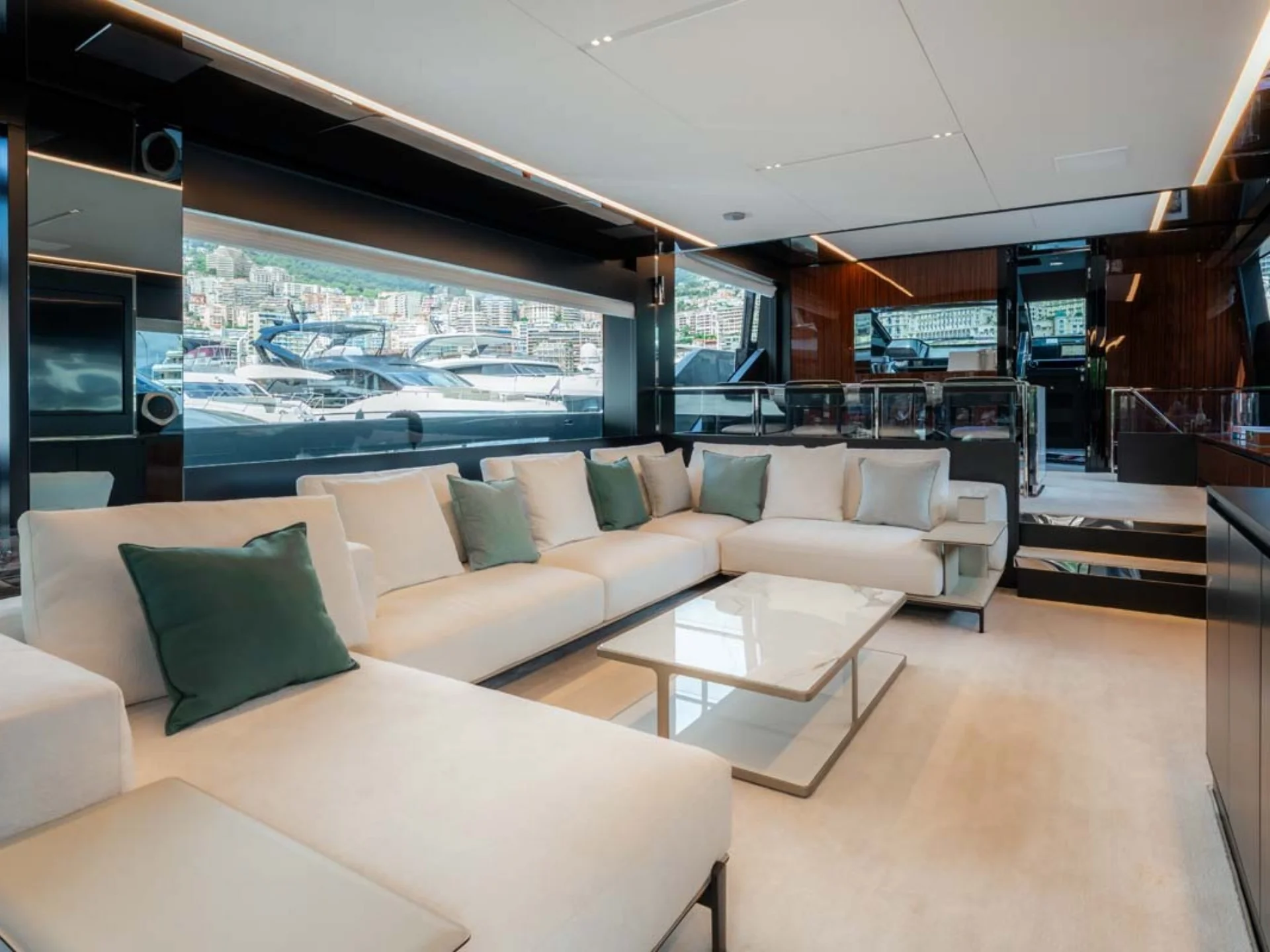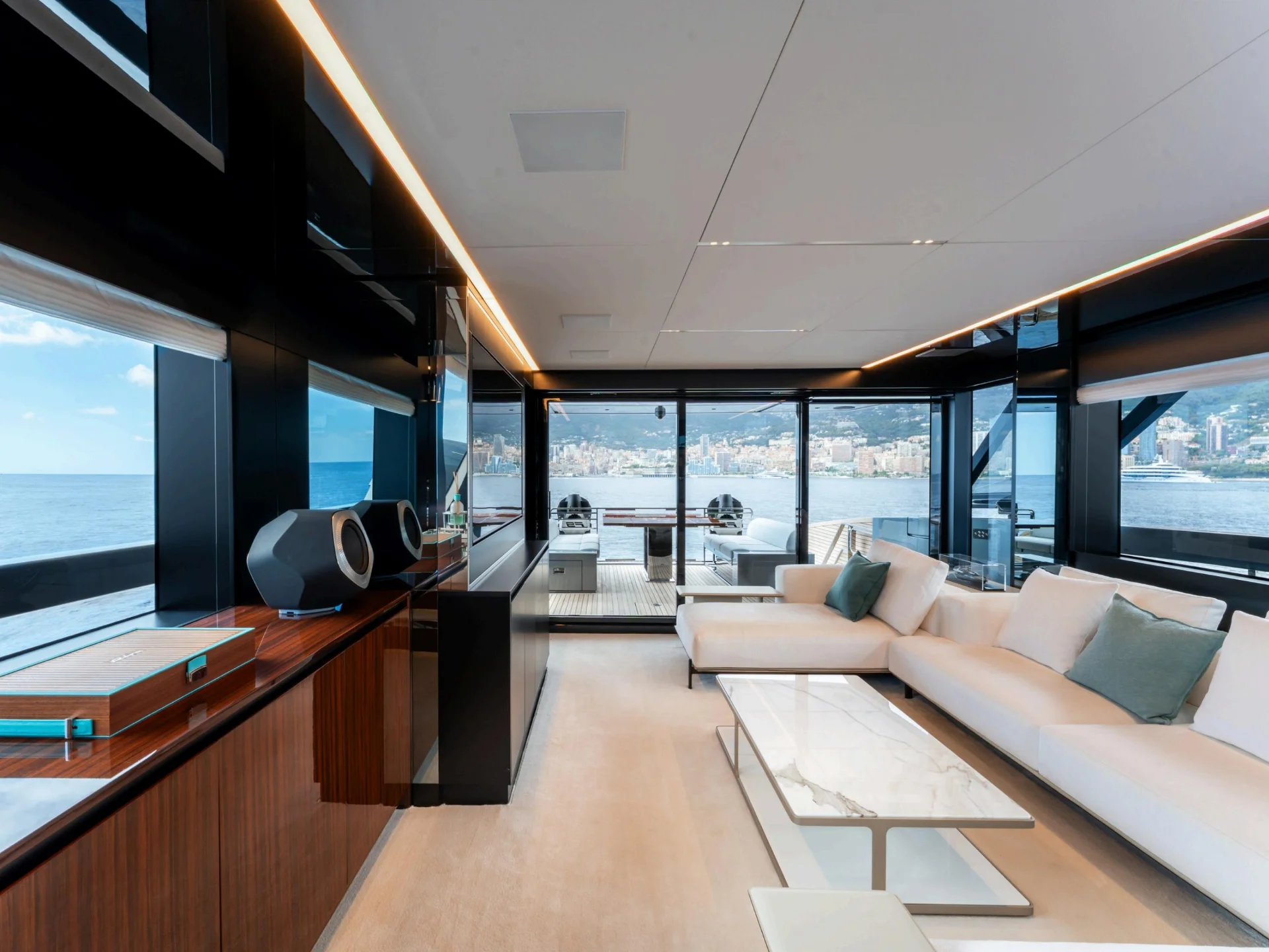 Step aboard L’AS BLEU, the brand-new Riva 82’ Diva (2025), an exceptional embodiment of Italian style and modern yacht design. Her standout beach club with two folding terraces creates a true sea-level lounge, while the expansive 40m² flybridge offers dedicated areas for dining, sunbathing, and entertaining.