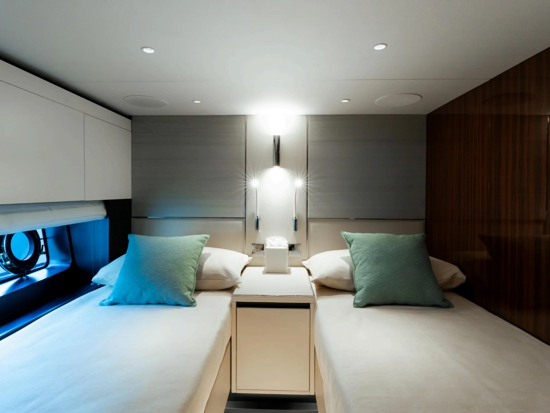 • 4 en-suite cabins for up to 8 guests, including a full-beam Owner’s suite.