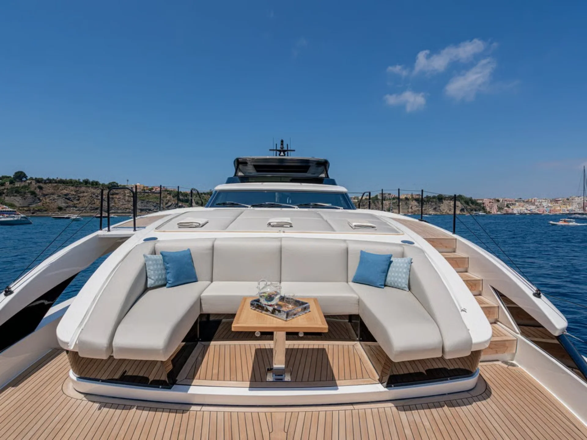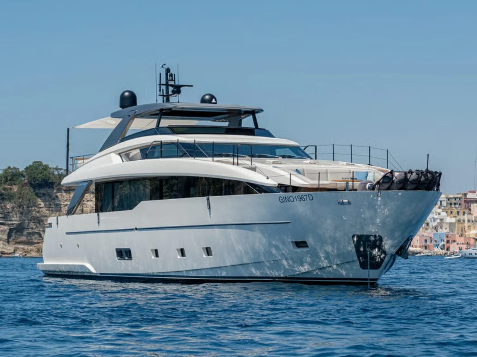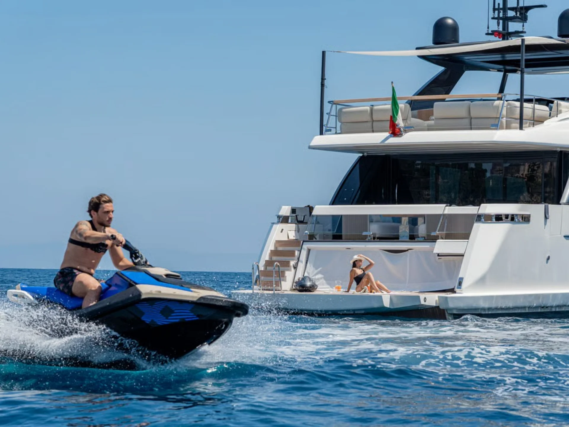- Sleek flybridge layout with generous sunbathing and outdoor social areas