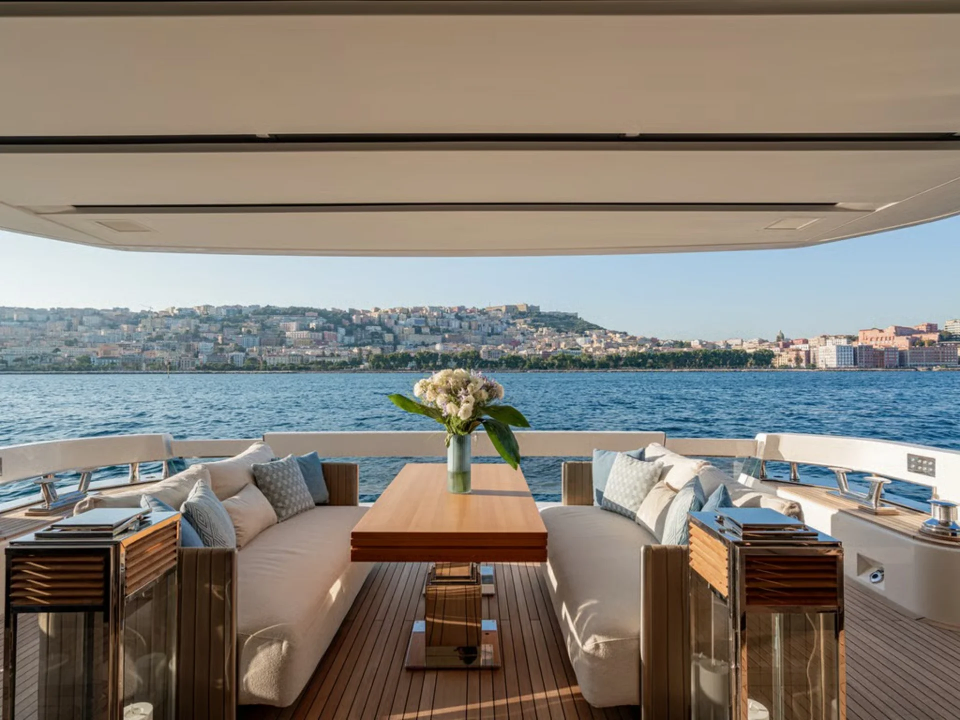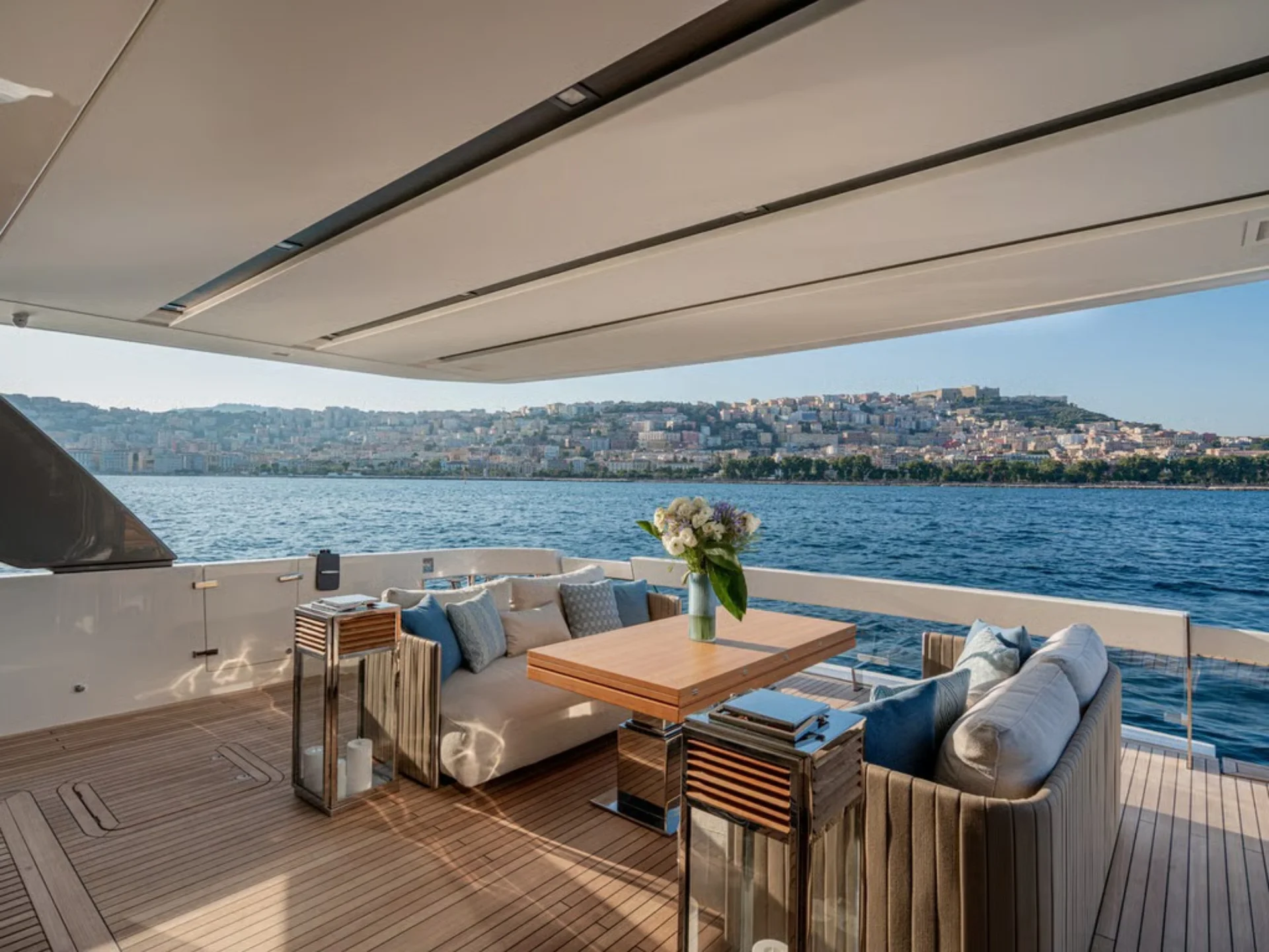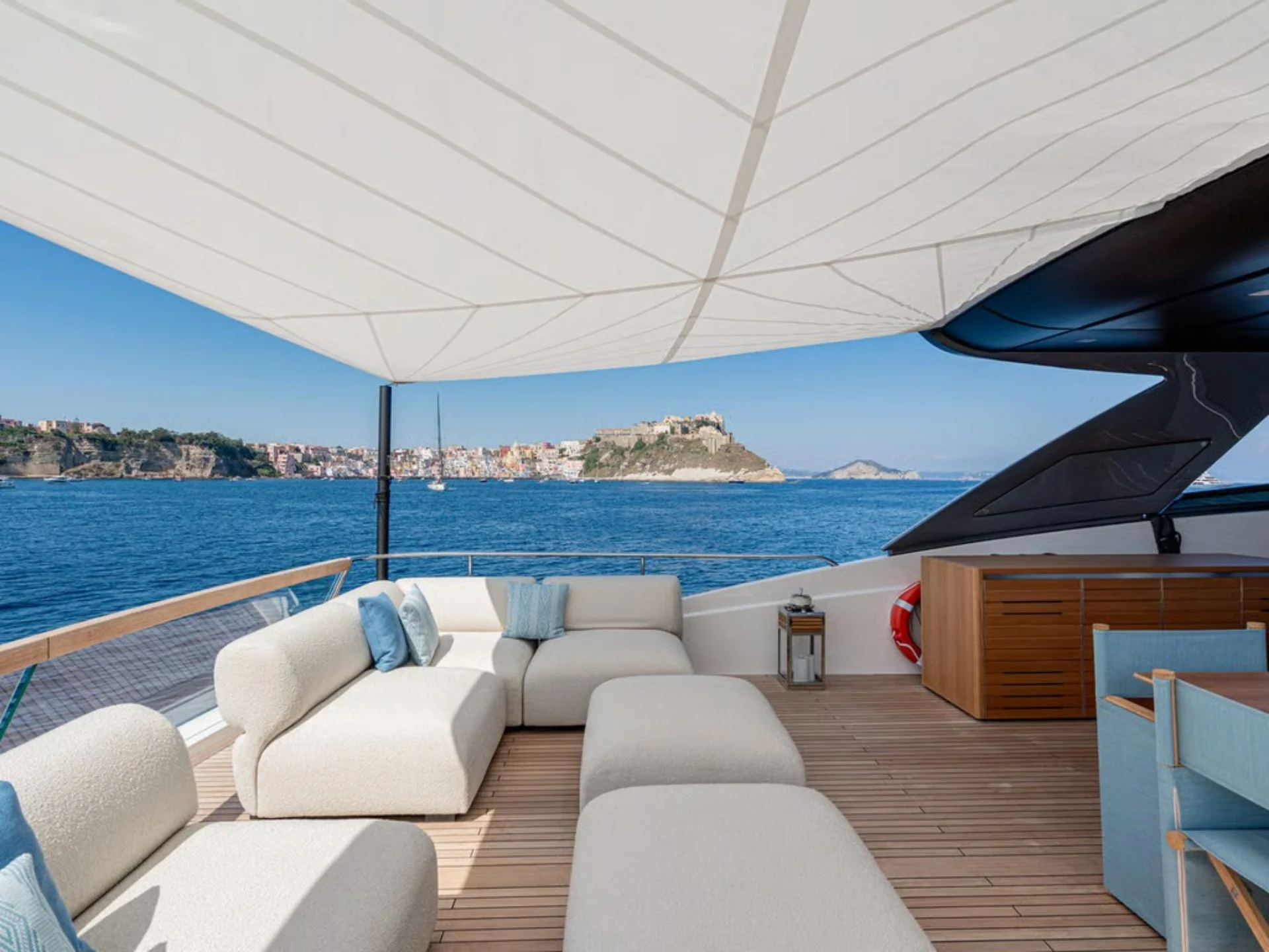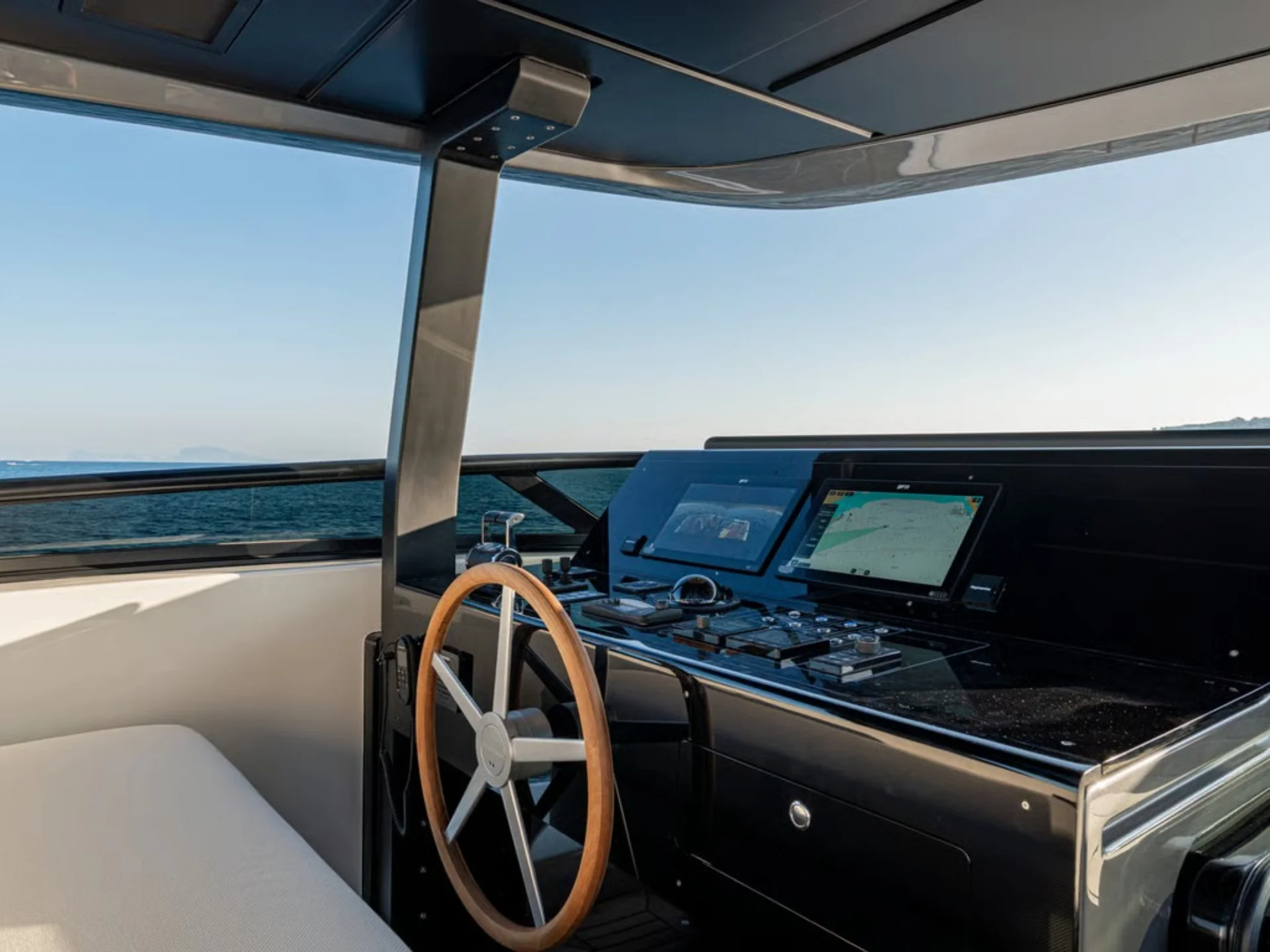 - Sleek flybridge layout with generous sunbathing and outdoor social areas