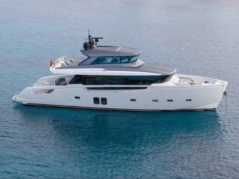 Inside, the yacht boasts a contemporary design with high-quality finishes. The main salon offers ample seating, large windows for natural light, and a formal dining area. A state-of-the-art entertainment system and Wi-Fi ensure connectivity and leisure.