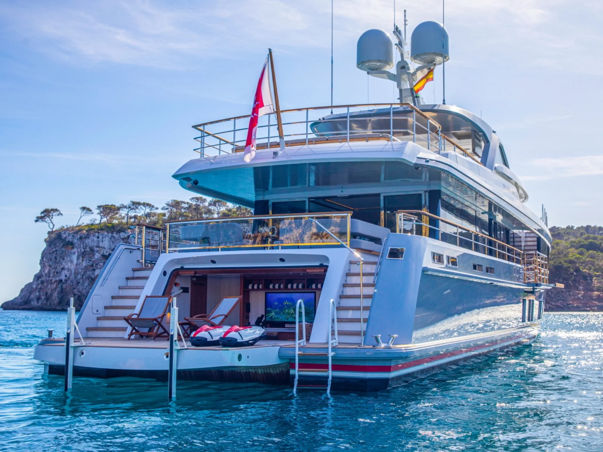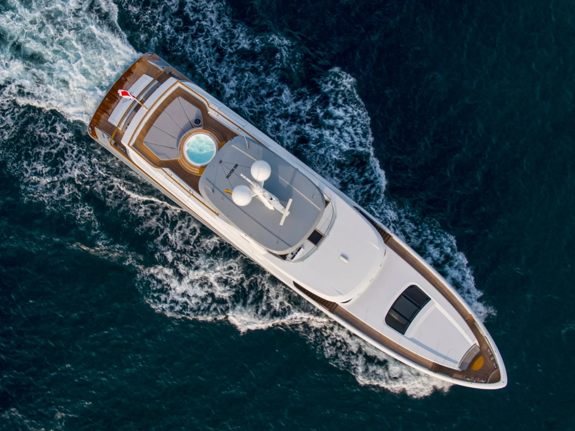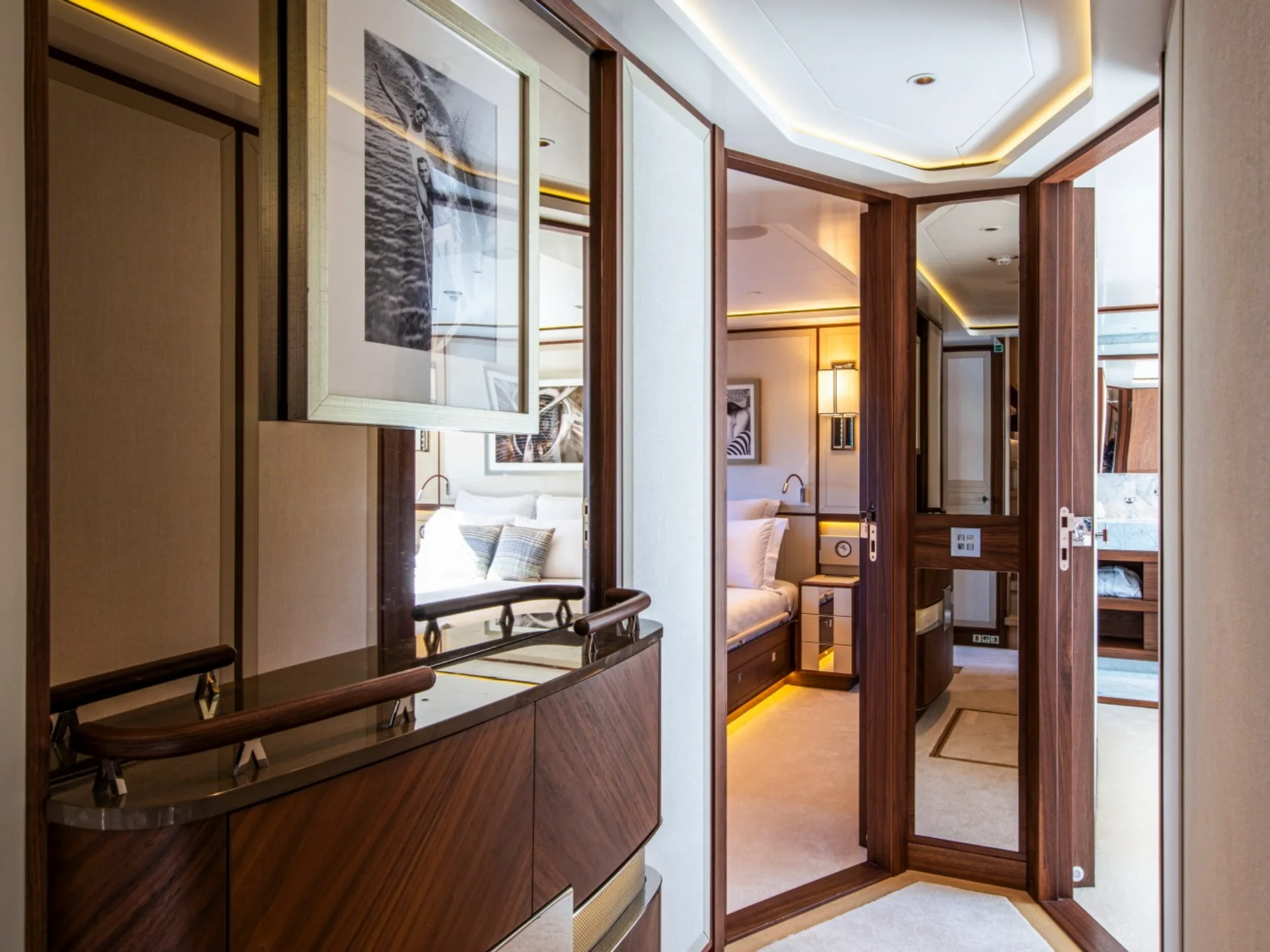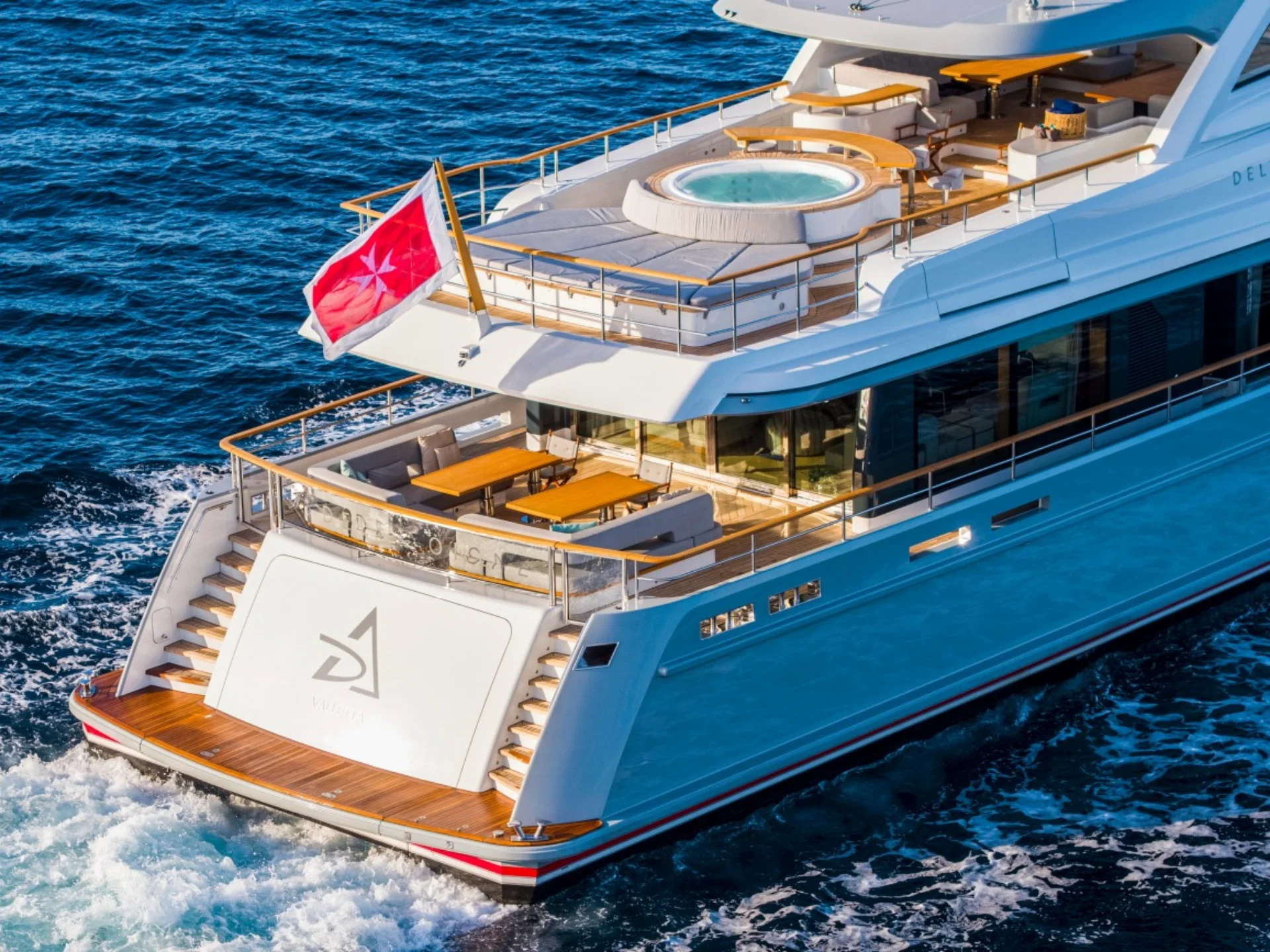 Her exterior spaces are designed for relaxed outdoor living and socialising. Guests can enjoy generous deck areas with comfortable seating and dining spaces, ideal for long lunches, sunset drinks, and time spent enjoying the surroundings. The sundeck offers ample space for lounging and entertaining, while the aft deck provides shaded seating and dining for effortless alfresco moments. Multiple outdoor areas allow guests to enjoy both sun and shade throughout the day.