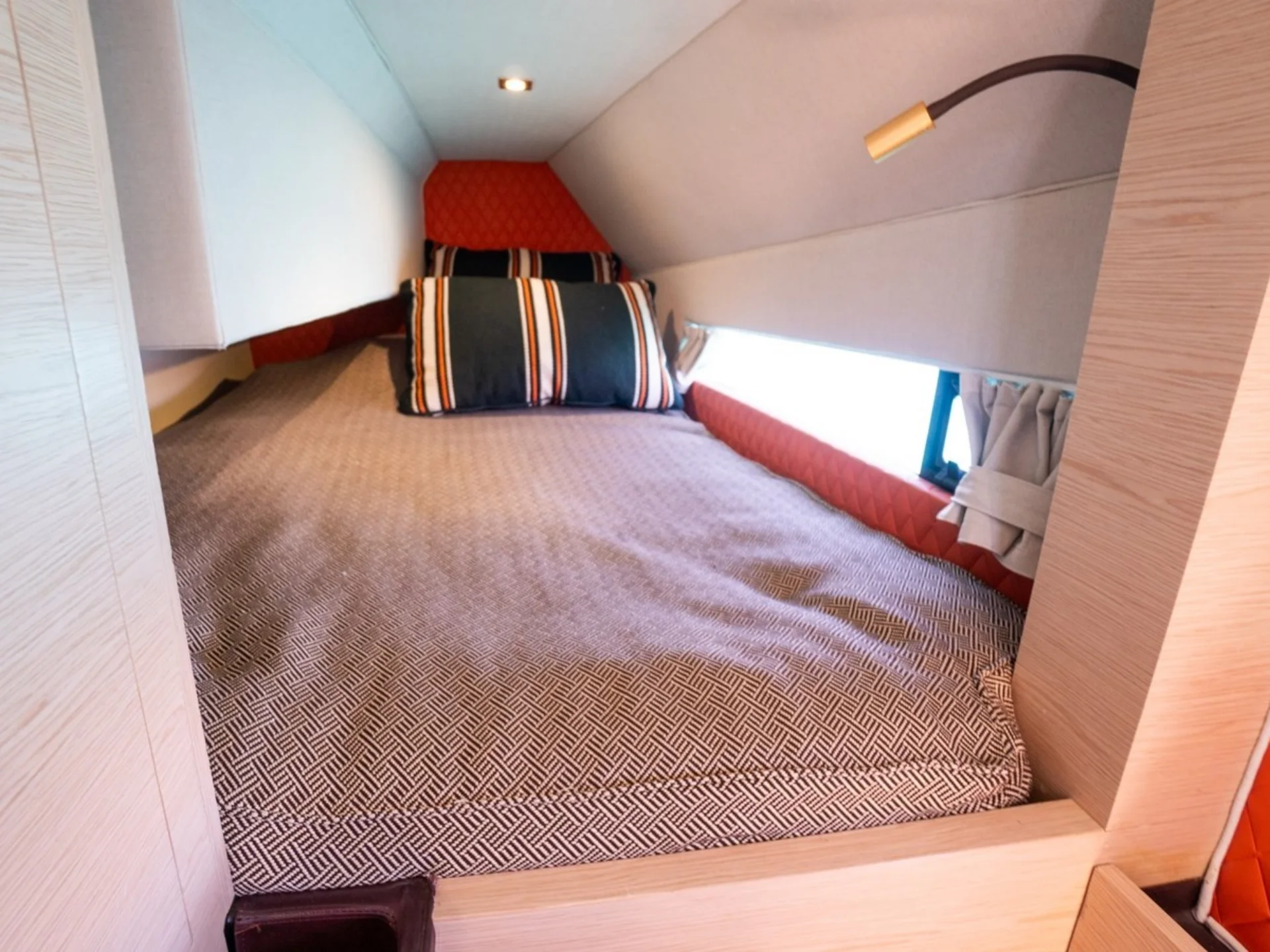 Designed with simplicity and functionality in mind, the layout maximises natural light and volume throughout the interior. Accommodation is arranged across two cabins, comprising an owner’s cabin and a guest cabin, making her well suited to private cruising or intimate escapes at sea.