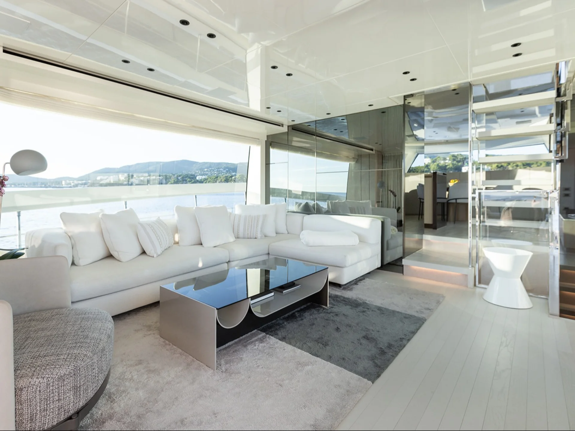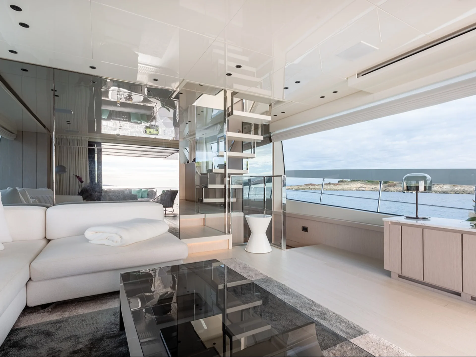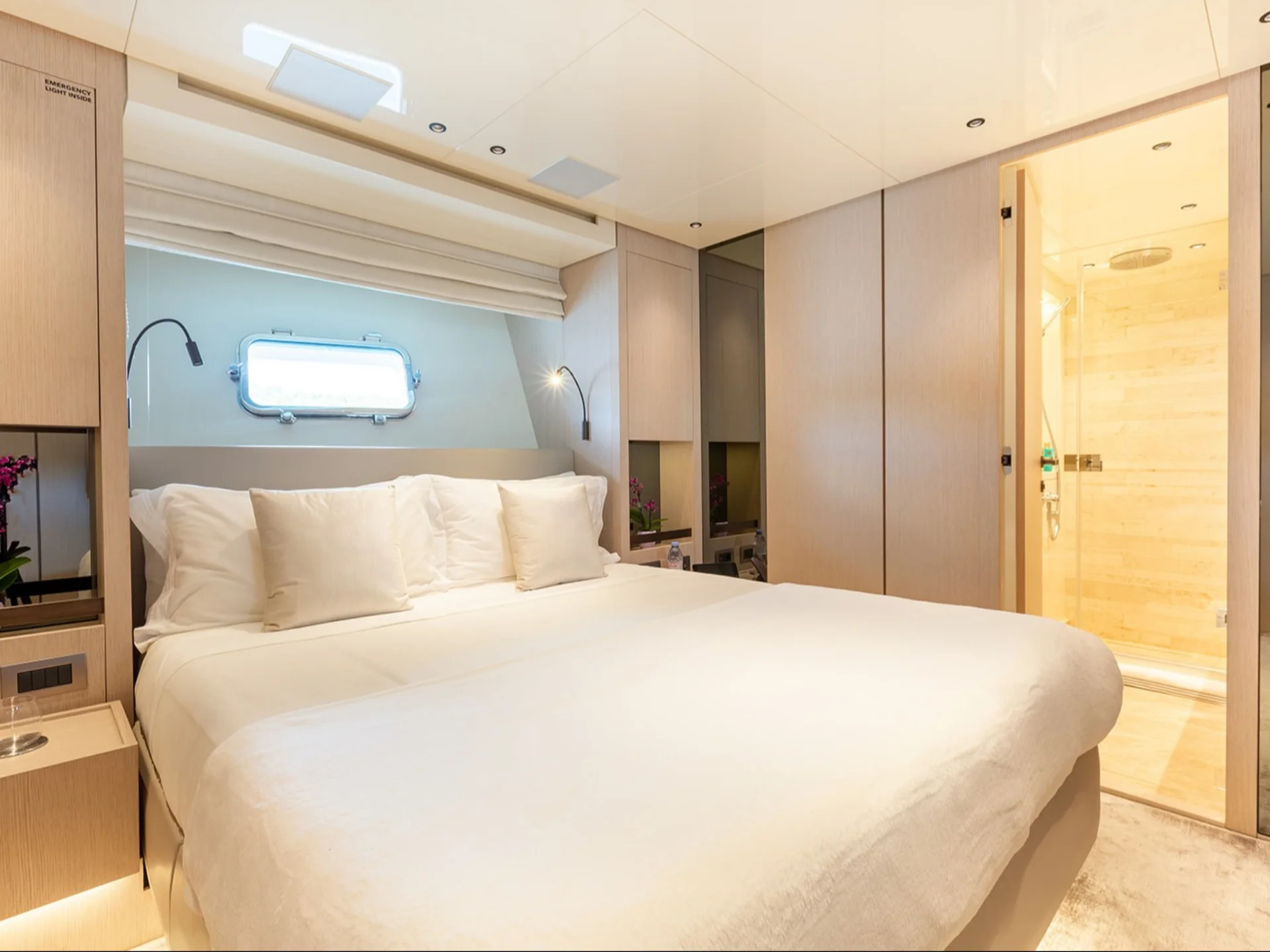 Discover M/Y CLOUD IX, a refined Sanlorenzo SX76 crossover yacht delivered in 2019, offering a modern and stylish way to explore the Mediterranean. Built by the renowned Italian shipyard Sanlorenzo, CLOUD IX combines contemporary design with practical performance, creating an elegant and comfortable platform for unforgettable charters. With a dedicated crew of three and meticulous upkeep, she promises a seamless and relaxed experience on board.