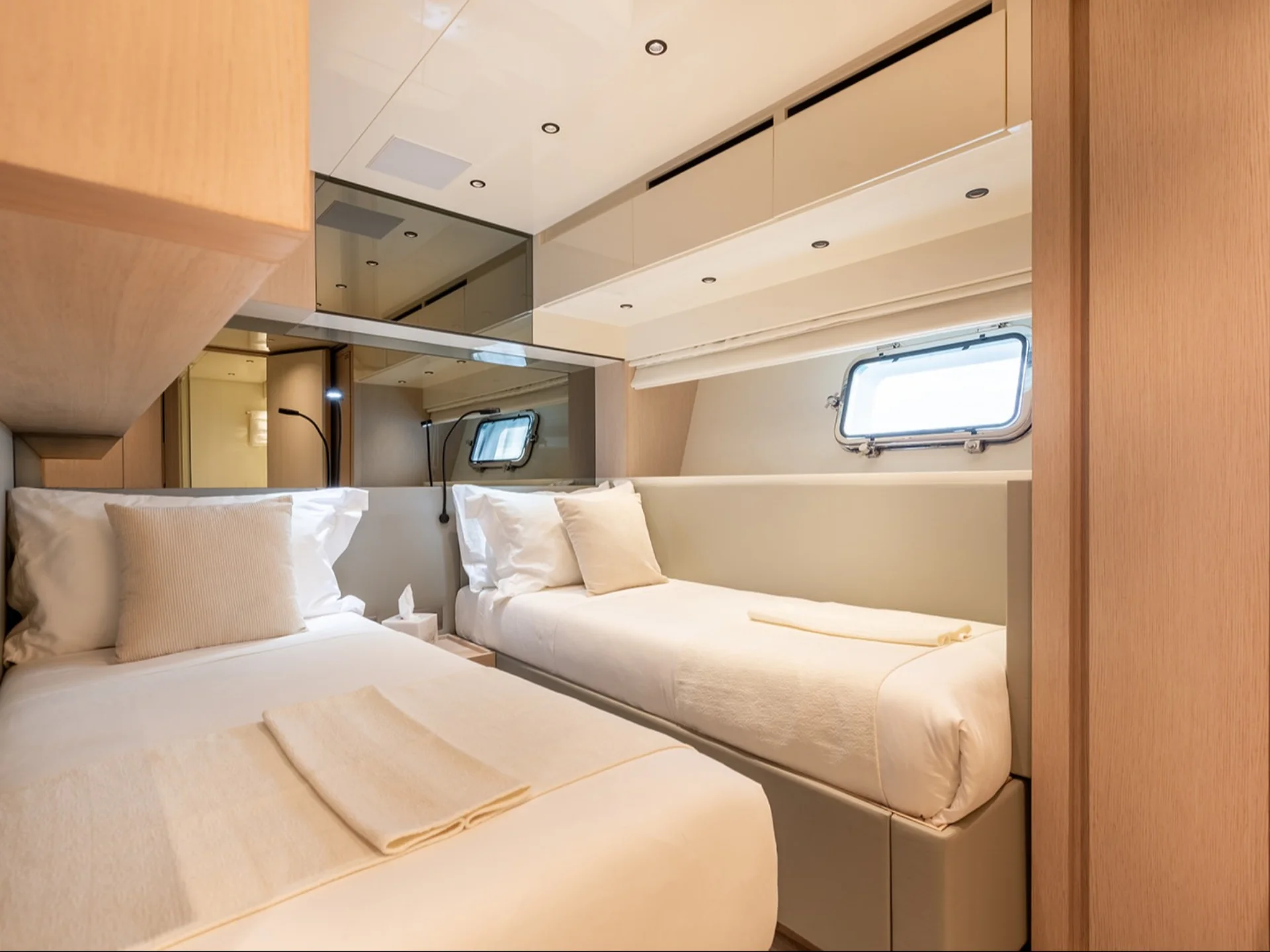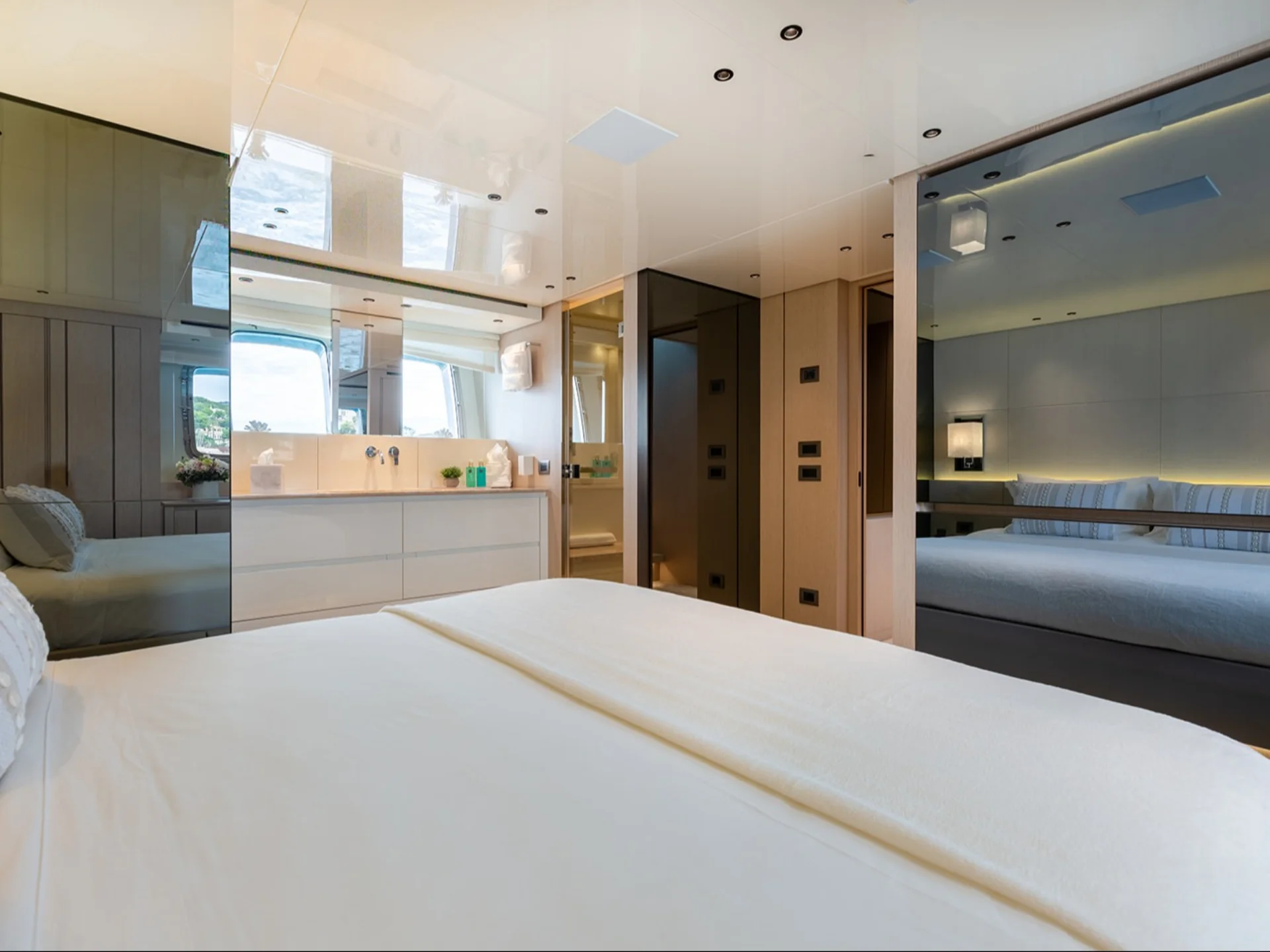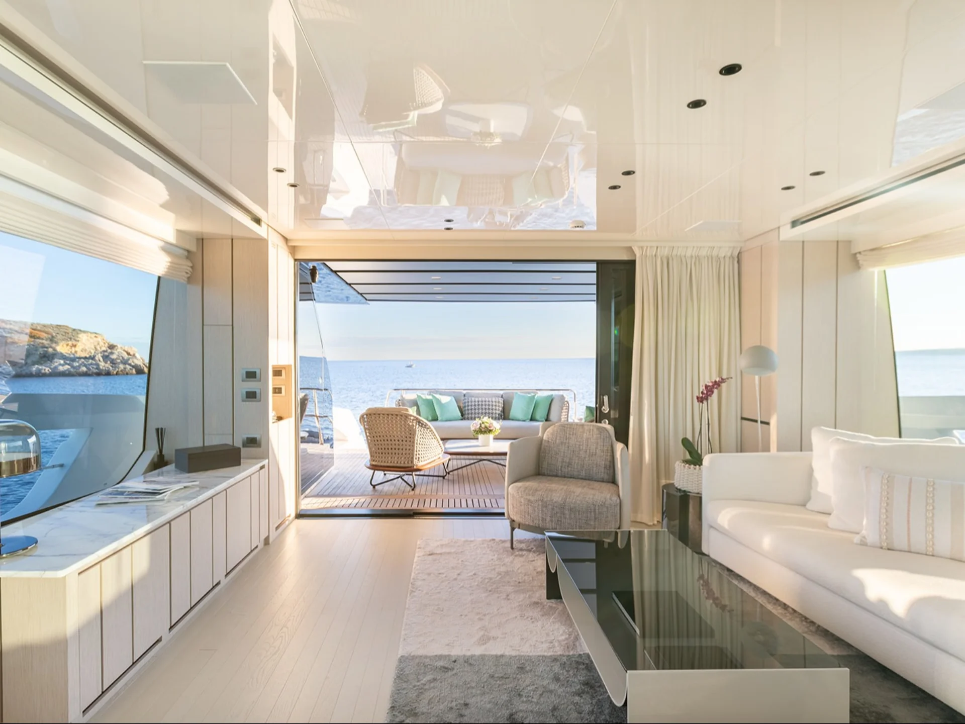 Discover M/Y CLOUD IX, a refined Sanlorenzo SX76 crossover yacht delivered in 2019, offering a modern and stylish way to explore the Mediterranean. Built by the renowned Italian shipyard Sanlorenzo, CLOUD IX combines contemporary design with practical performance, creating an elegant and comfortable platform for unforgettable charters. With a dedicated crew of three and meticulous upkeep, she promises a seamless and relaxed experience on board.