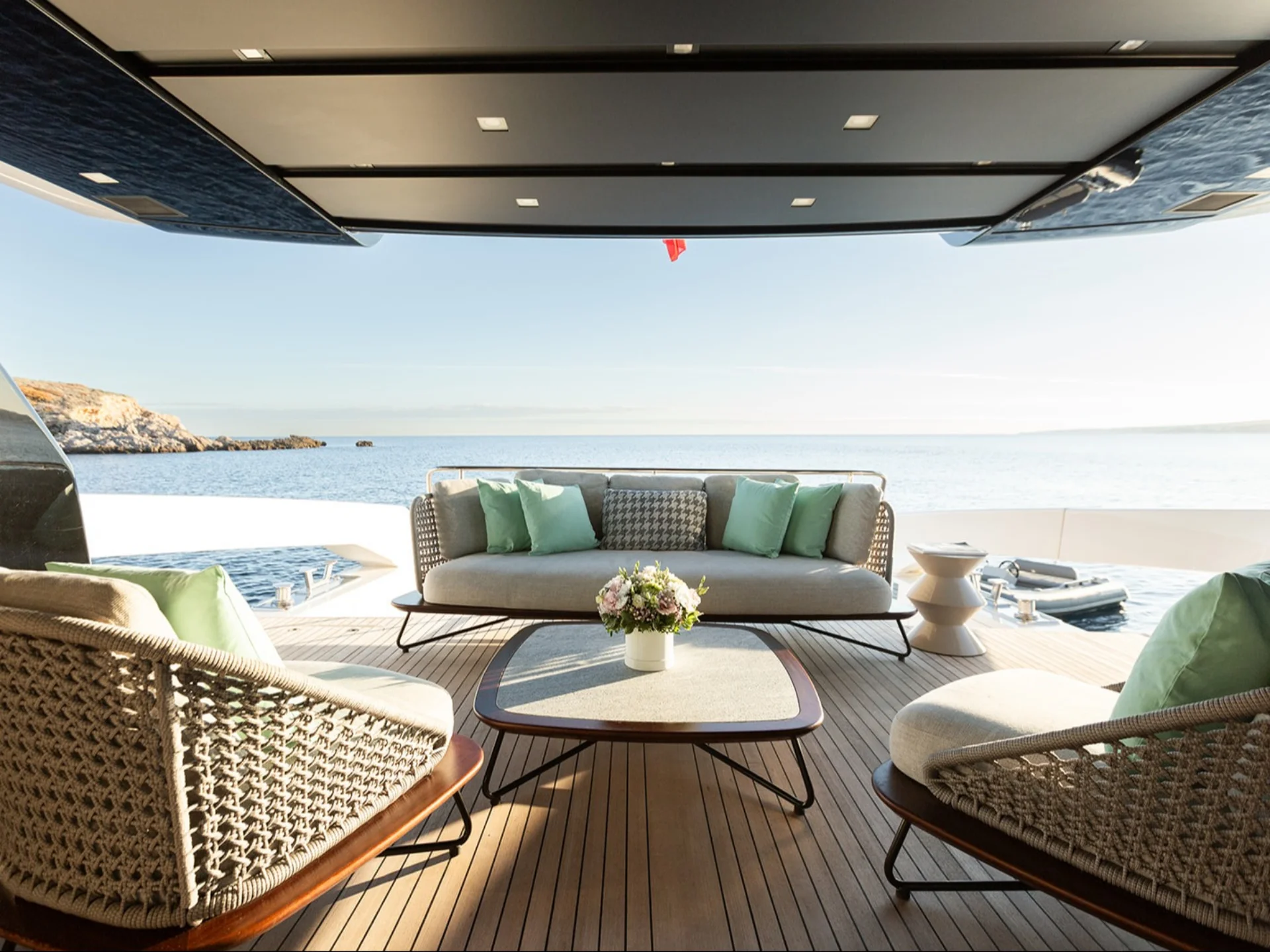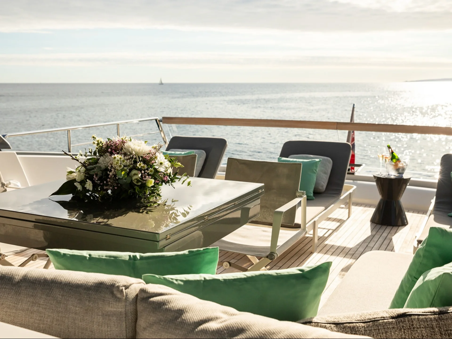 Designed for both relaxation and socialising, CLOUD IX features well-balanced exterior spaces that invite guests to enjoy life outdoors. Generous sunbathing areas and comfortable seating provide the perfect setting for cruising along the coastline or anchoring in secluded bays. Her flybridge-style layout and spacious outdoor lounge areas make her ideal for daytime cruising, coastal exploration, and laid-back afternoons at anchor.