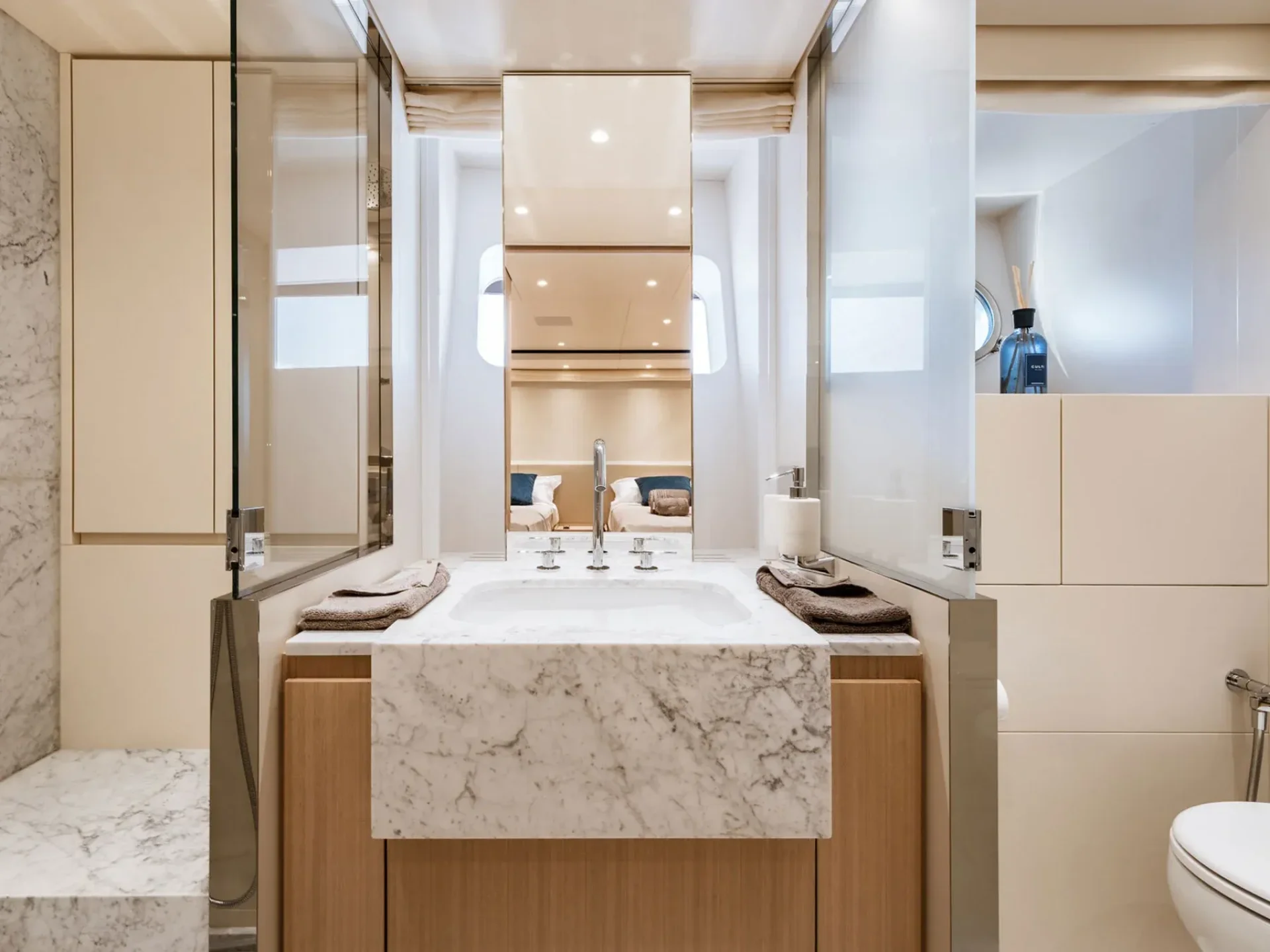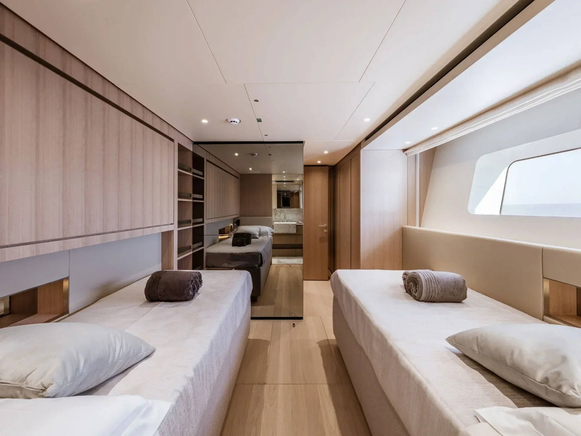 - 2 × Twin Cabin with convertible beds, Pullman berth, and en-suite bathroom