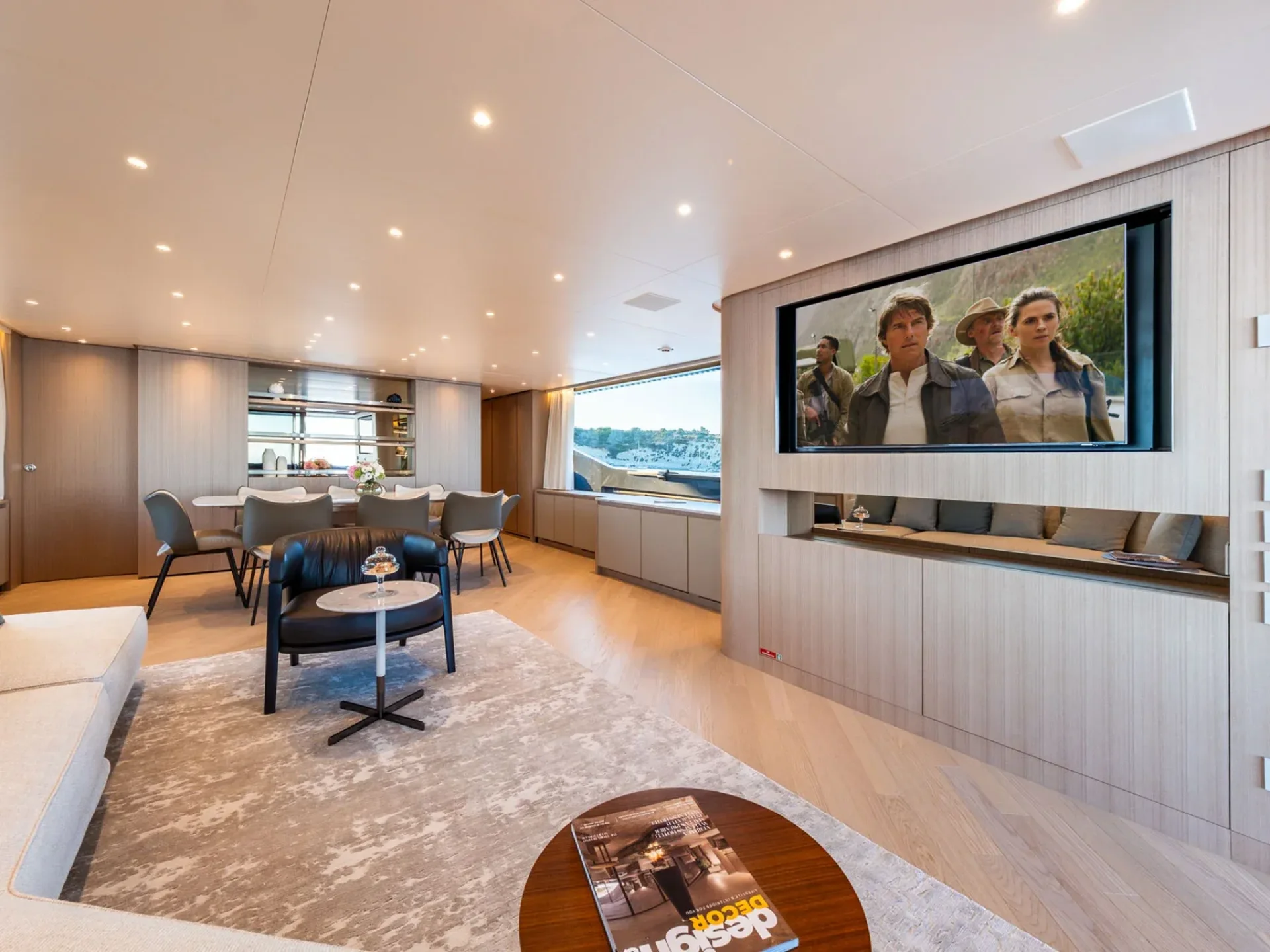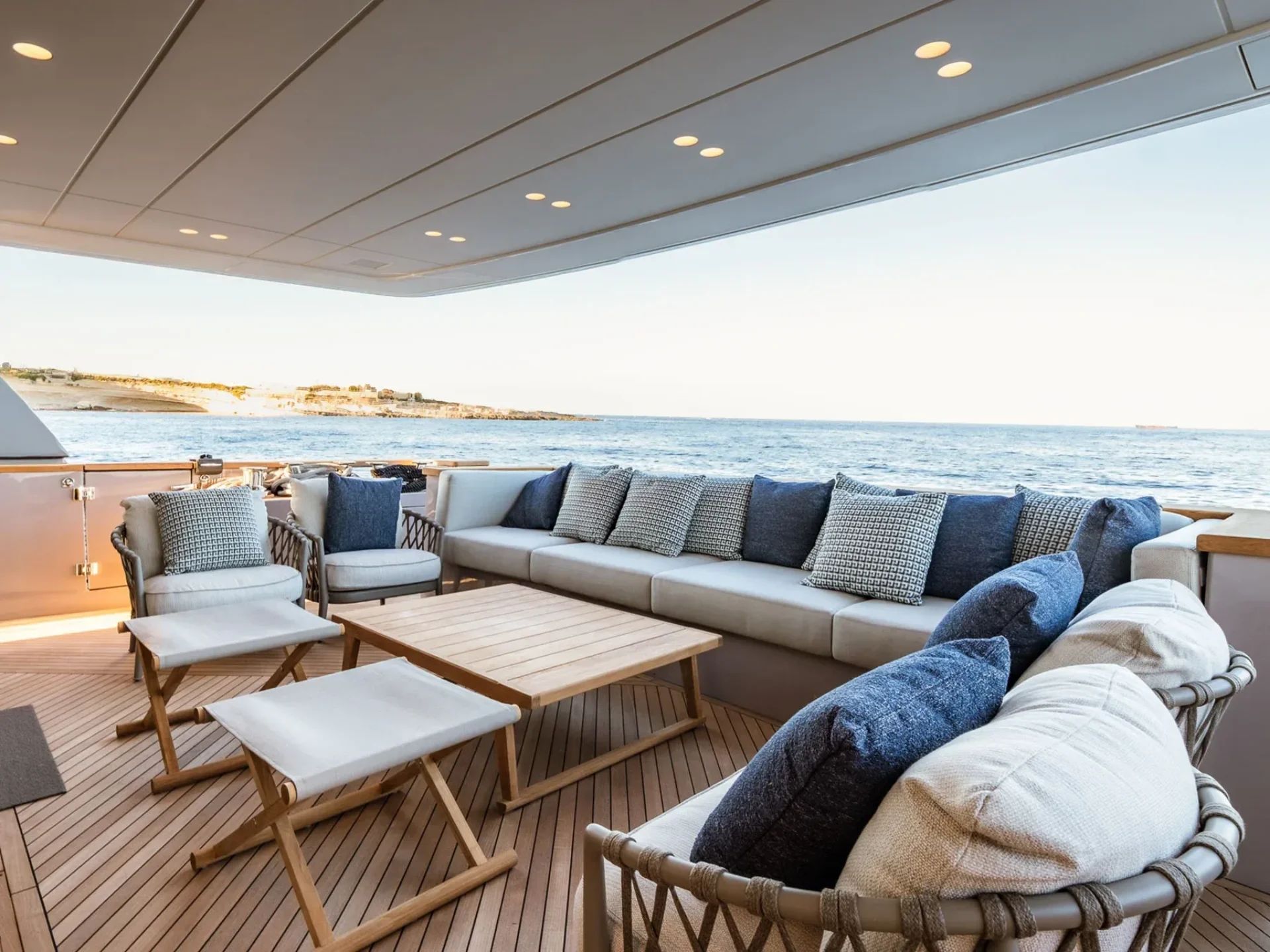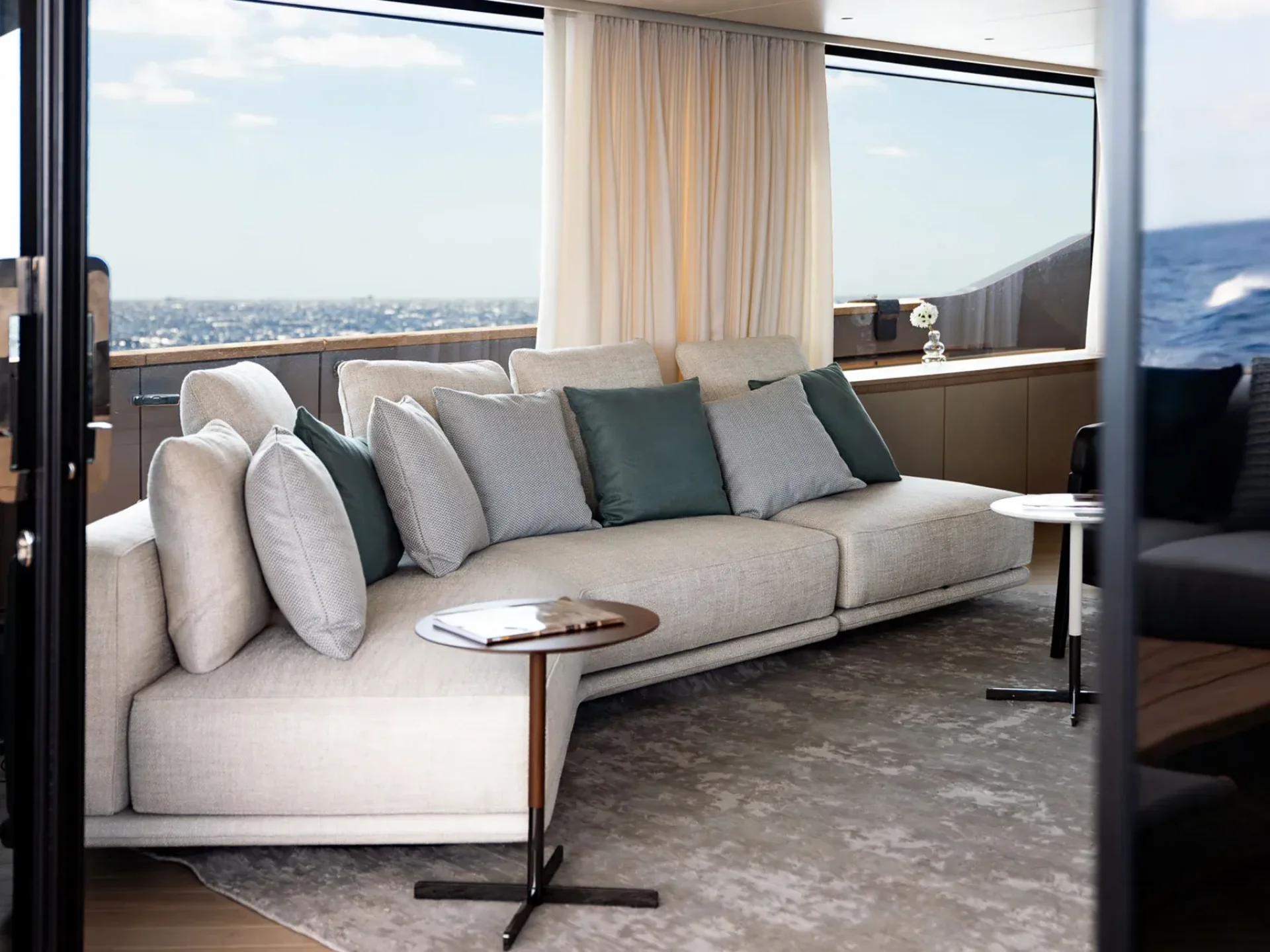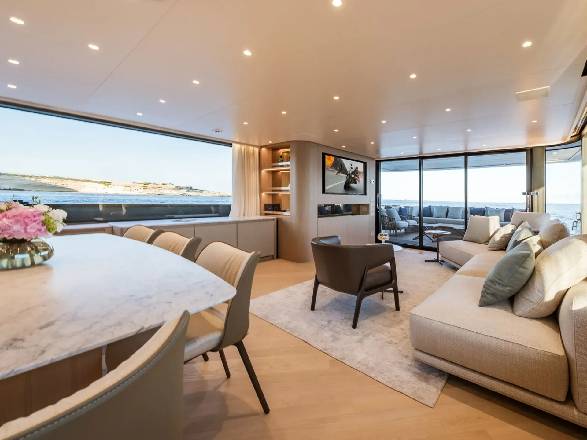 - Light-filled main salon with refined finishes and panoramic sea views