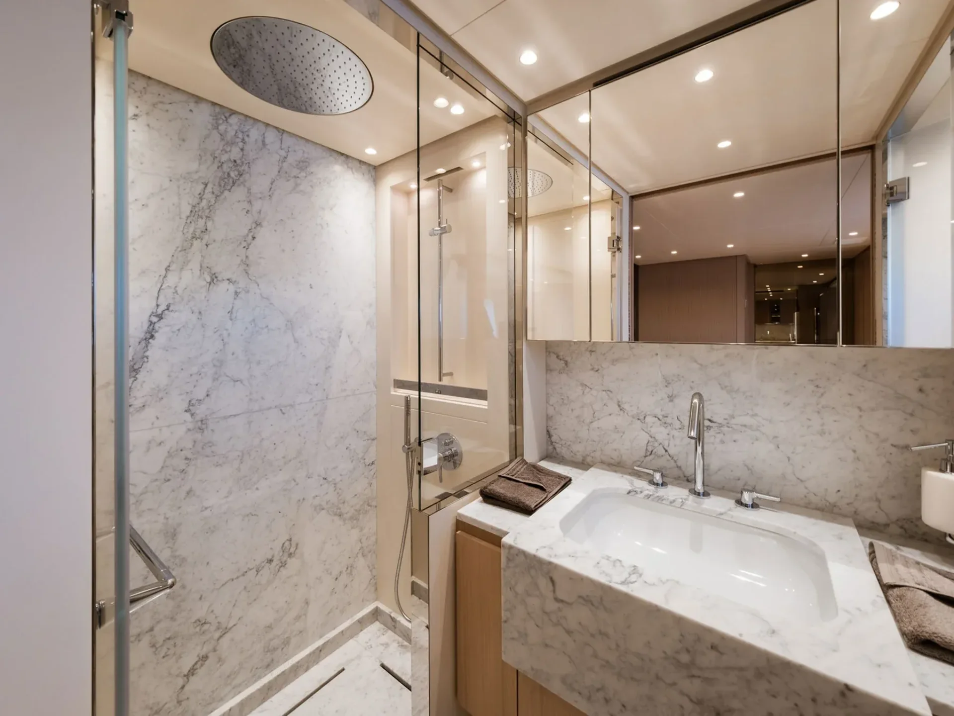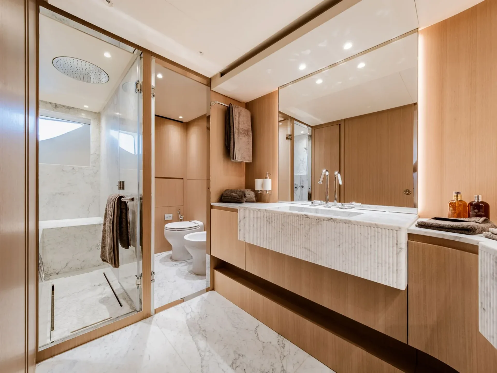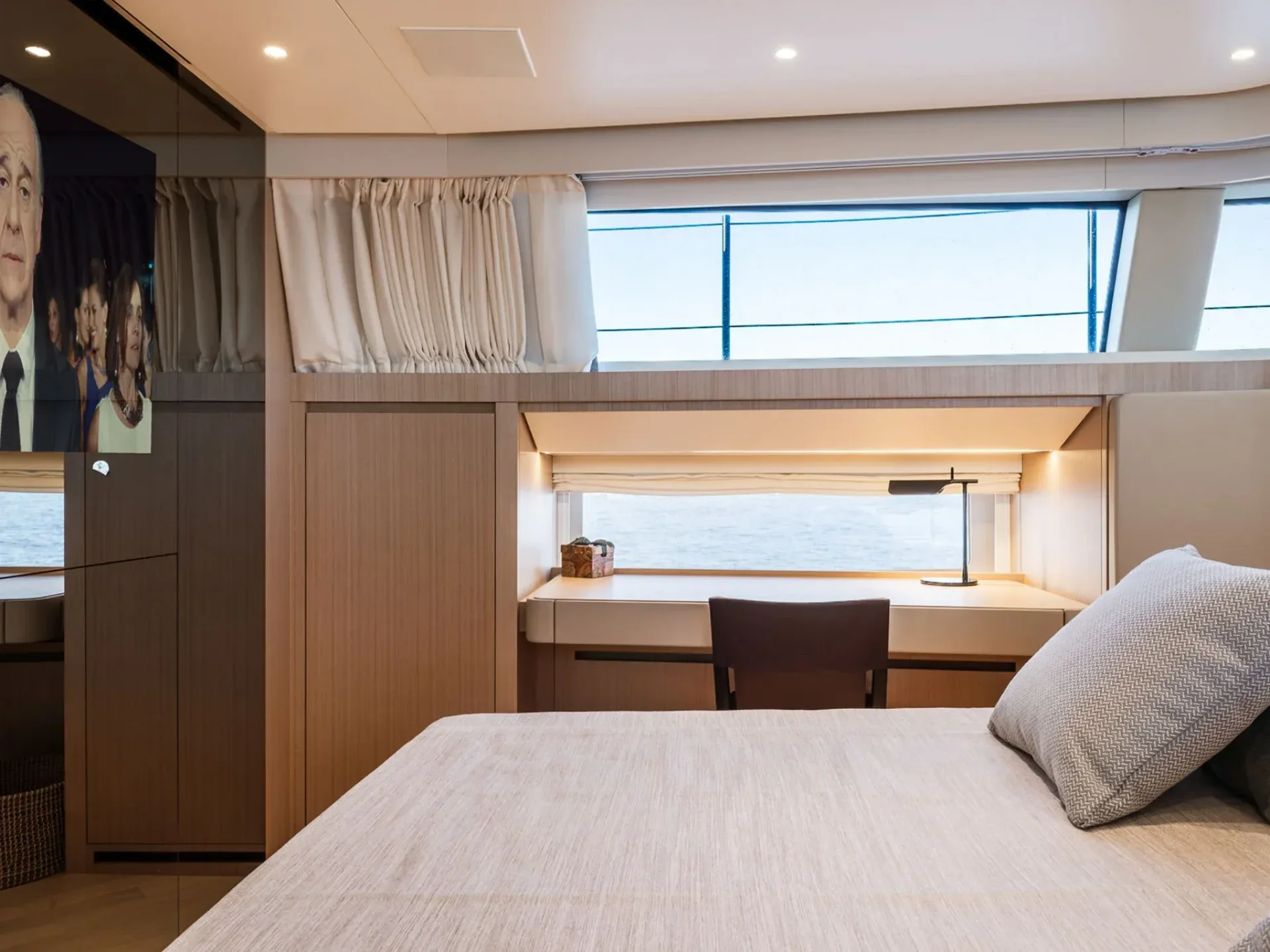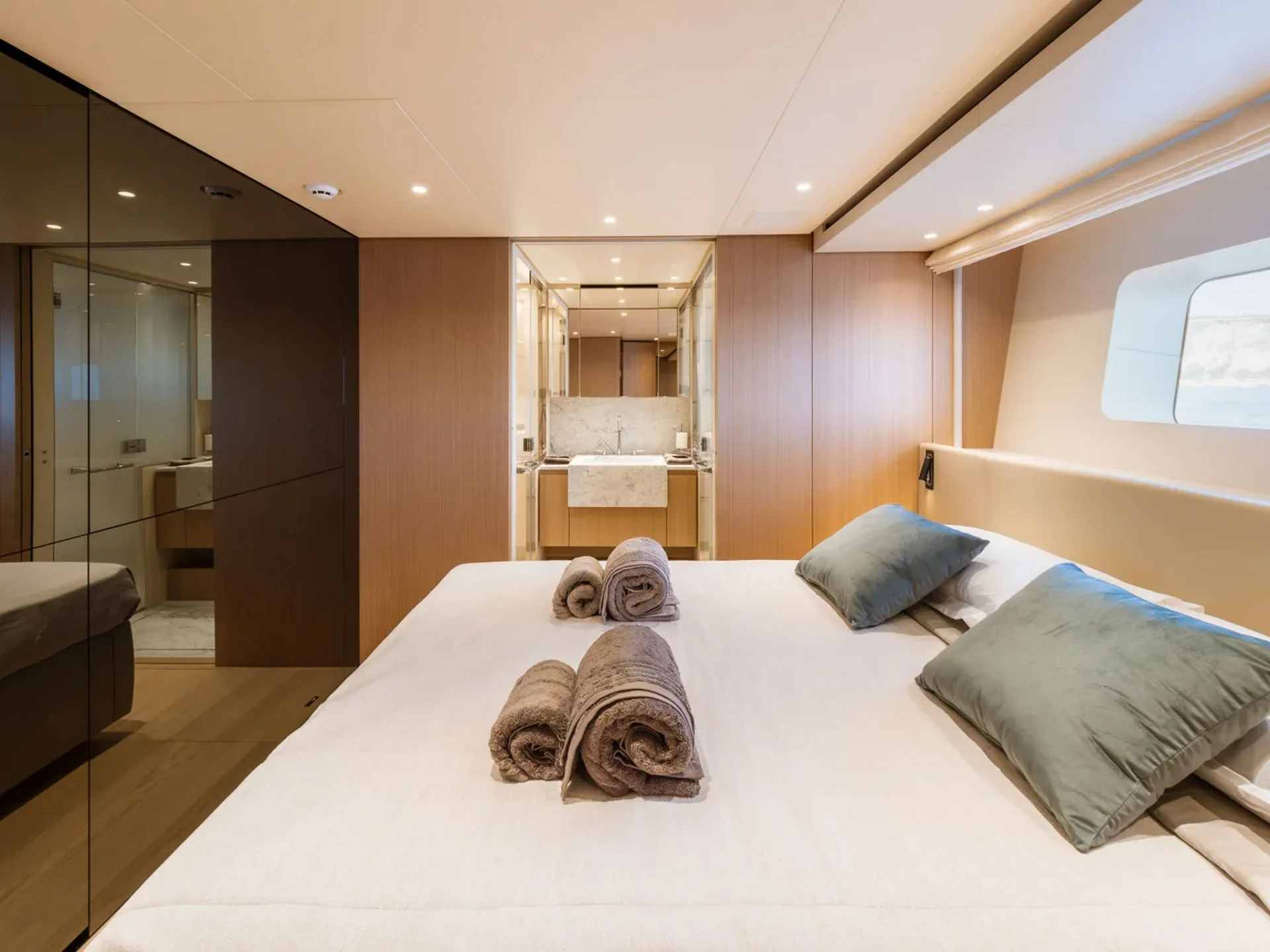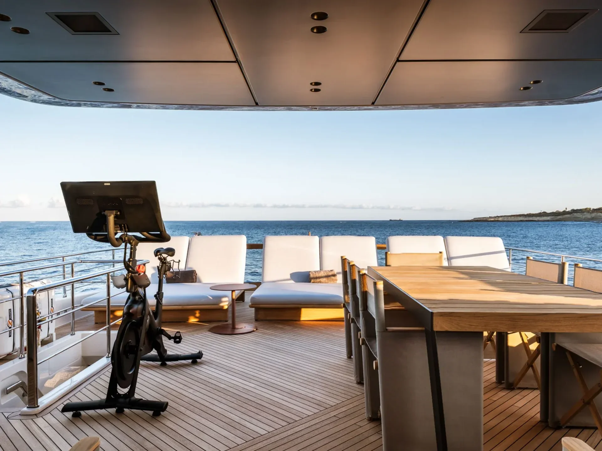 - Light-filled main salon with refined finishes and panoramic sea views