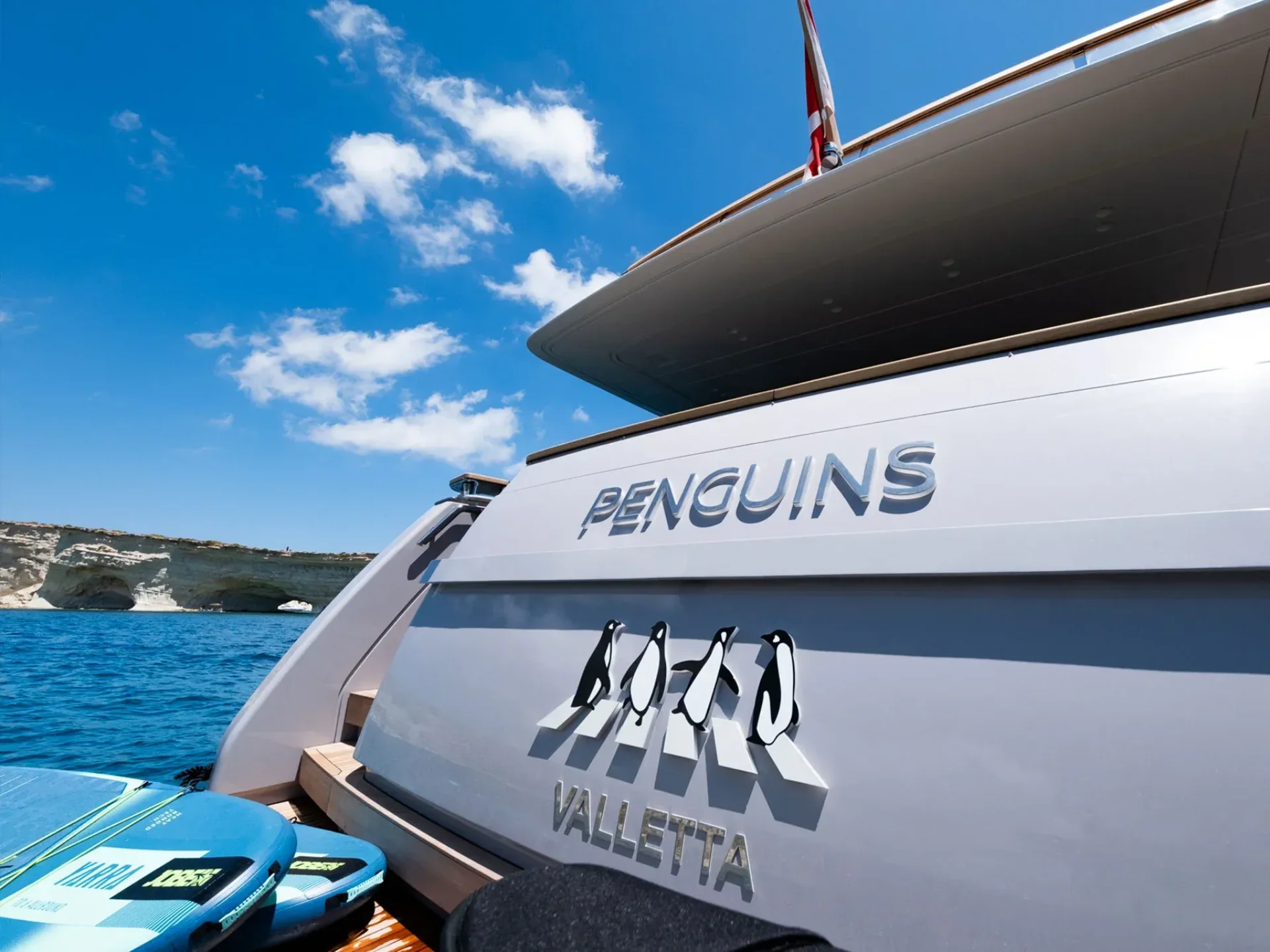 For those seeking a more dynamic experience, Sanlorenzo SD90 Penguins is equipped with a selection of water toys and leisure equipment, complemented by a powerful chase tender, making each day at sea both engaging and memorable.