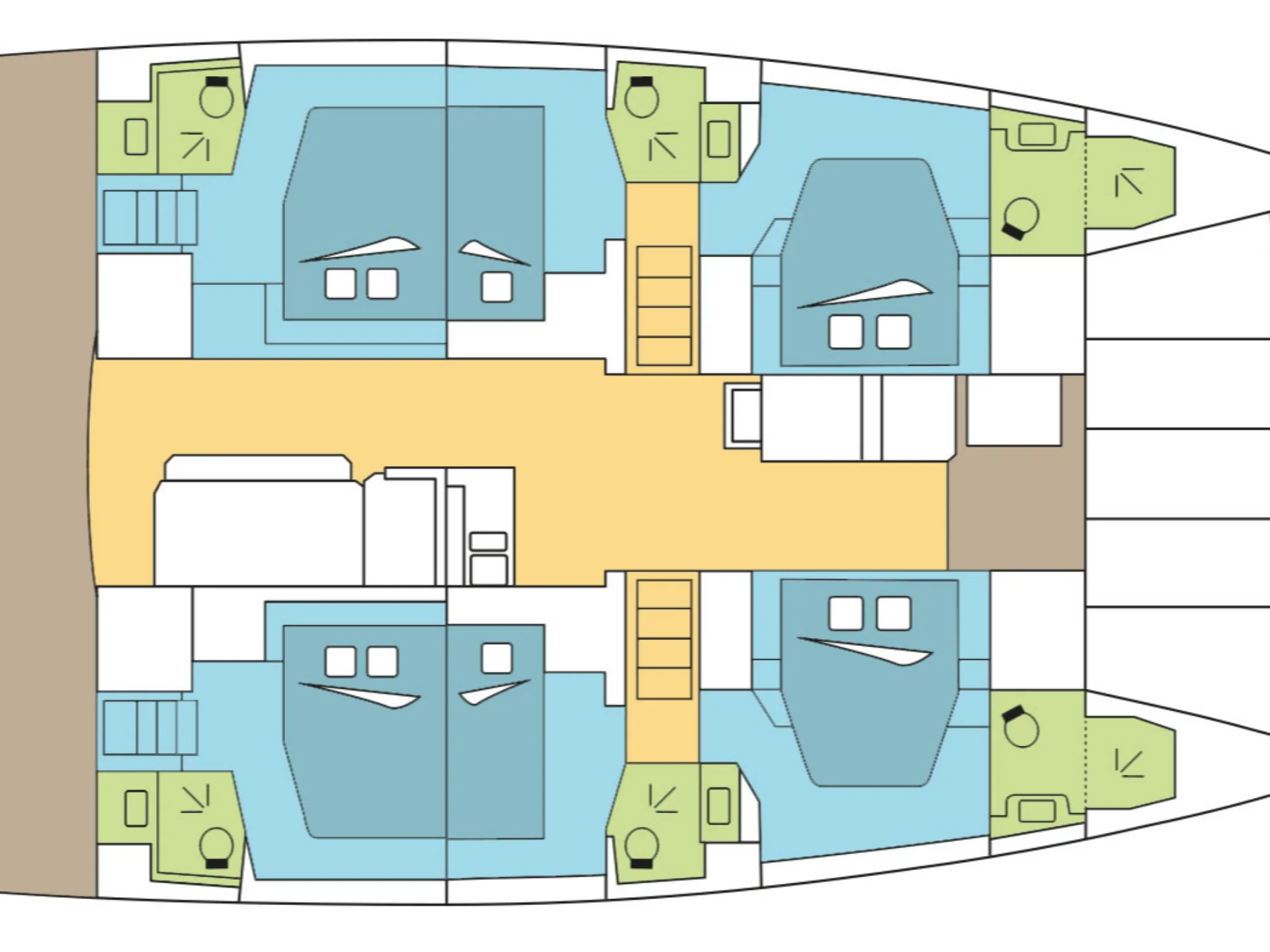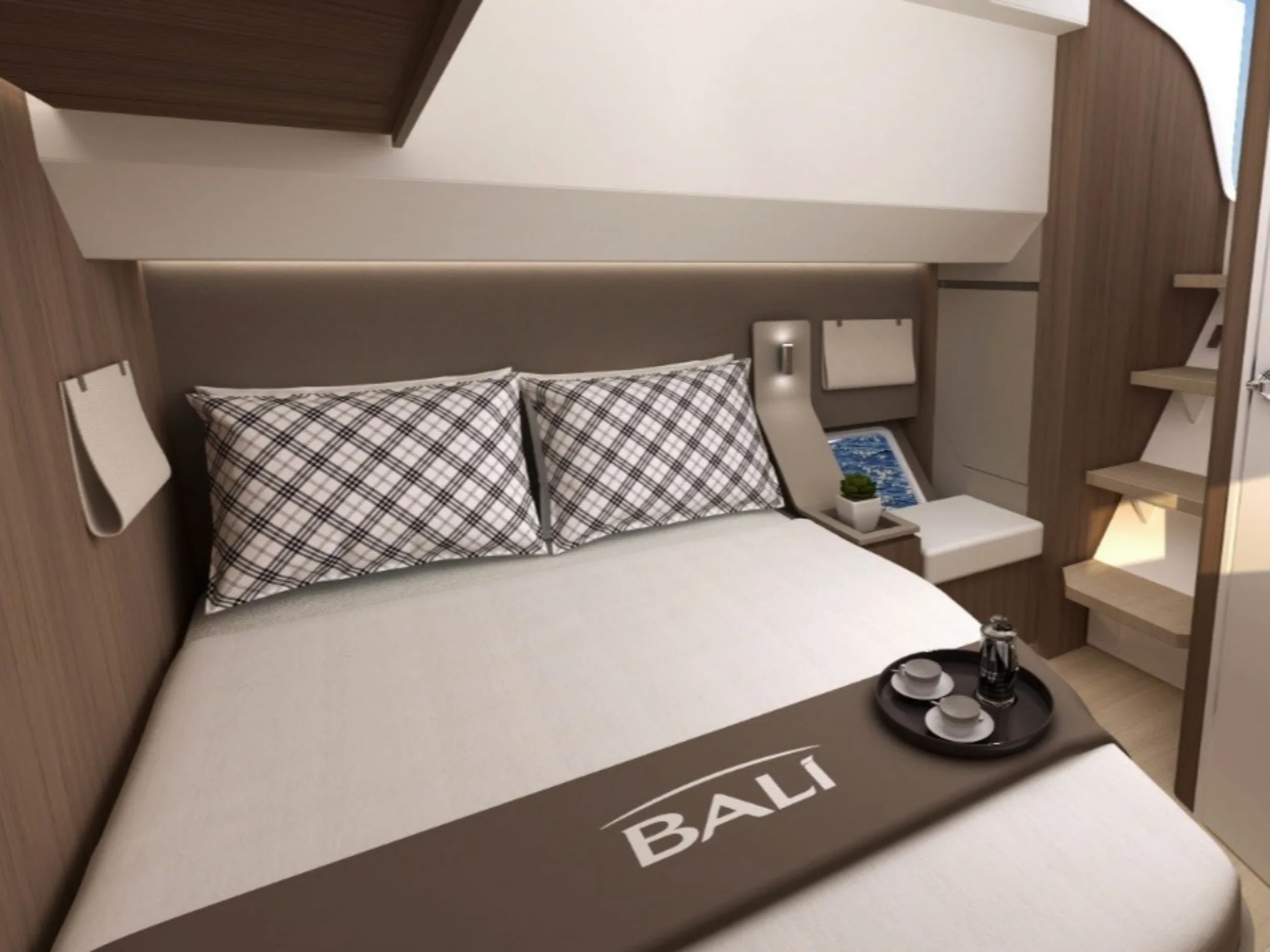 Charter catamaran Bali 4.8 is the only catamaran of its size to offer 6 cabins to accommodate up to 12 guests in comfort and style. Want the one-level design moving to the forward deck saloon without using the side decks? Sure, the new forward door grants access to spacious bow offering a large sunbathing area, seating and table. The flybridge invites to enjoy the navigation from the upper deck and scores with an additional sunbathing area and beautiful sea vistas. The decision where to spend the time outside in the sun is not easy.
