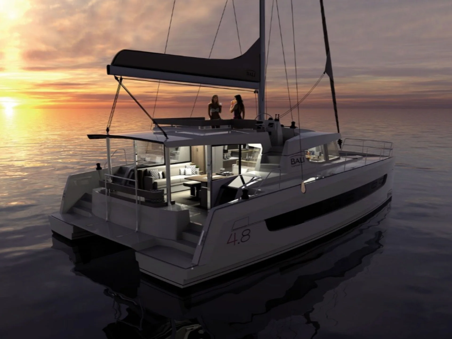 This Brand new catamaran Bali 4.8 is available for week charters in Mallorca, available as a bareboat or with captain.
