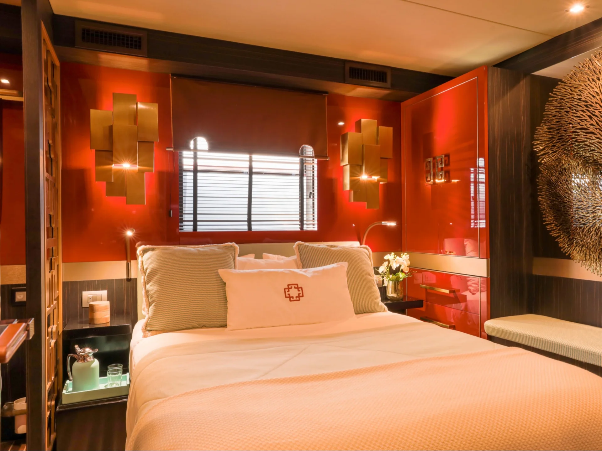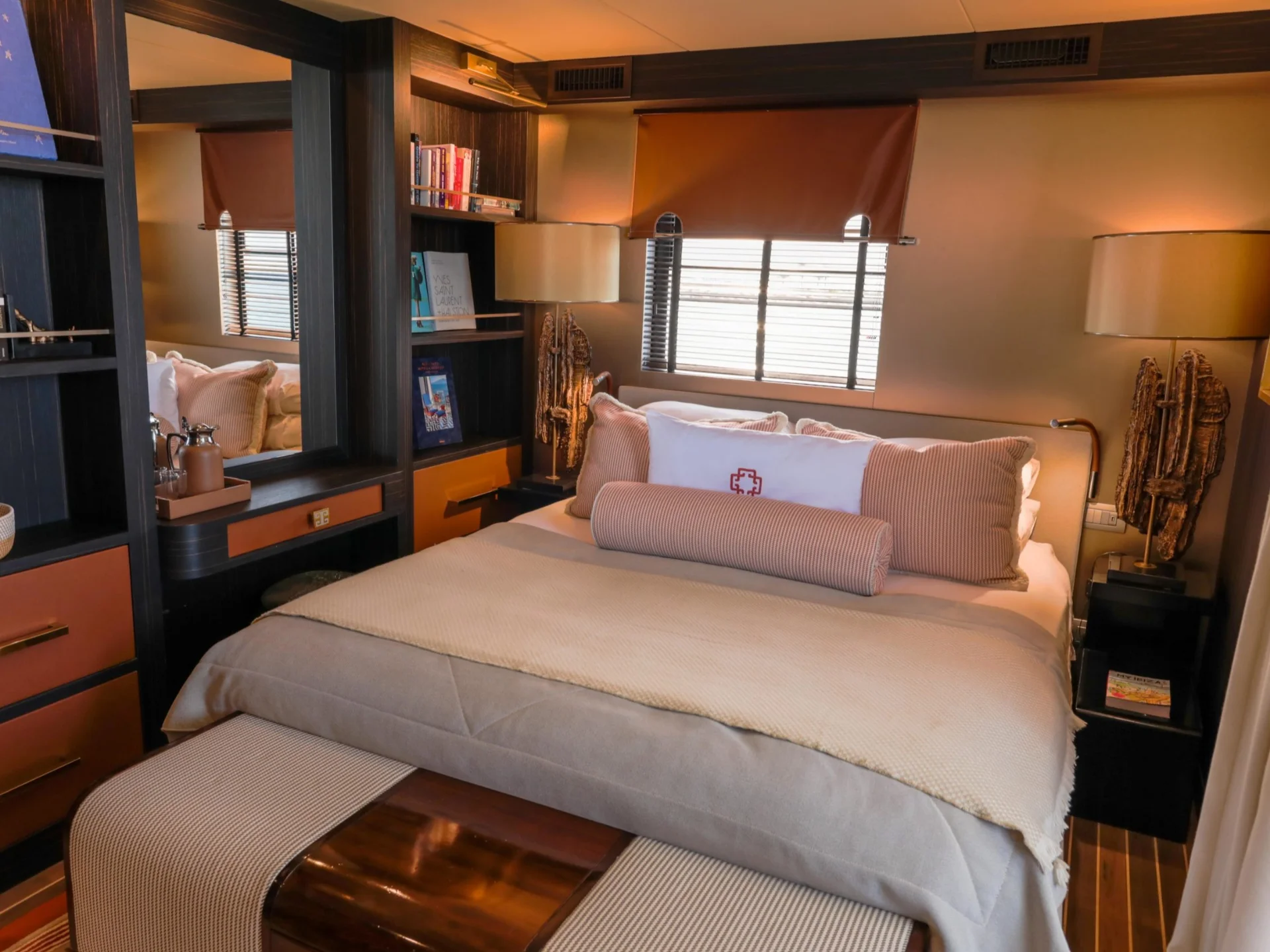 Below deck, GOLDFINGER accommodates up to 6 overnight guests in beautifully designed cabins, including a standout master suite with private terrace and outdoor shower — a rare feature that elevates the experience to true floating-home luxury.