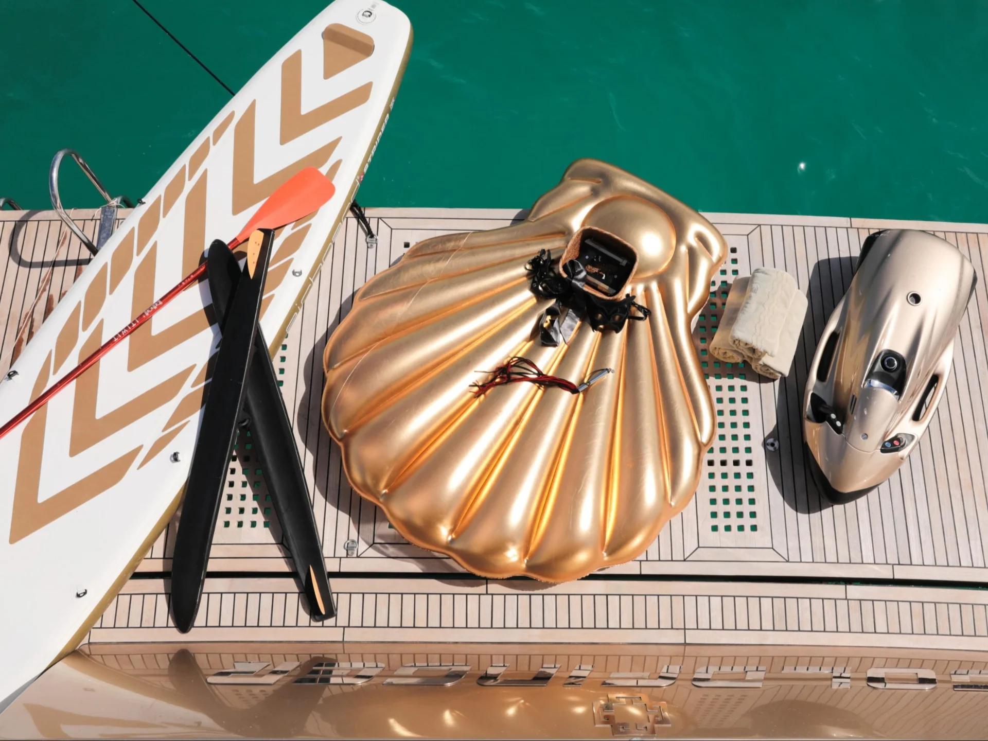 With over 200 sqm of living space, GOLDFINGER feels exceptionally open and light-filled. Her layout has been carefully designed to create seamless transitions between indoor and outdoor areas, allowing guests to enjoy the sea from every angle while maintaining complete privacy.