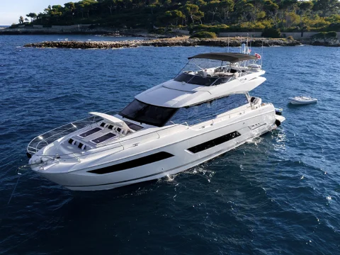 • Expansive flybridge with bar, dining, and panoramic sea views