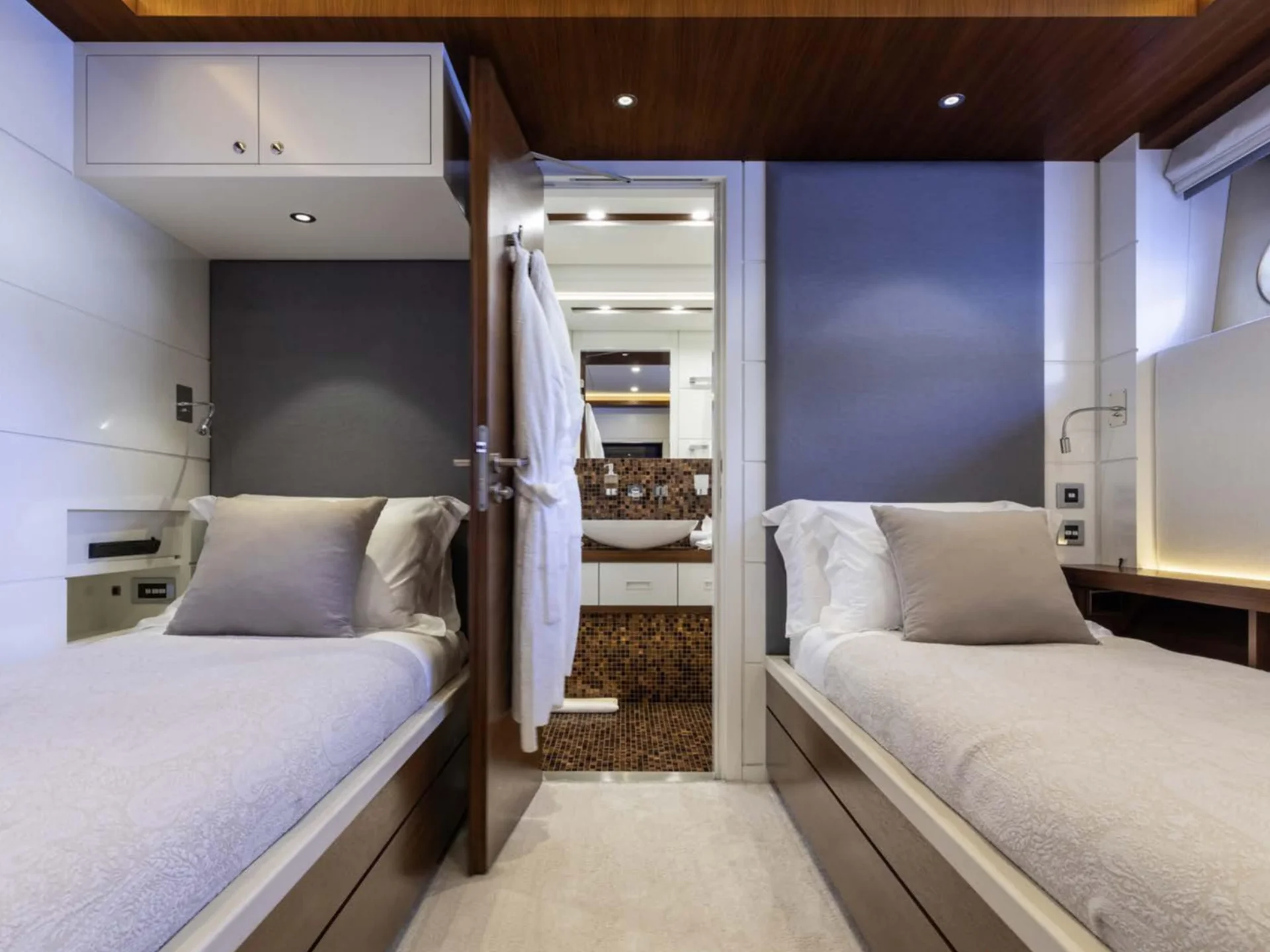 - Zero-speed stabilisers ensure exceptional comfort both underway and at anchor.