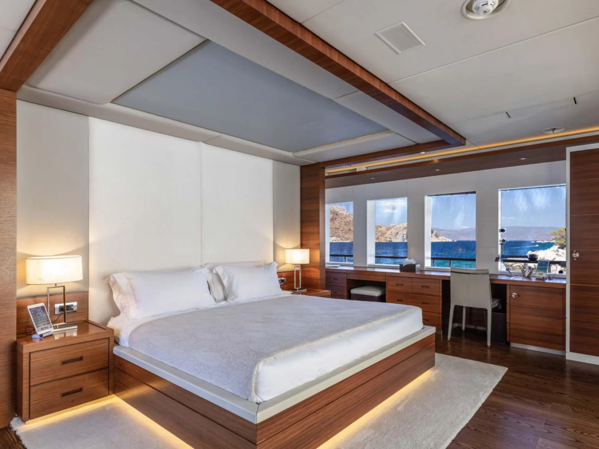 - Six luxurious staterooms including a full-beam master suite with private lounge and ensuite bath.