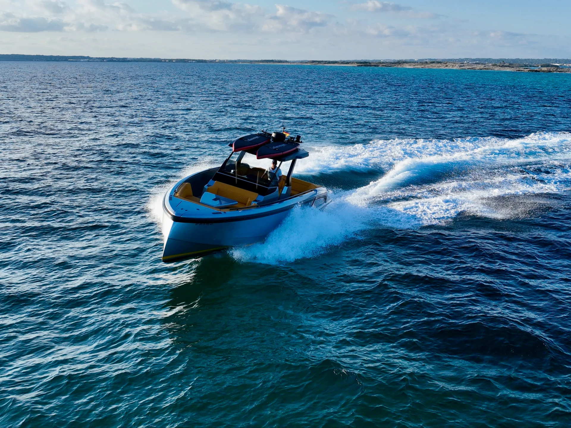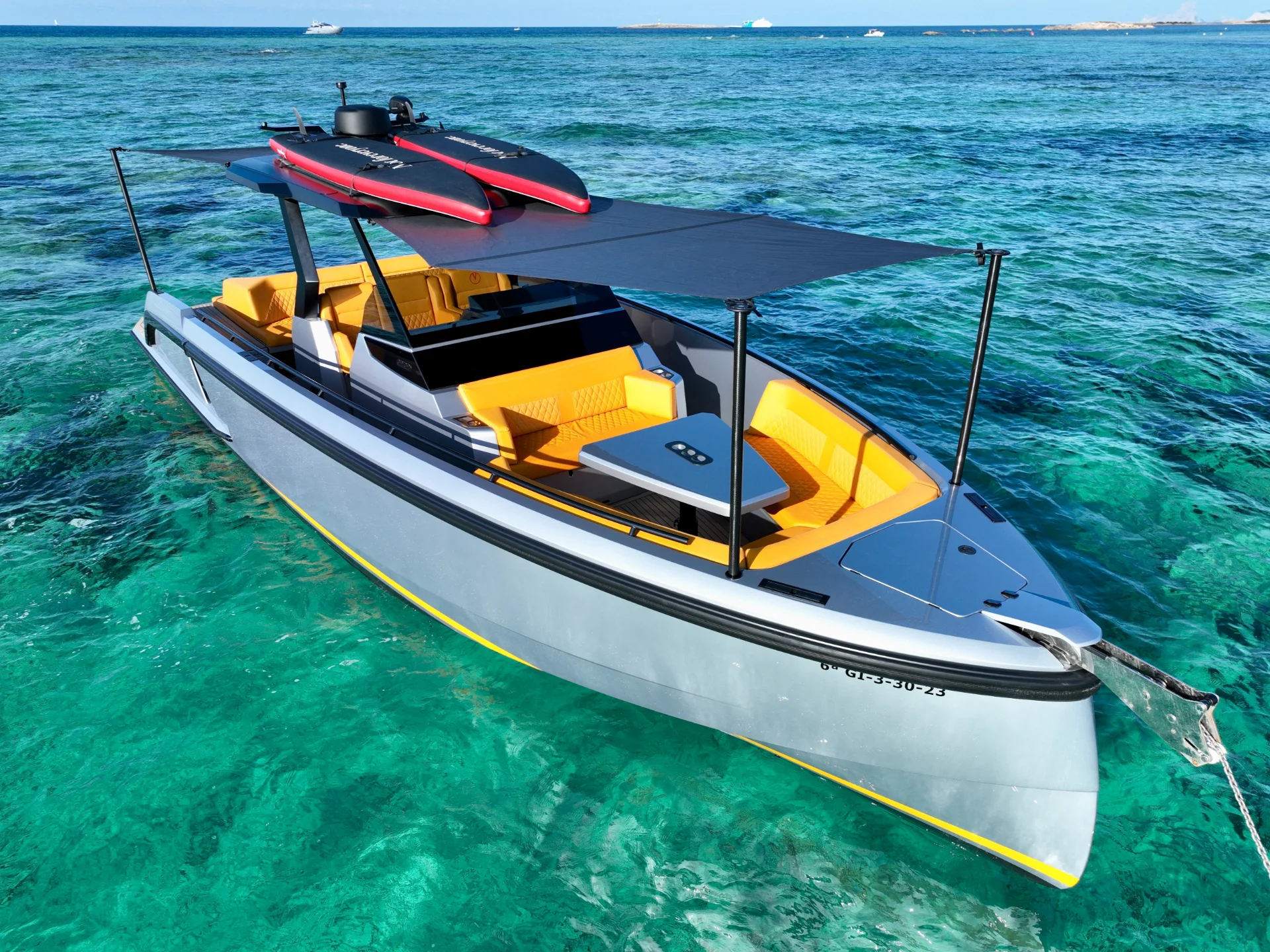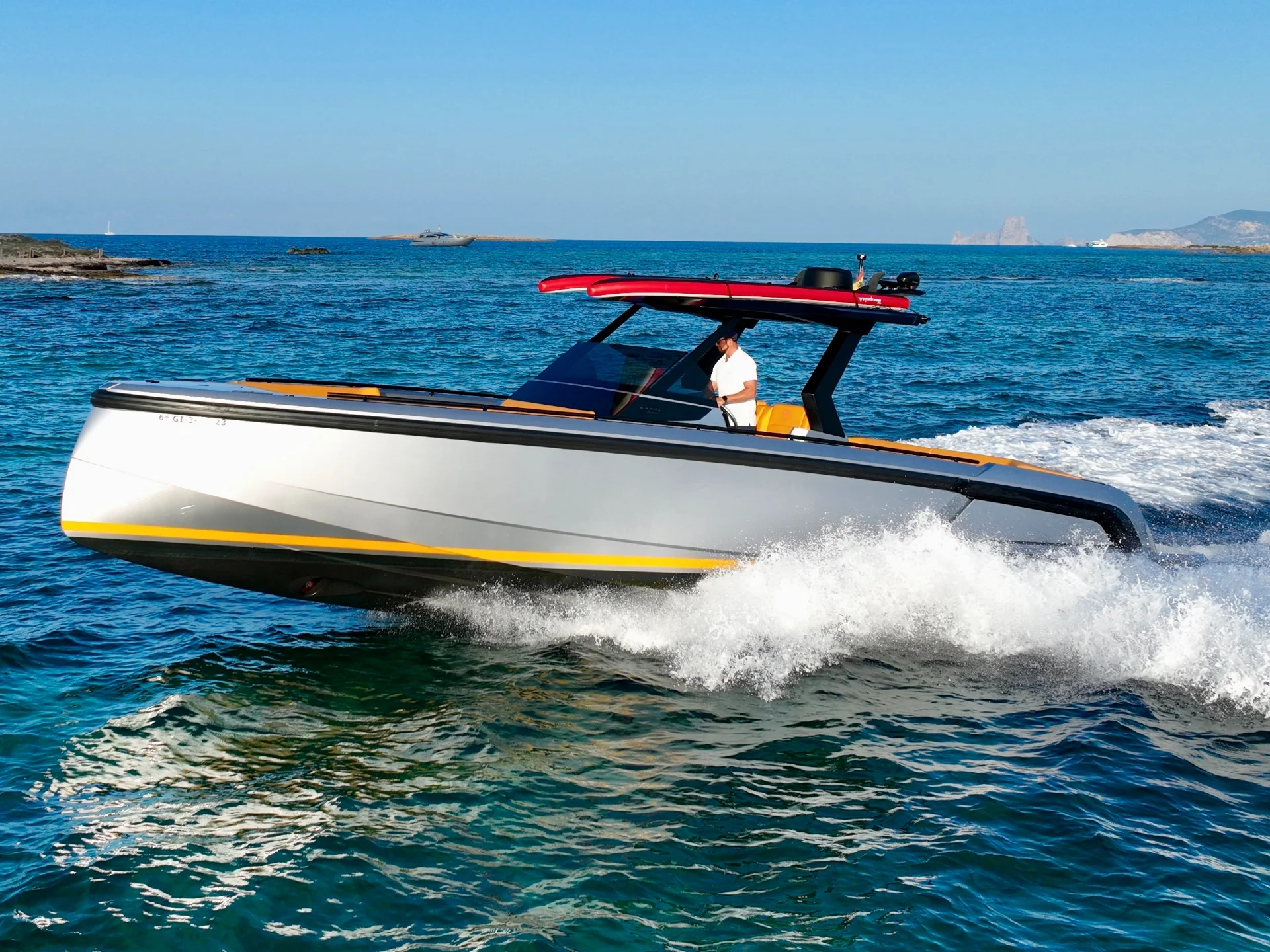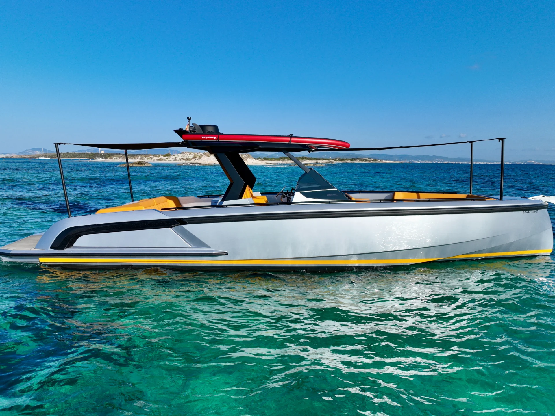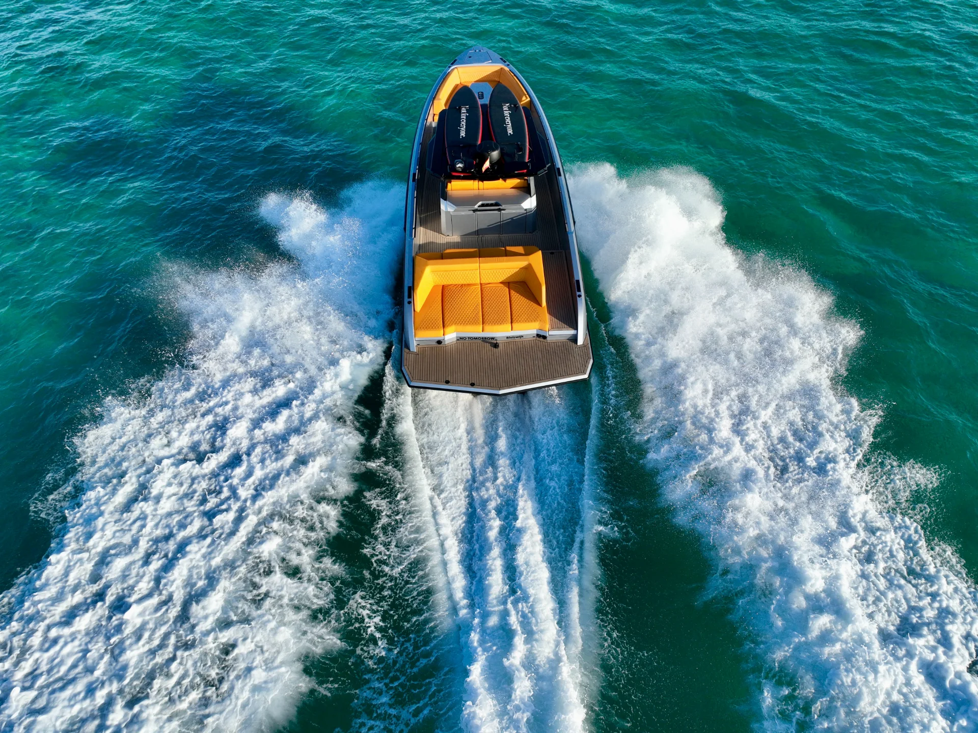 NO TOMORROW is a 40-foot (12.15m) Vanquish VQ40 built in 2023, based in Marina Santa Eulalia, Ibiza. She is the newest model from Vanquish, offering a mix of modern style and comfort that is hard to find in other yachts of this size.
