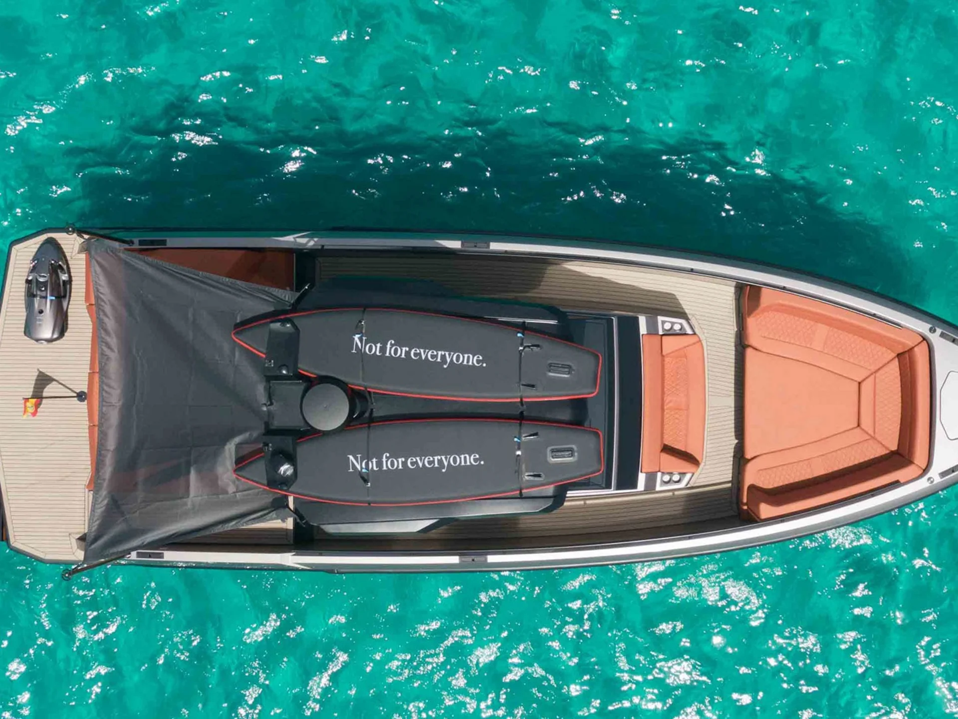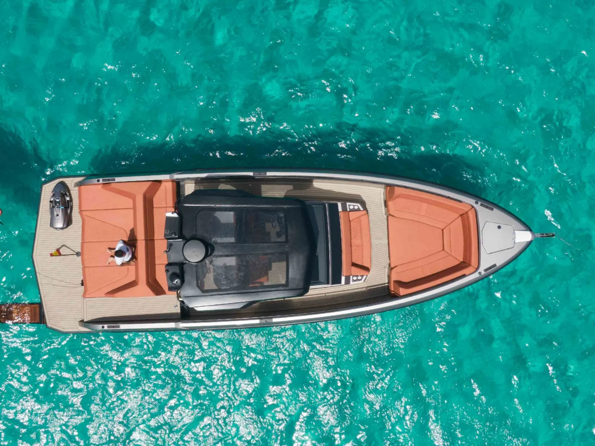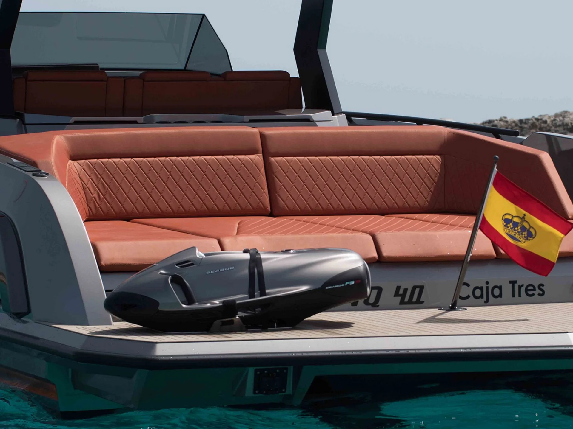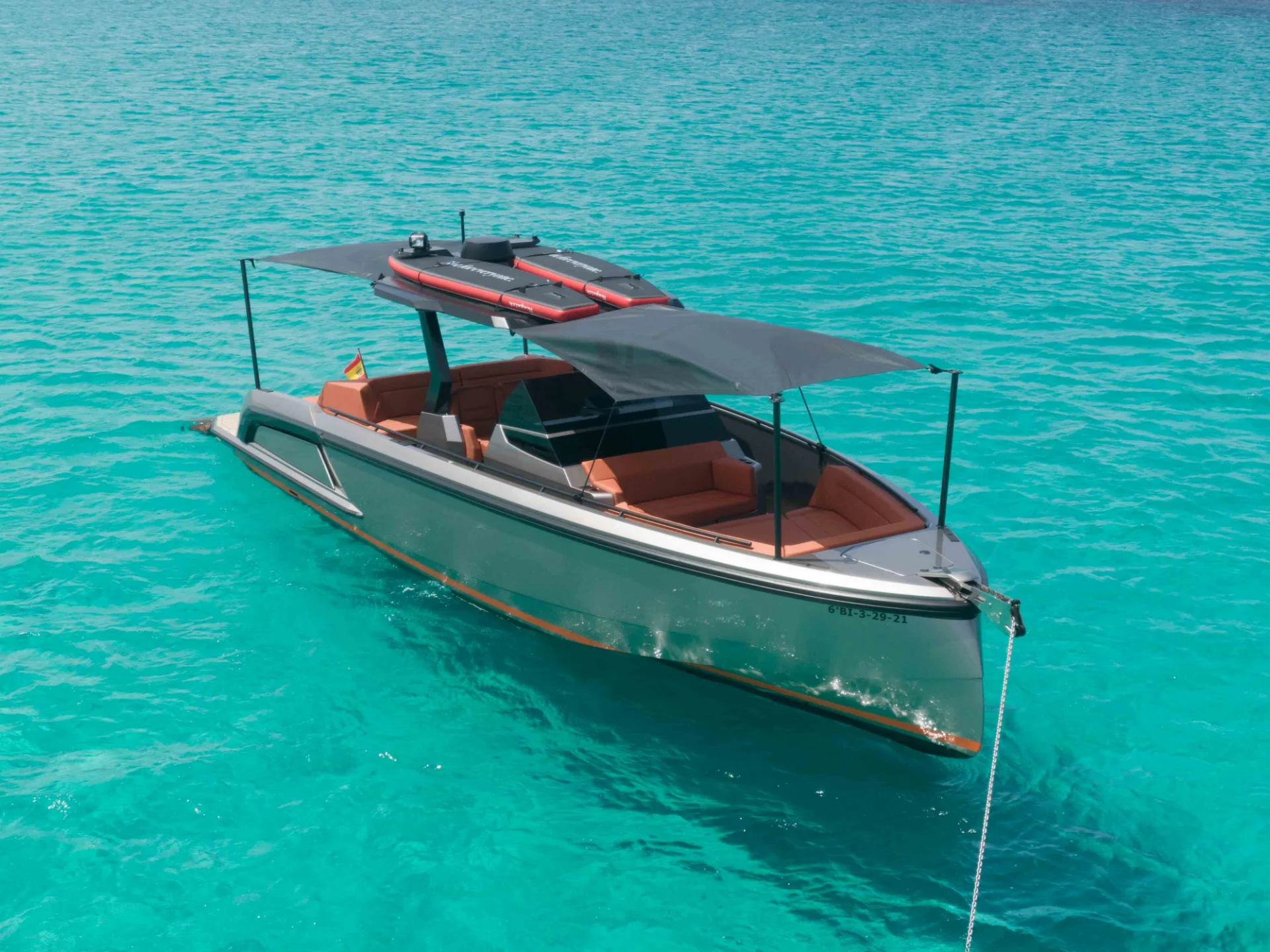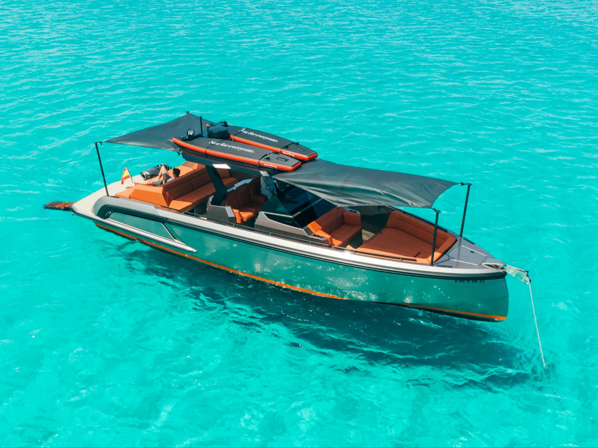 There is no yacht as eye-catching as the VQ40 in the smaller yacht market. This yacht's sleek design and high performance will impress its guests and provide an amazing opportunity to enjoy the crystal clear waters of Ibiza and Formentera like never before. She has a large swimming platform and plenty of sunbed space to soak in the sun.