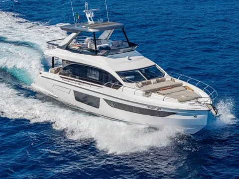 - Expansive flybridge with sun pads and bar