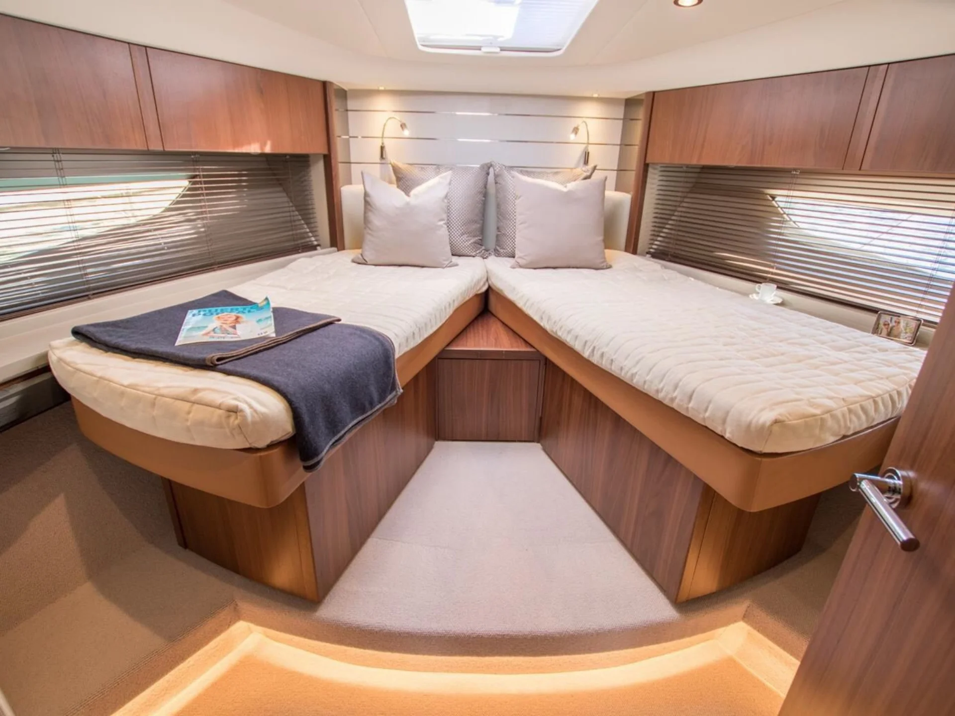 - Twin Volvo engines deliver smooth cruising and strong performance.