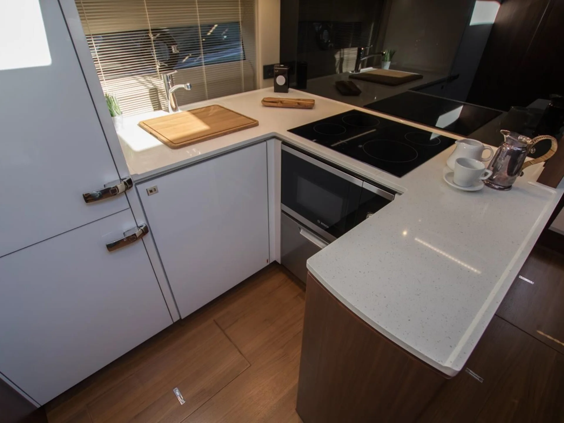 - Generous bow sun pads provide the perfect space for sunbathing and enjoying sea views.