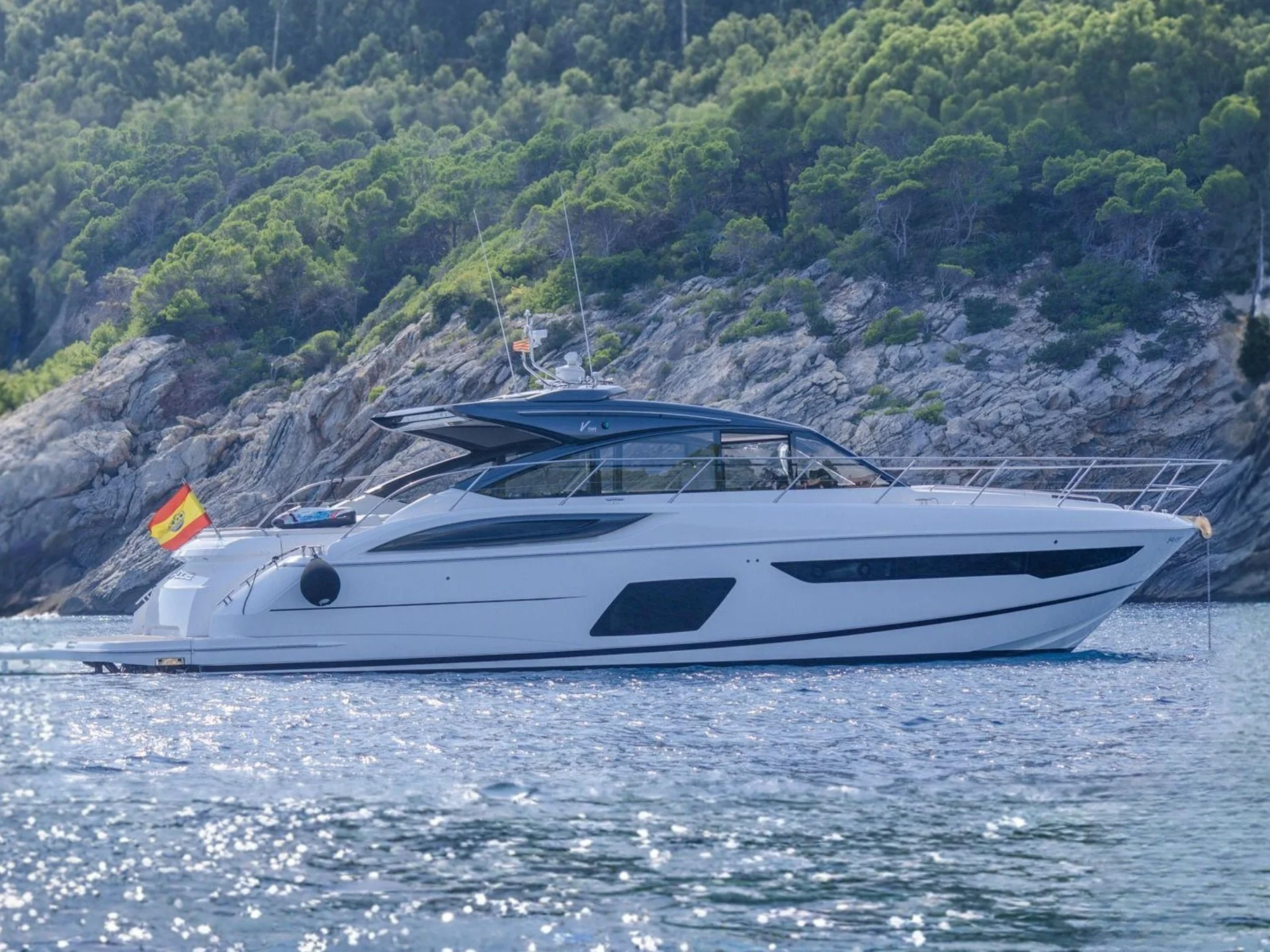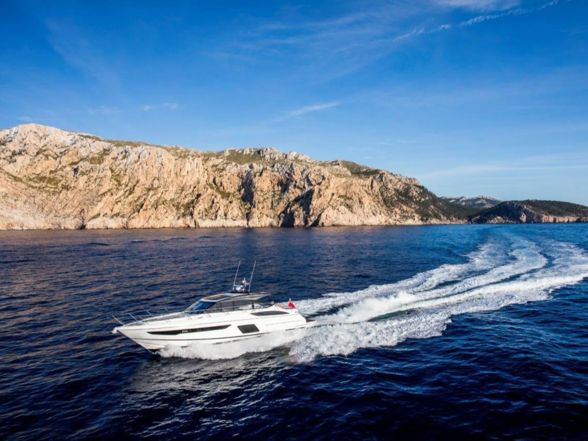 CHLOE is an 18m Princess V58 that combines sporty performance with refined comfort, making her ideal for luxury yacht charters in Ibiza. Built in 2018, this sleek motor yacht showcases Princess’s elegant design and powerful engineering, offering smooth cruising and a stylish experience on the Balearic waters.