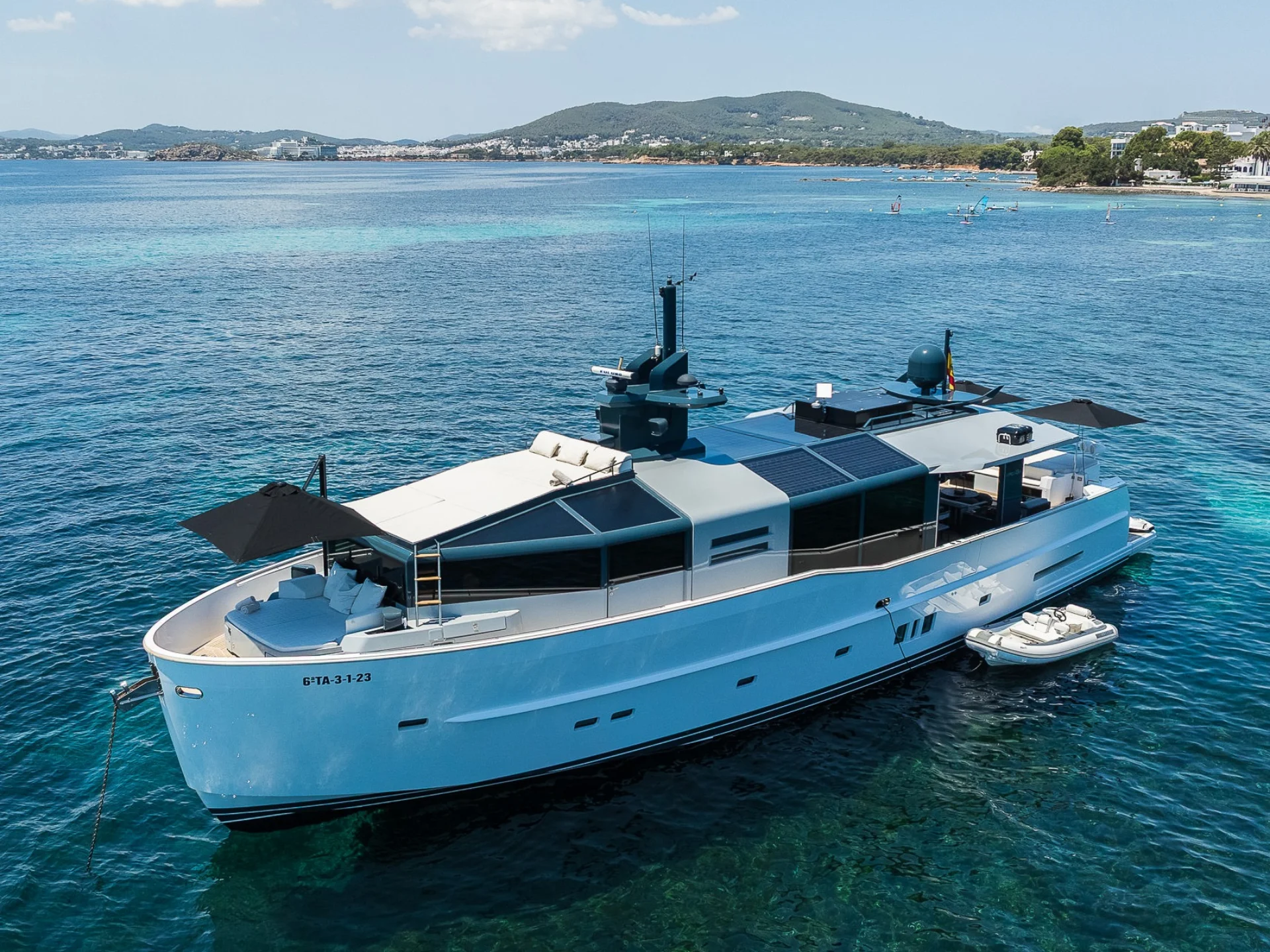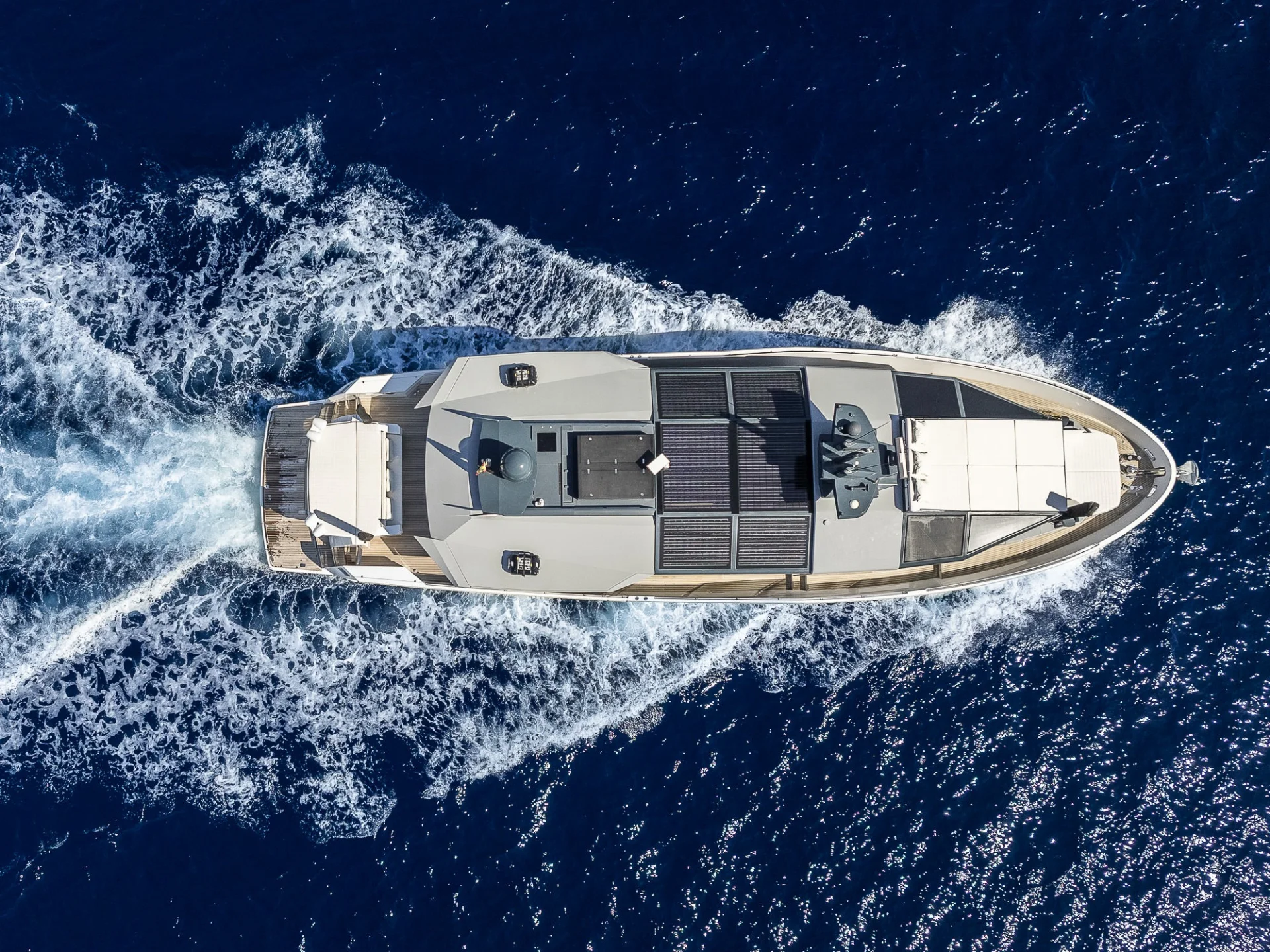 - New generation yacht of fiberglass with solar panels integrated into the superstructure
