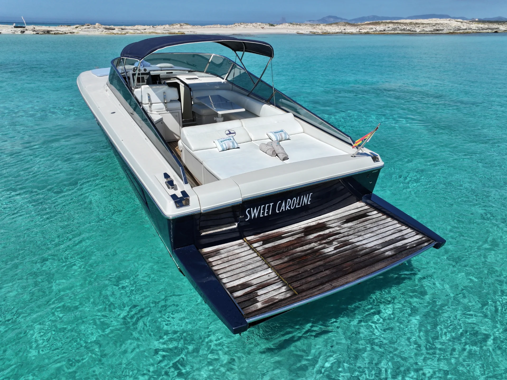 SWEET CAROLINE is a 40-foot (12.25m) Itama 40 built in 2008, based in Marina Santa Eulalia, Ibiza. Embodying the essence of Italian sophistication, the Itama 40 is a masterpiece of design and performance.